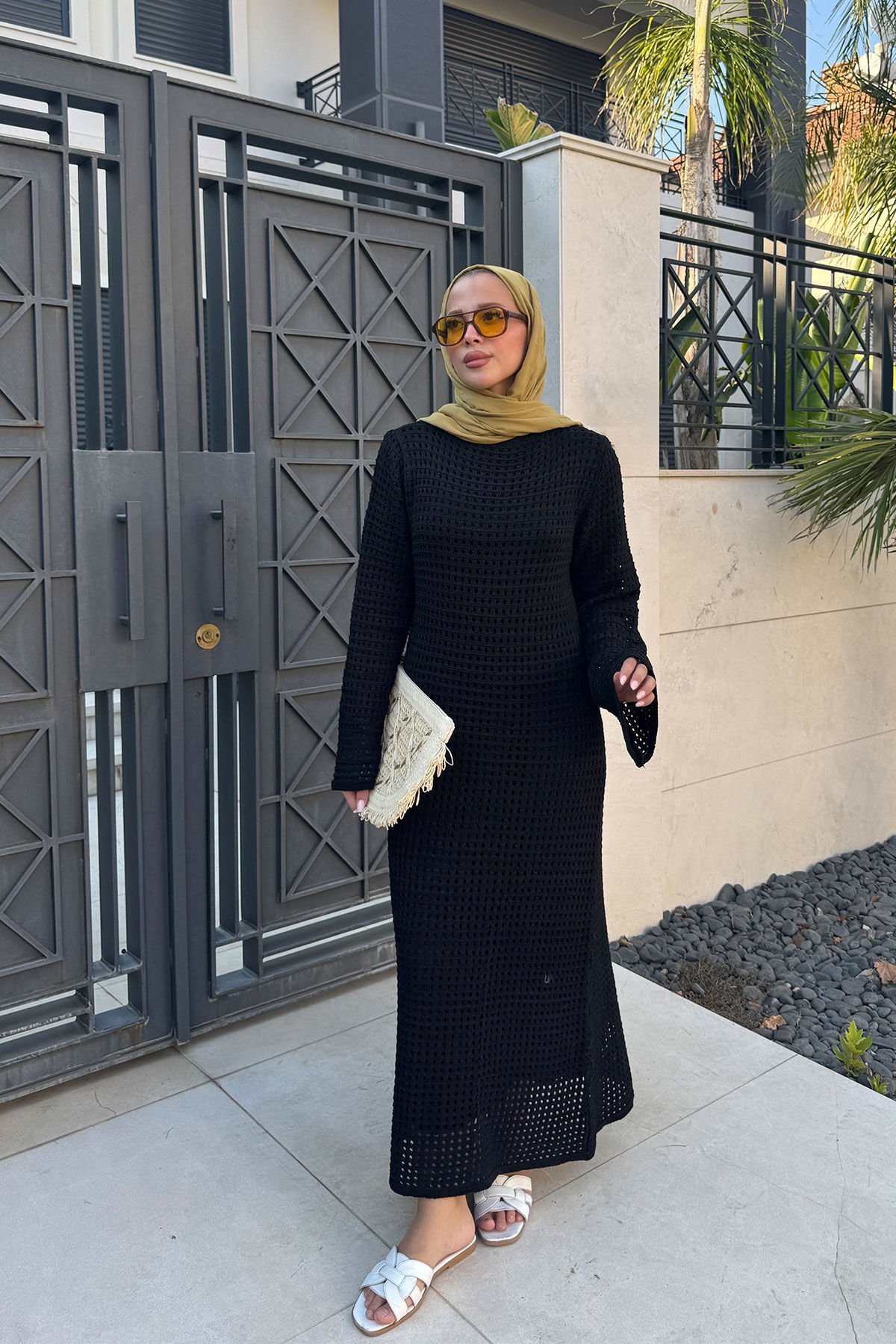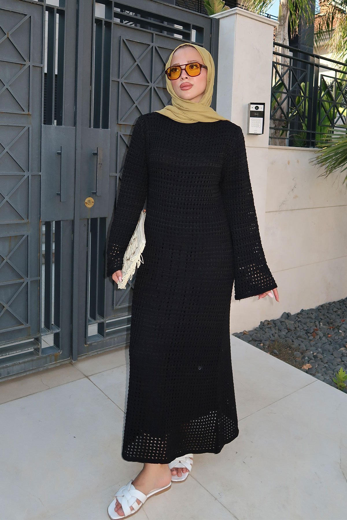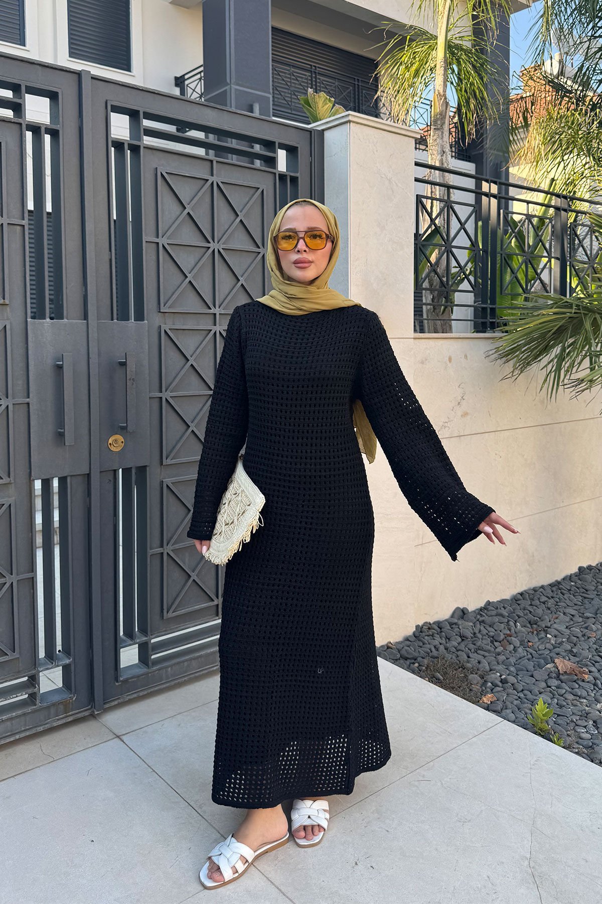 ASTARLI DESENLİ TRIKO ELBİSE 67-2221 - SİYAH