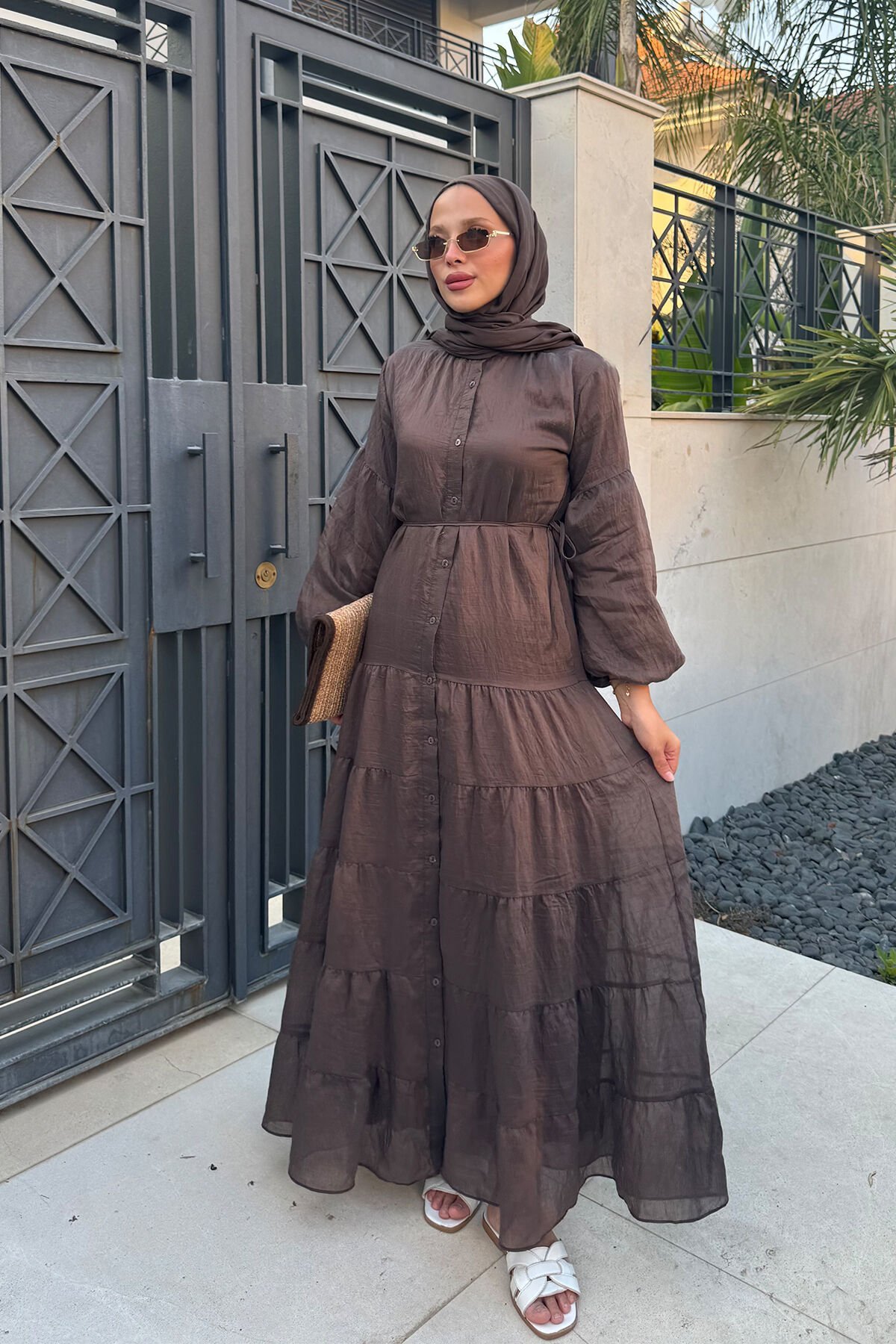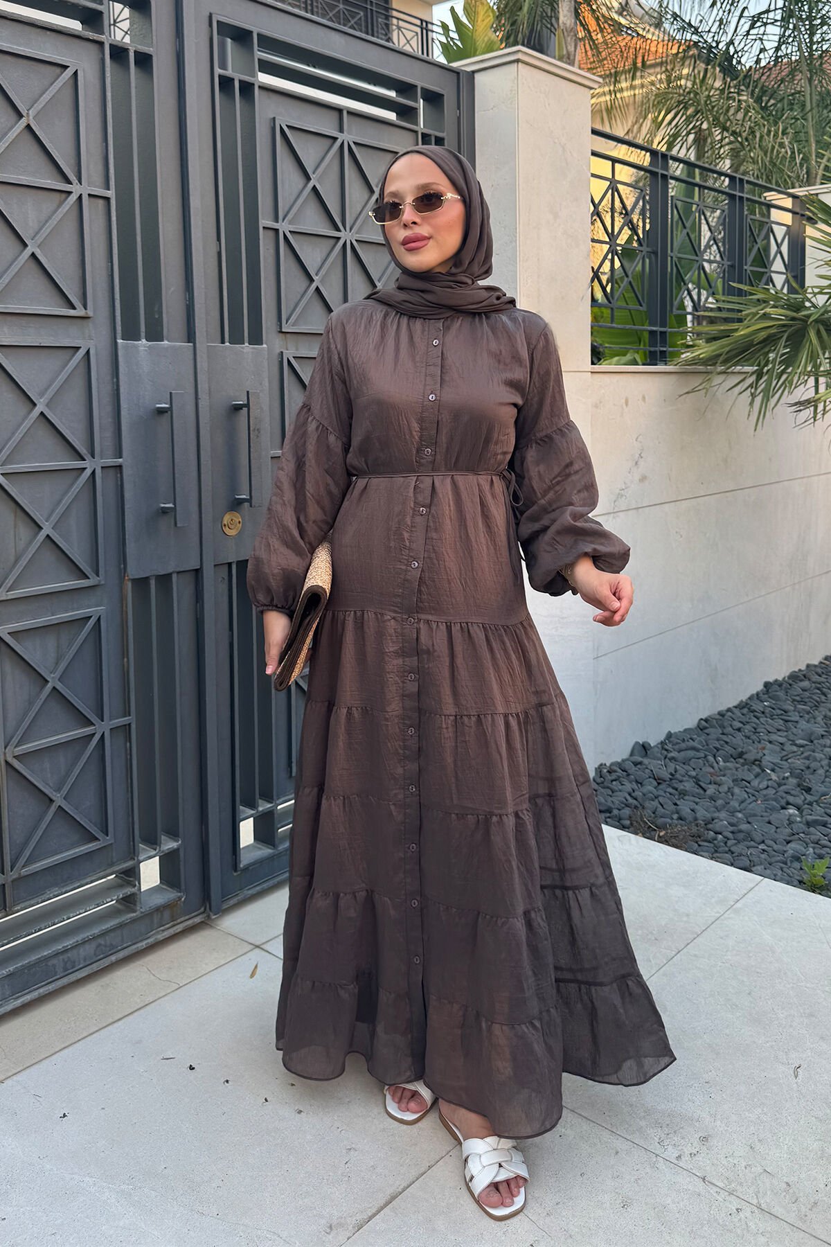 ASTARLI VUAL ELBİSE 31-3341 - KAHVERENGİ