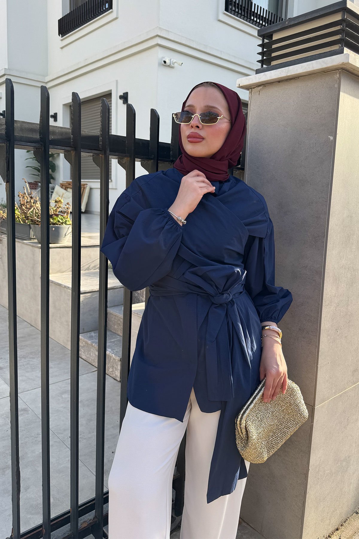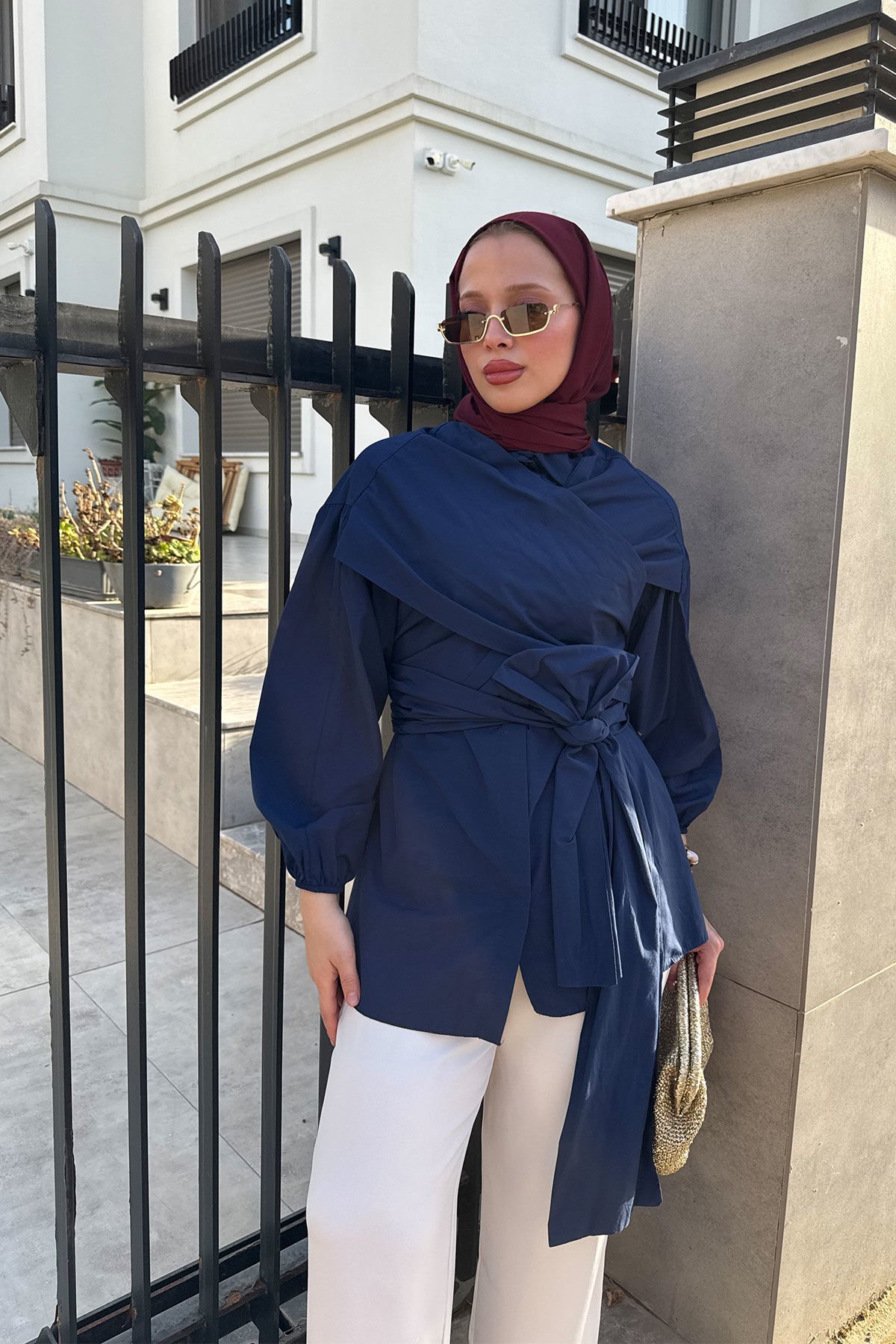 BAĞLAMALI GÖMLEK 31-2278- LACİVERT