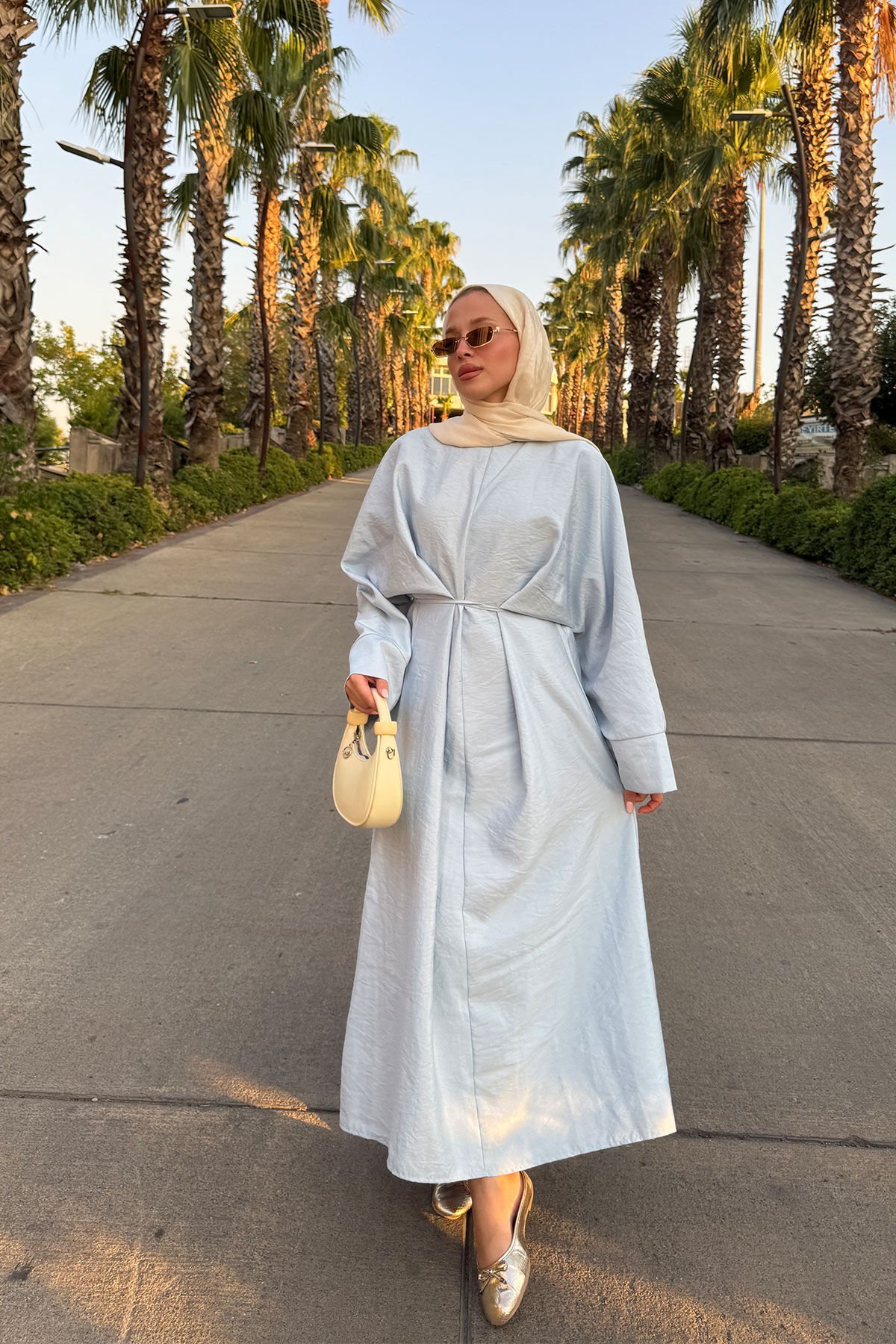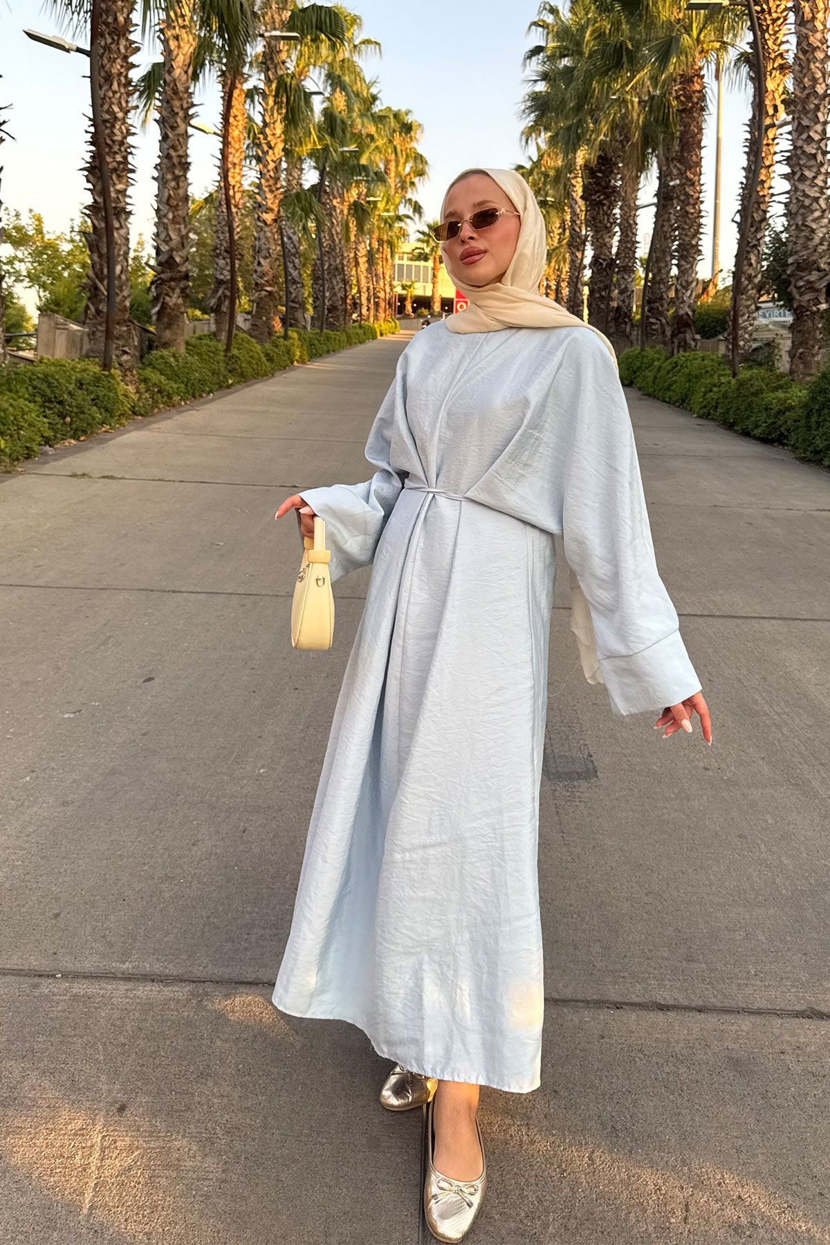 BELDEN BAGLAMALI ELBİSE 31-3375 - MAVİ