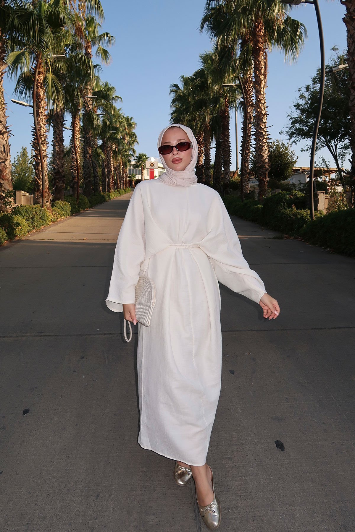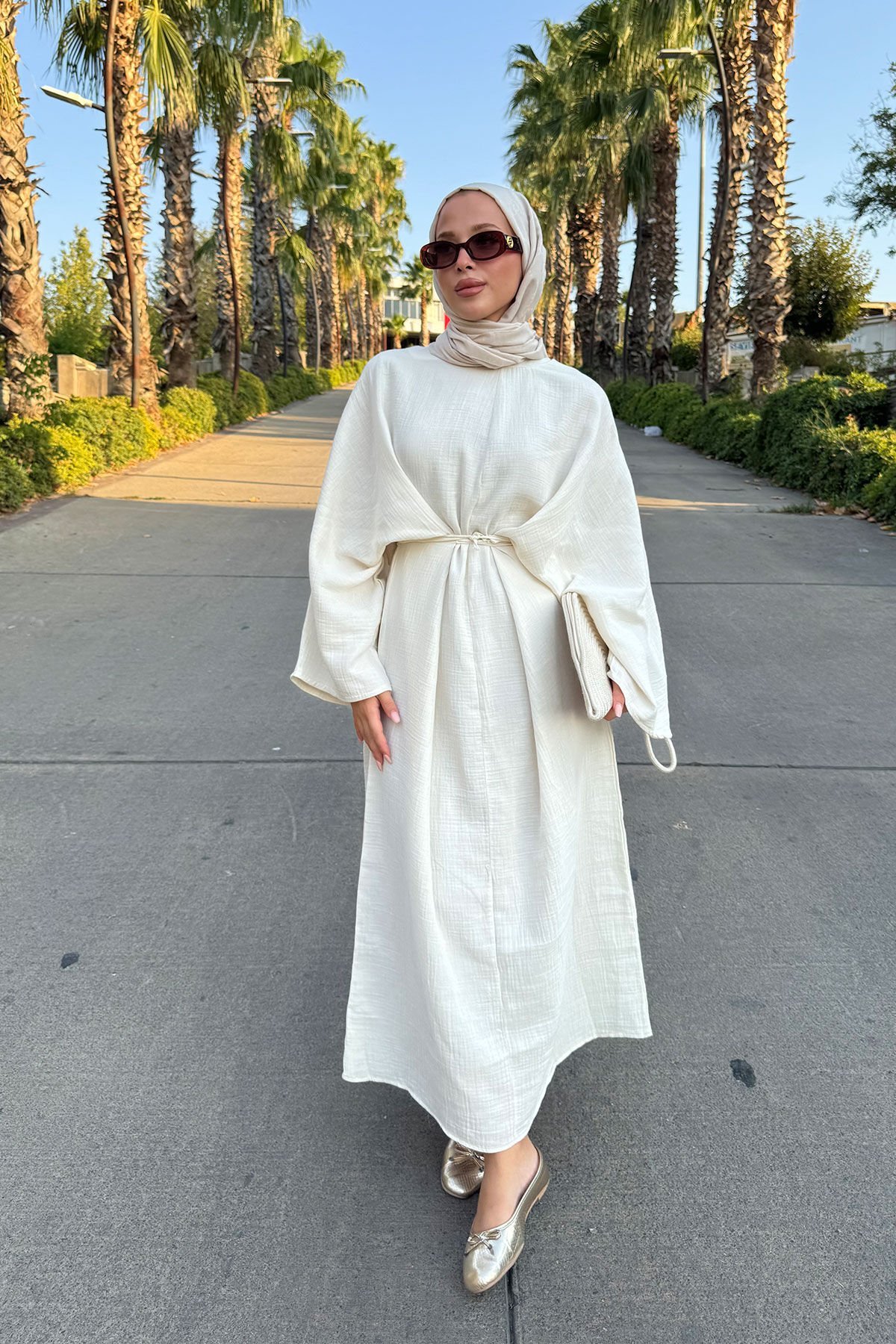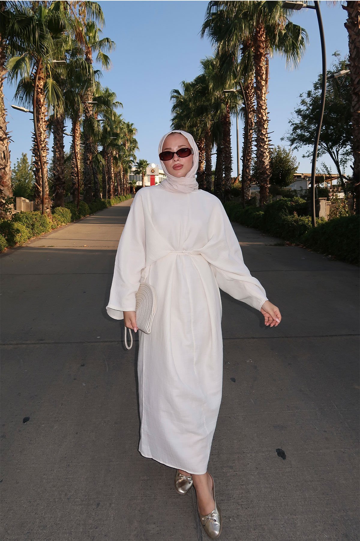 BİYE BAGLAMALI ELBİSE 9-51545 - EKRU