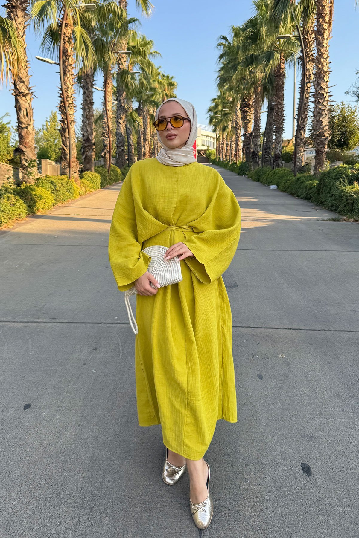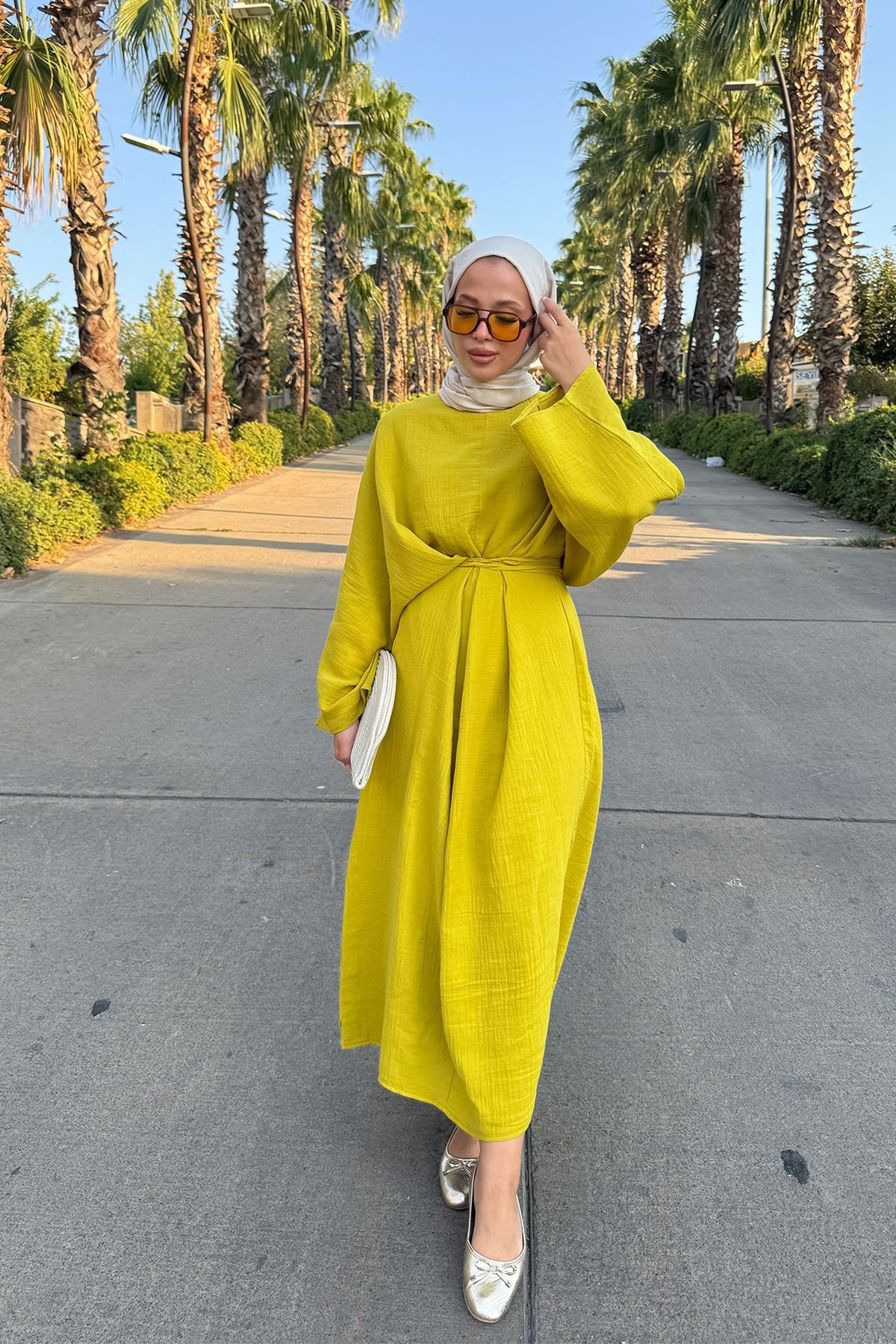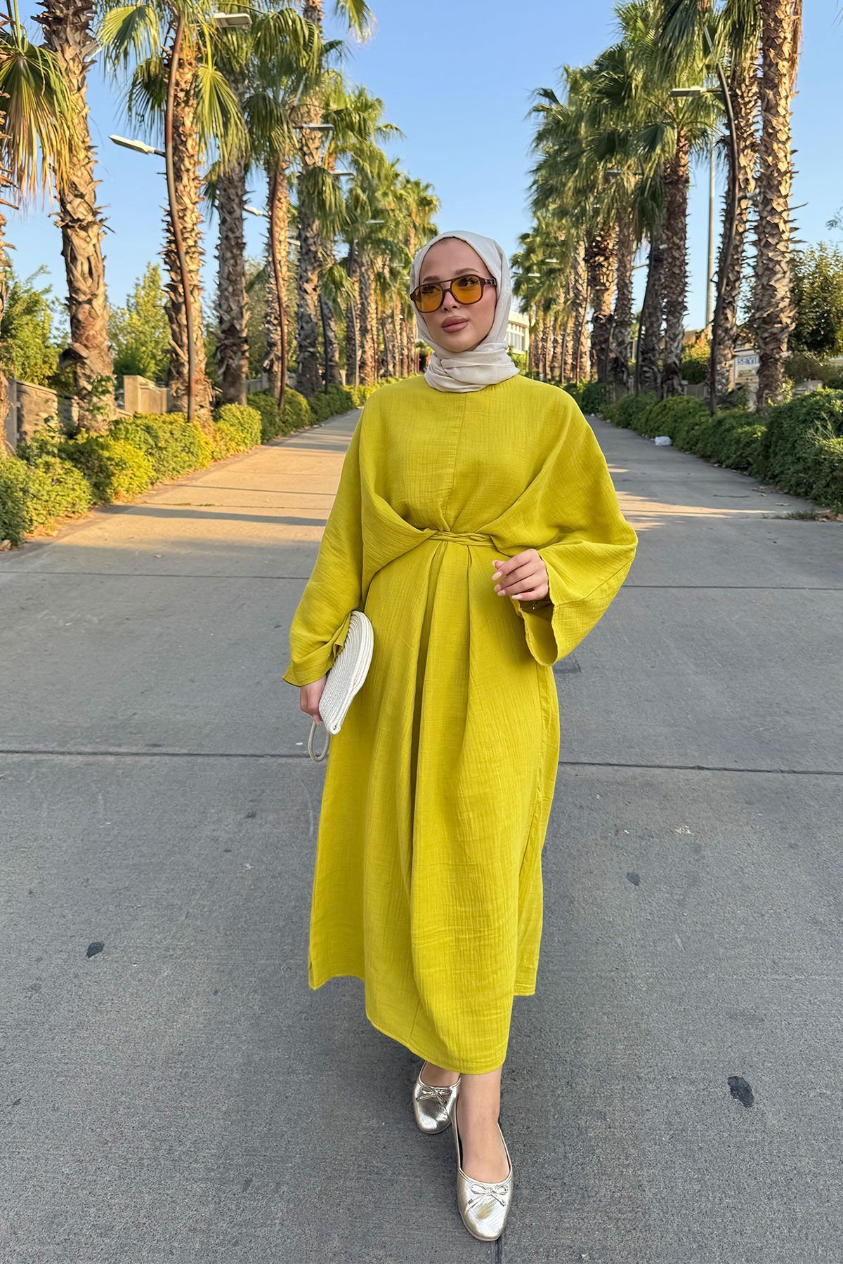 BİYE BAGLAMALI ELBİSE 9-51545 - OLİVE