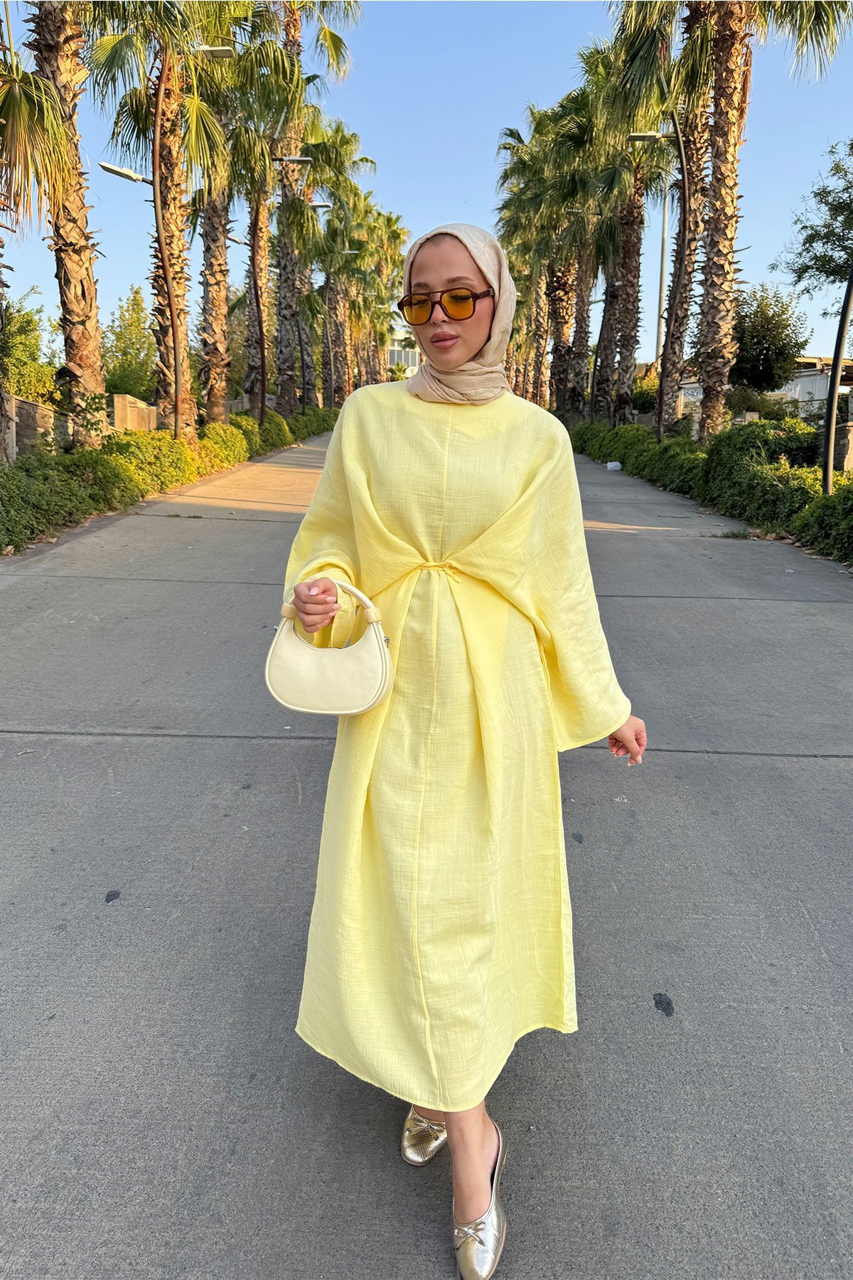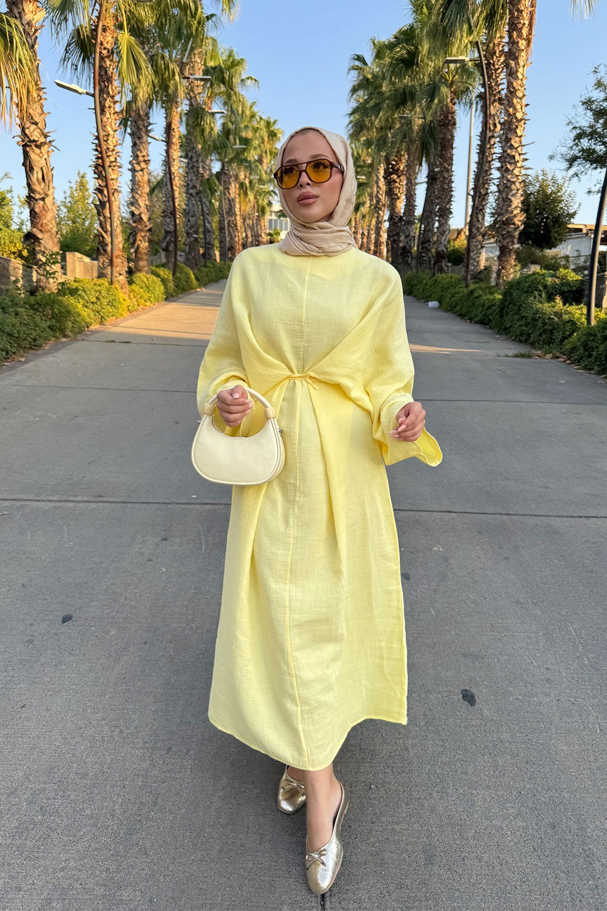 BİYE BAGLAMALI ELBİSE 9-51545 - SARI