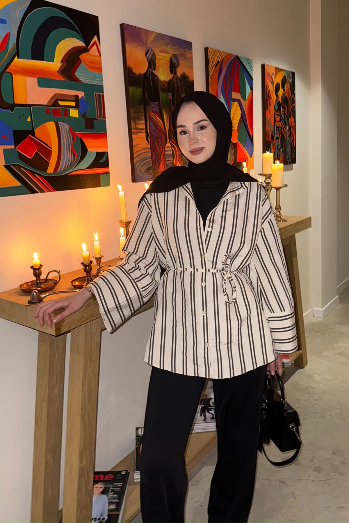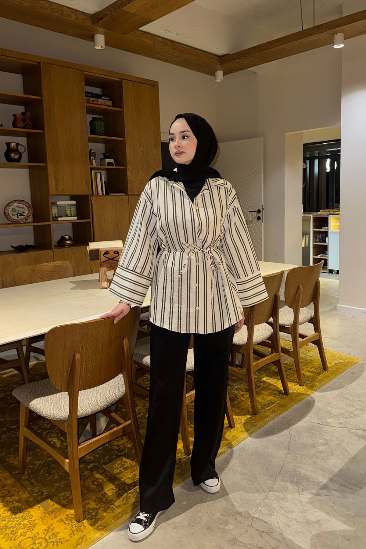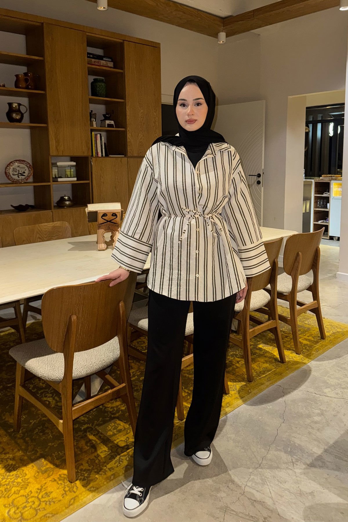 ÇİZGİLİ BAGLAMALI GÖMLEK 31-0019 - EKRU