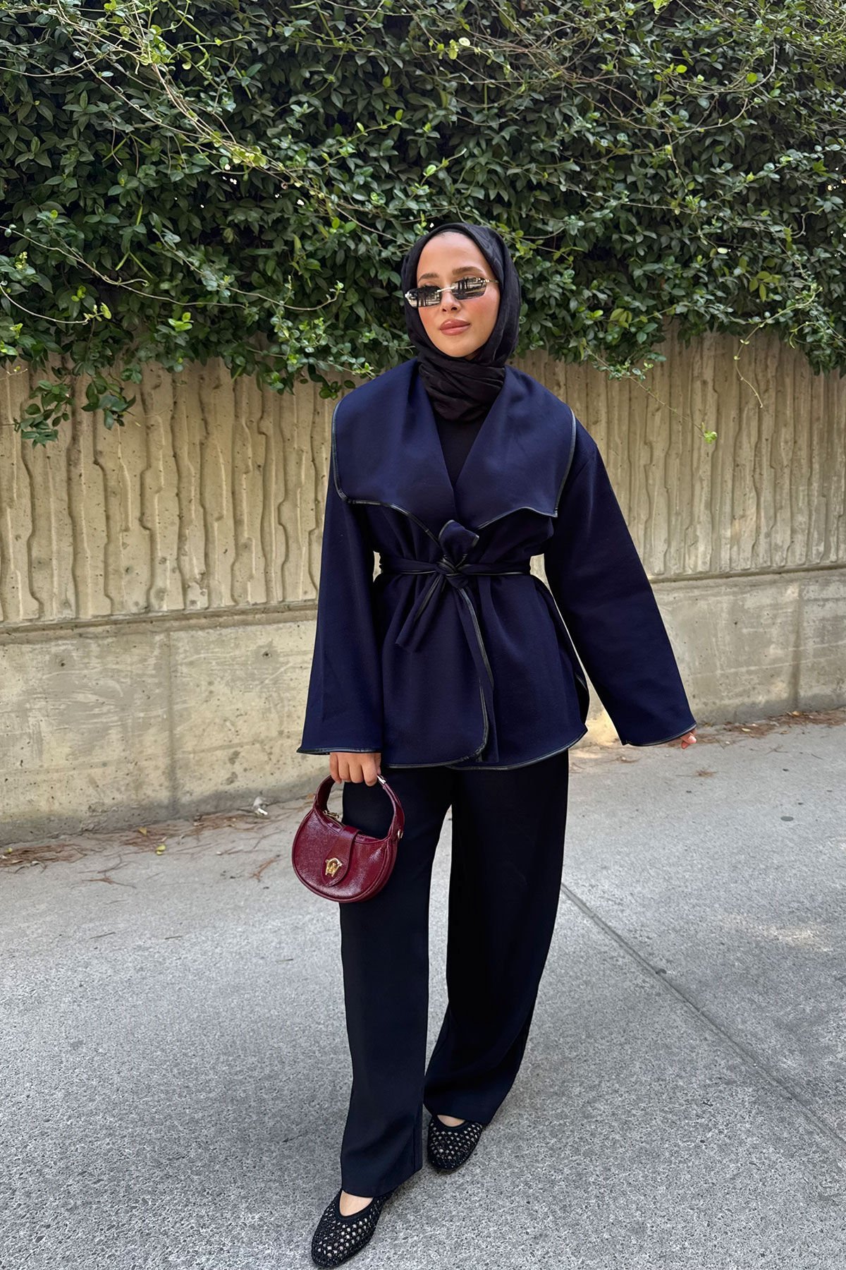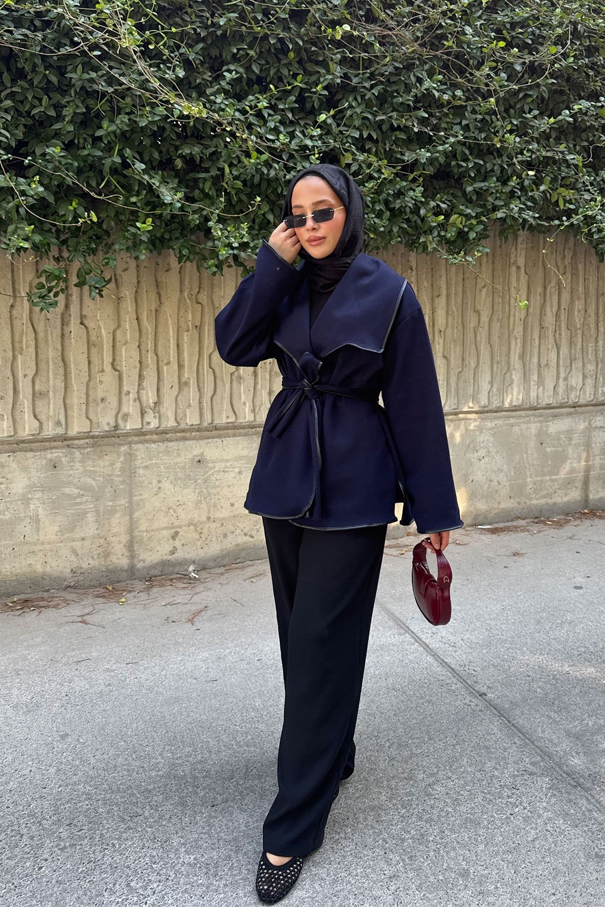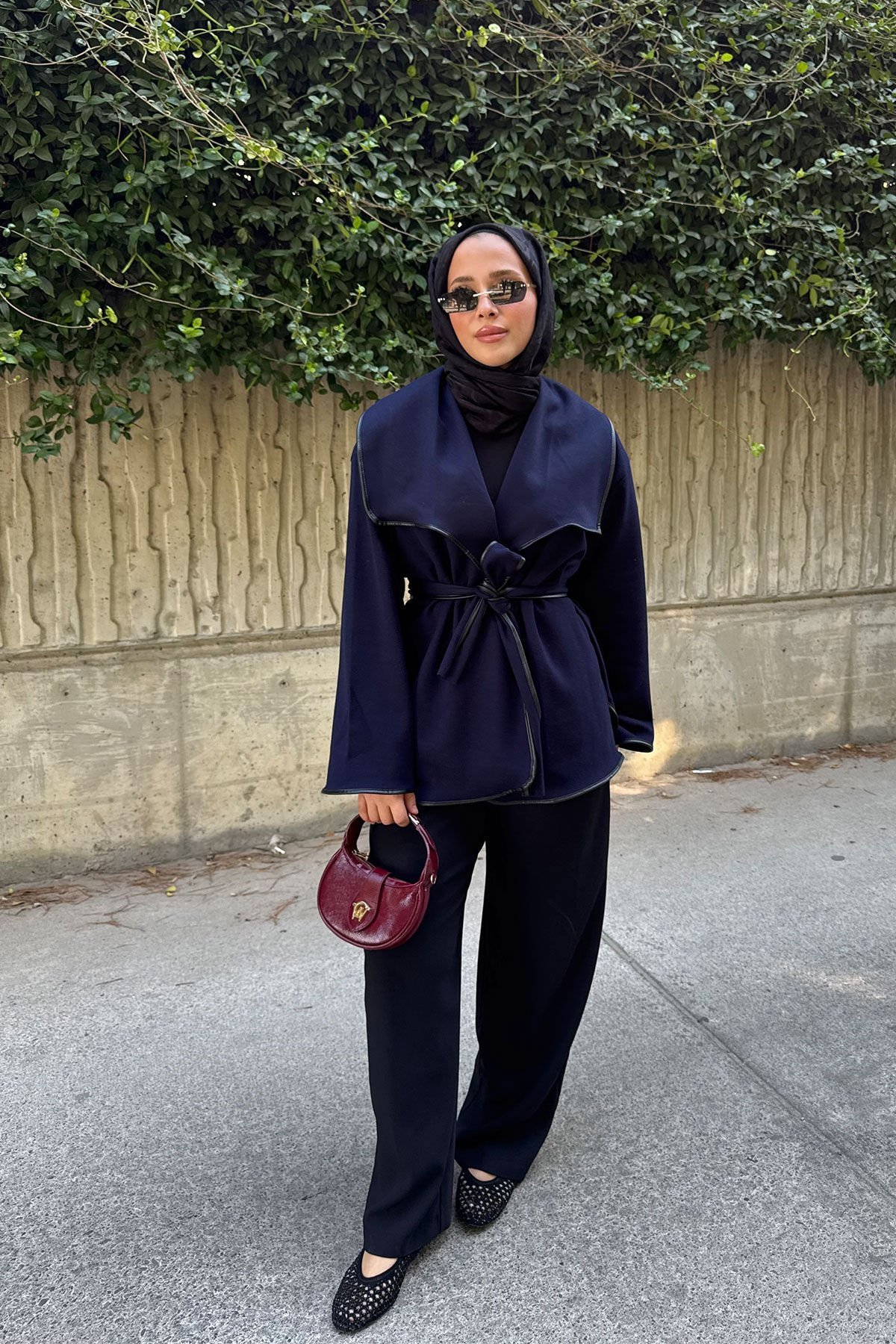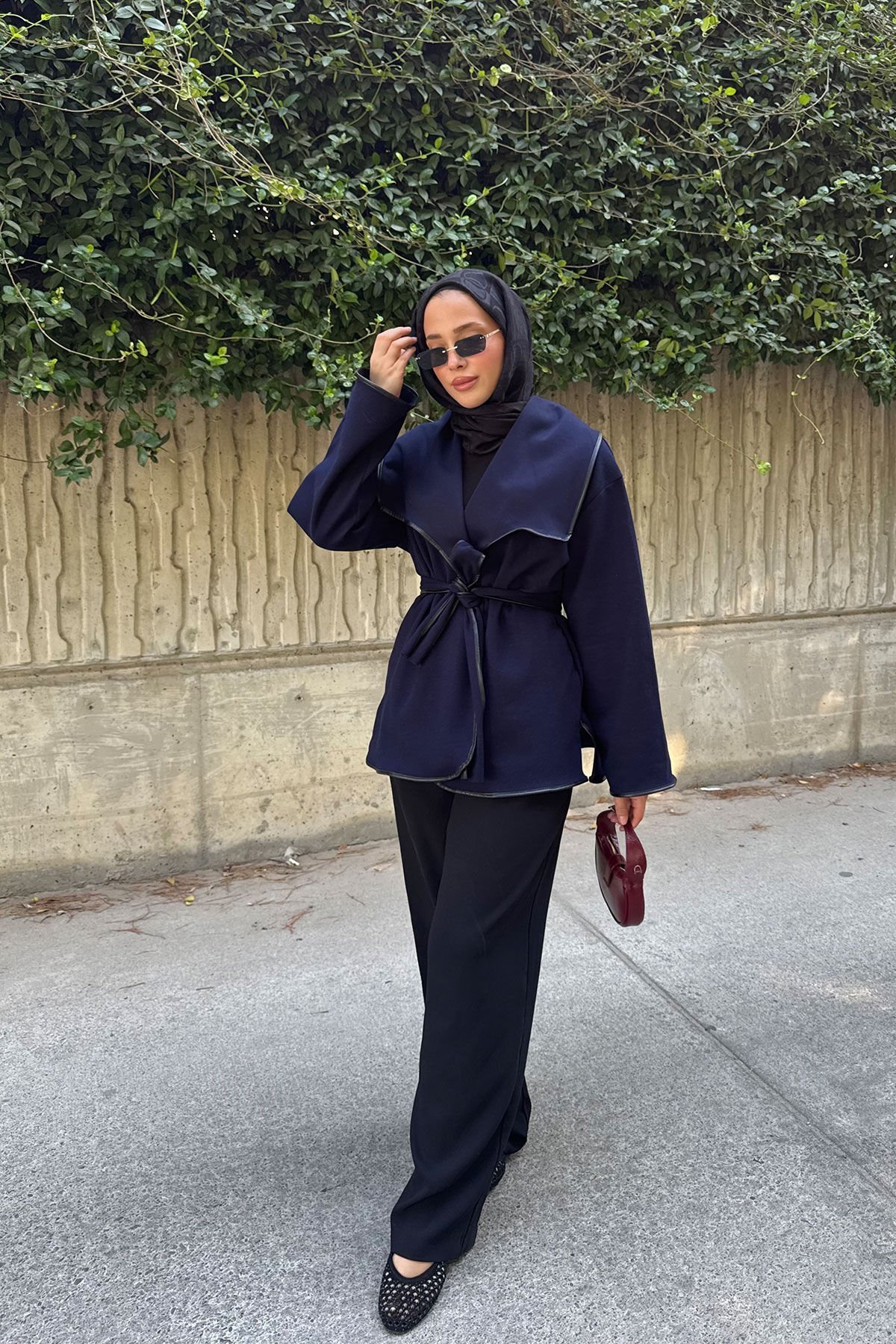 DERİ BİYELİ CEKET 9-52608 - LACİVERT