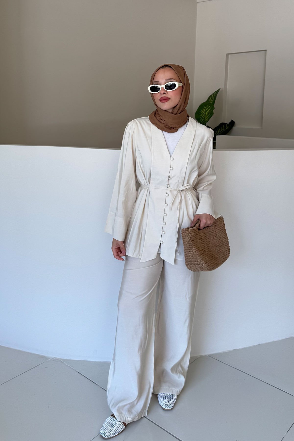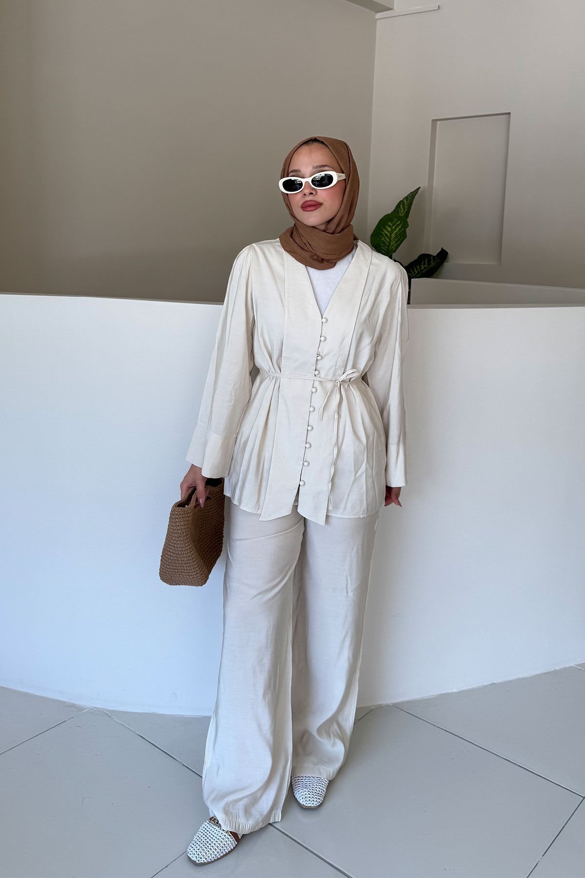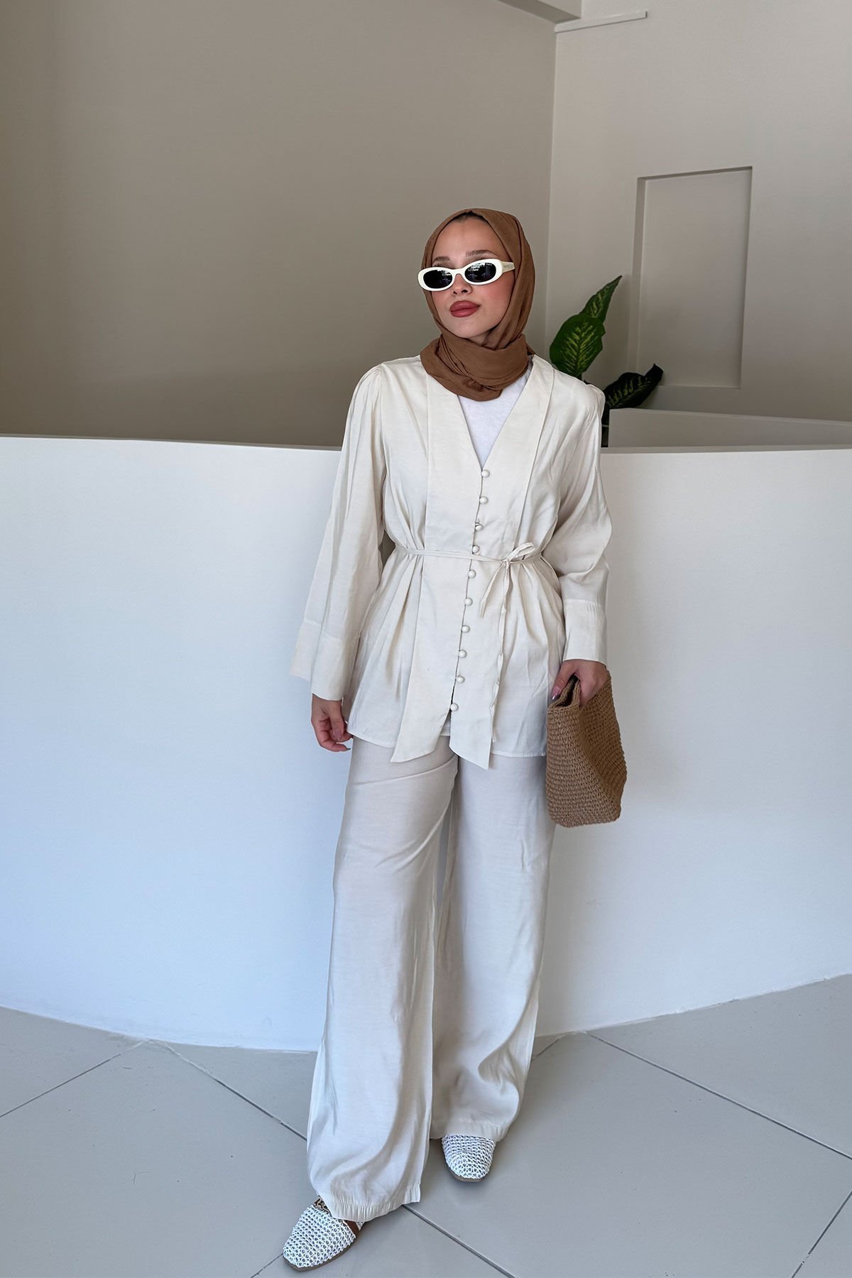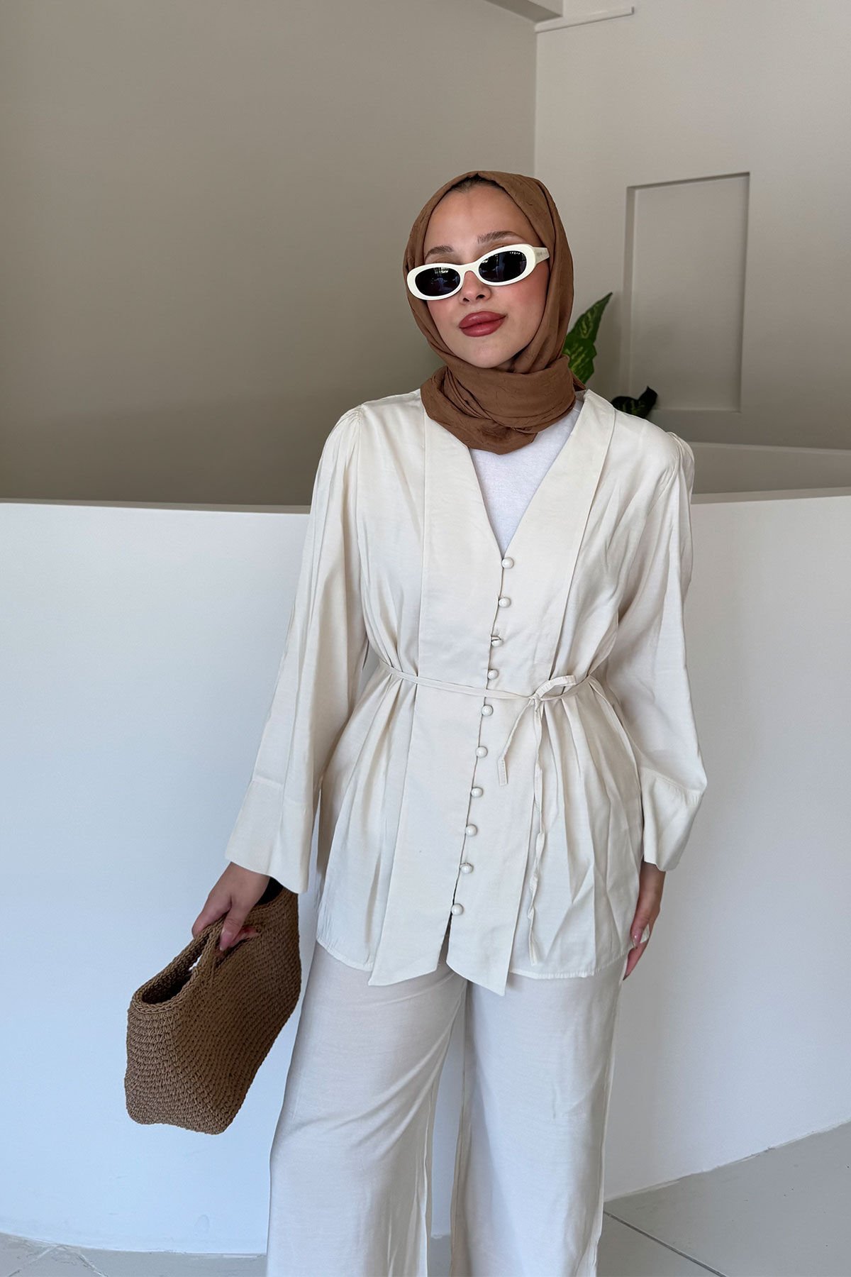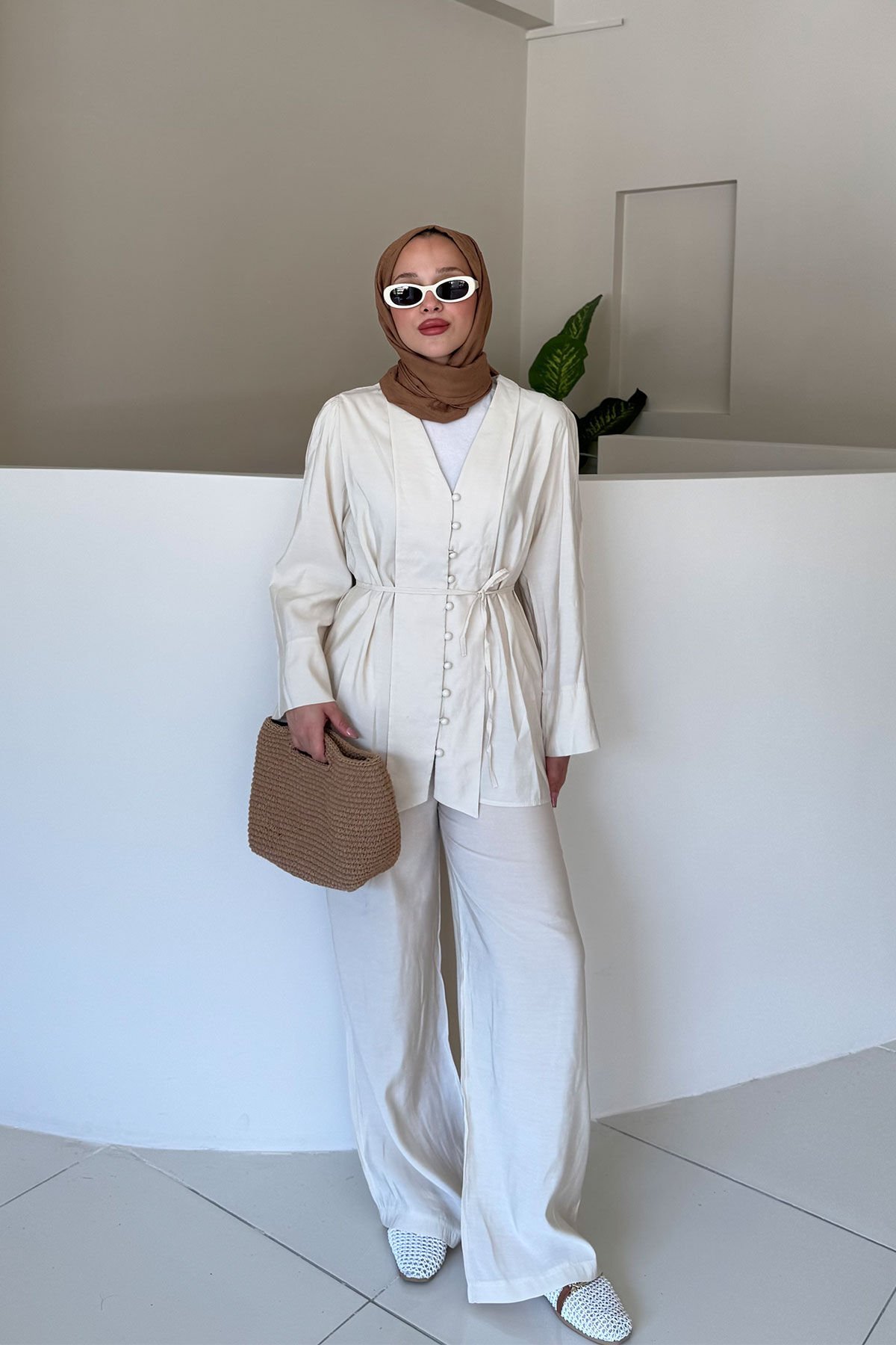 DÜGMELİ KİMONO TAKIM 9-51864 - BEJ