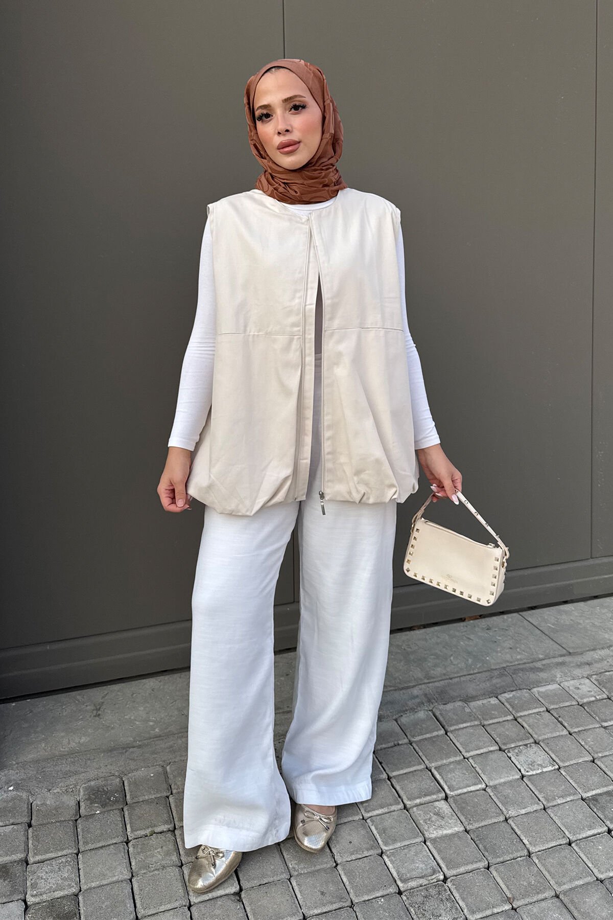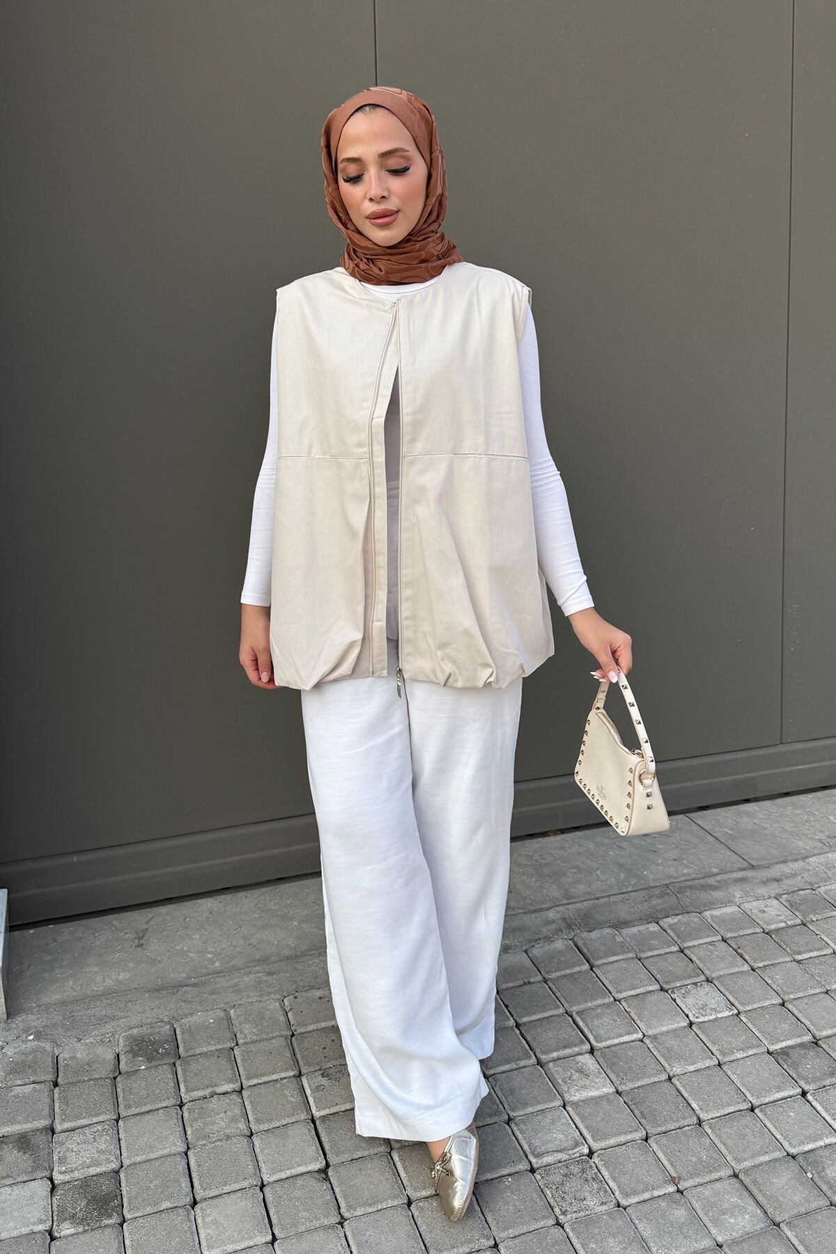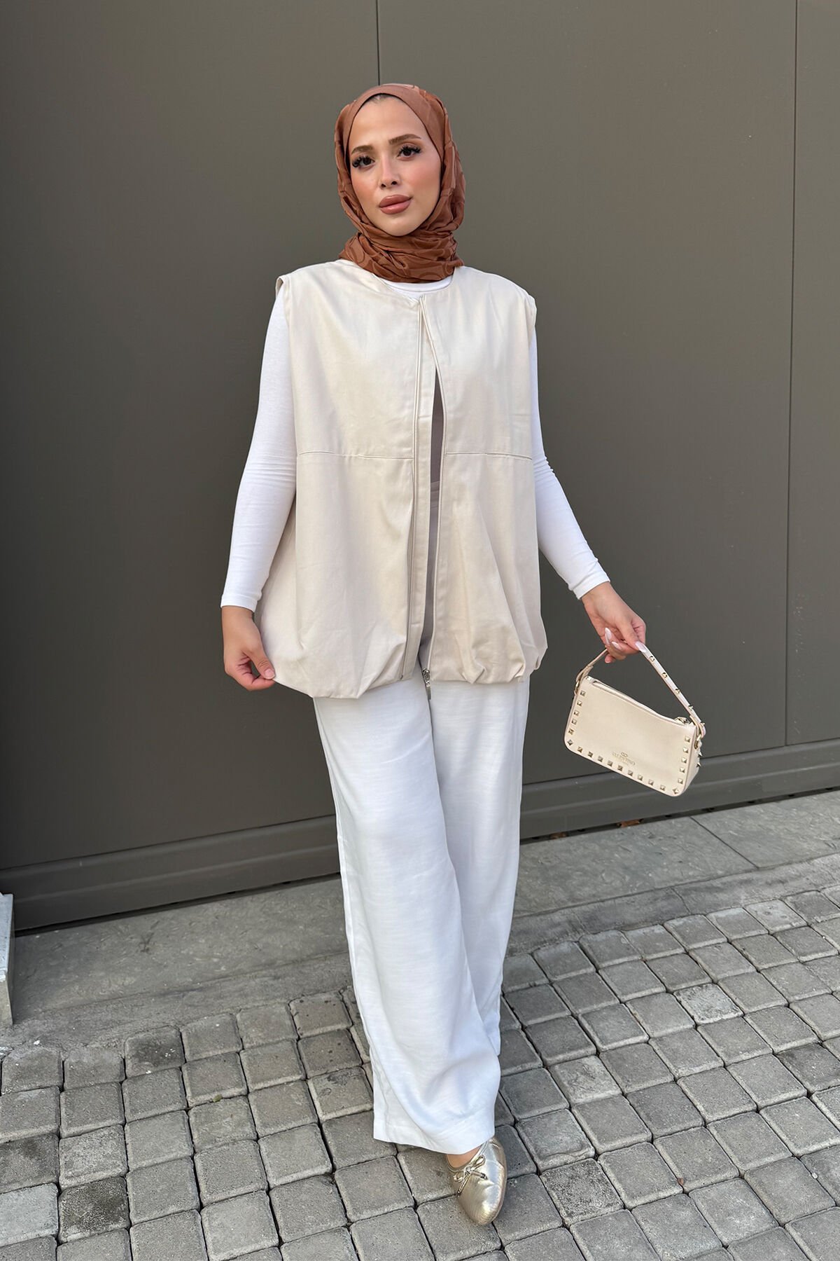 GABARDİN ASTARLI YELEK 9-52902 - BEJ
