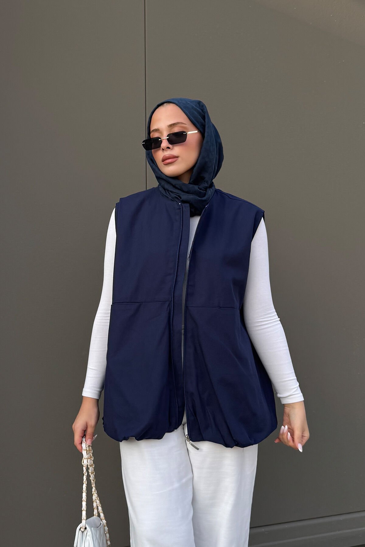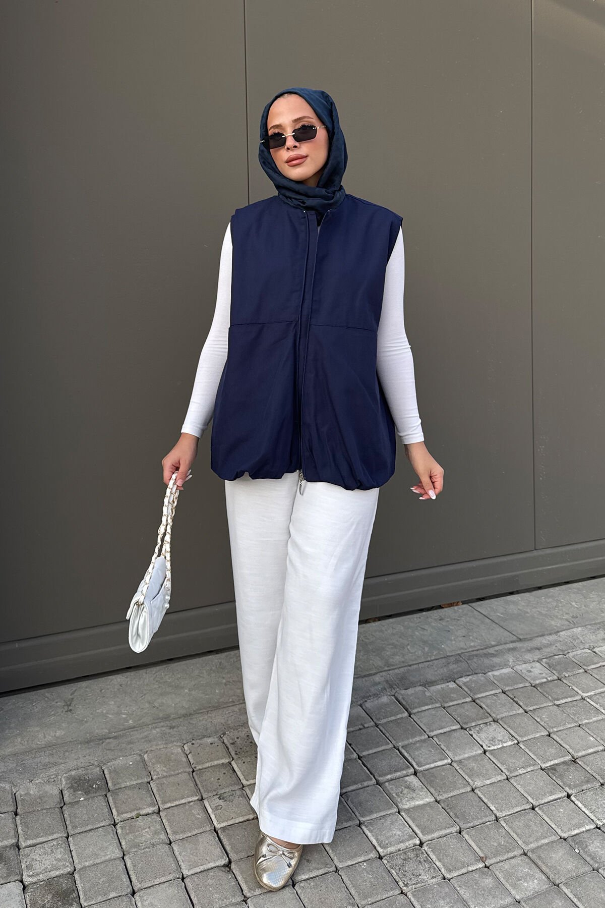 - Oversize kesim, önü fermuarlı, önden cep, içi astarlı ve Gabardin yelek