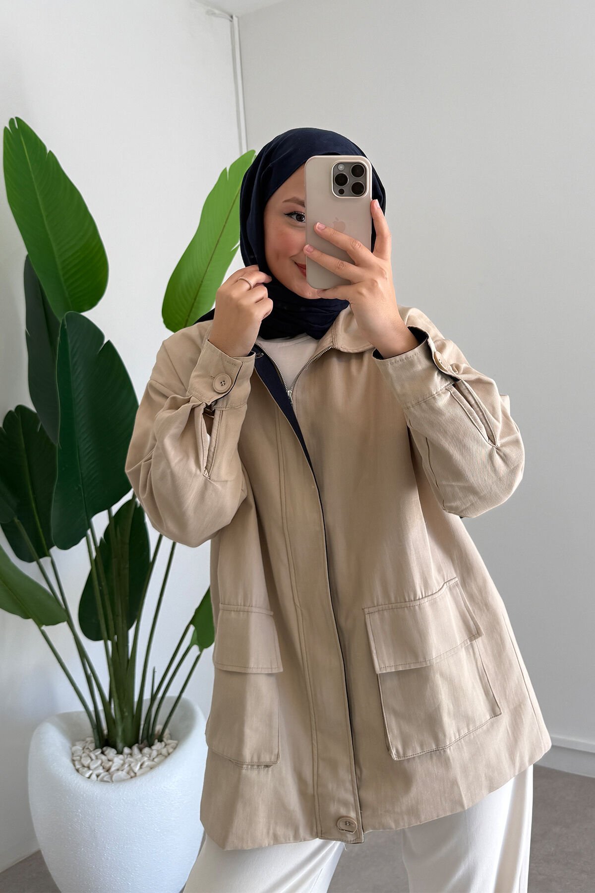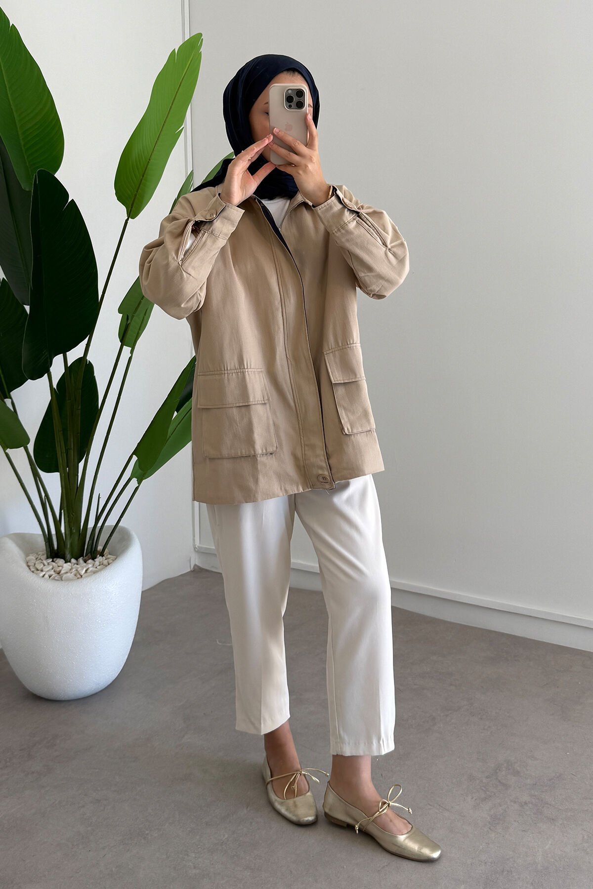 GABARDİN CEPLİ CEKET 9-52726 - BEJ