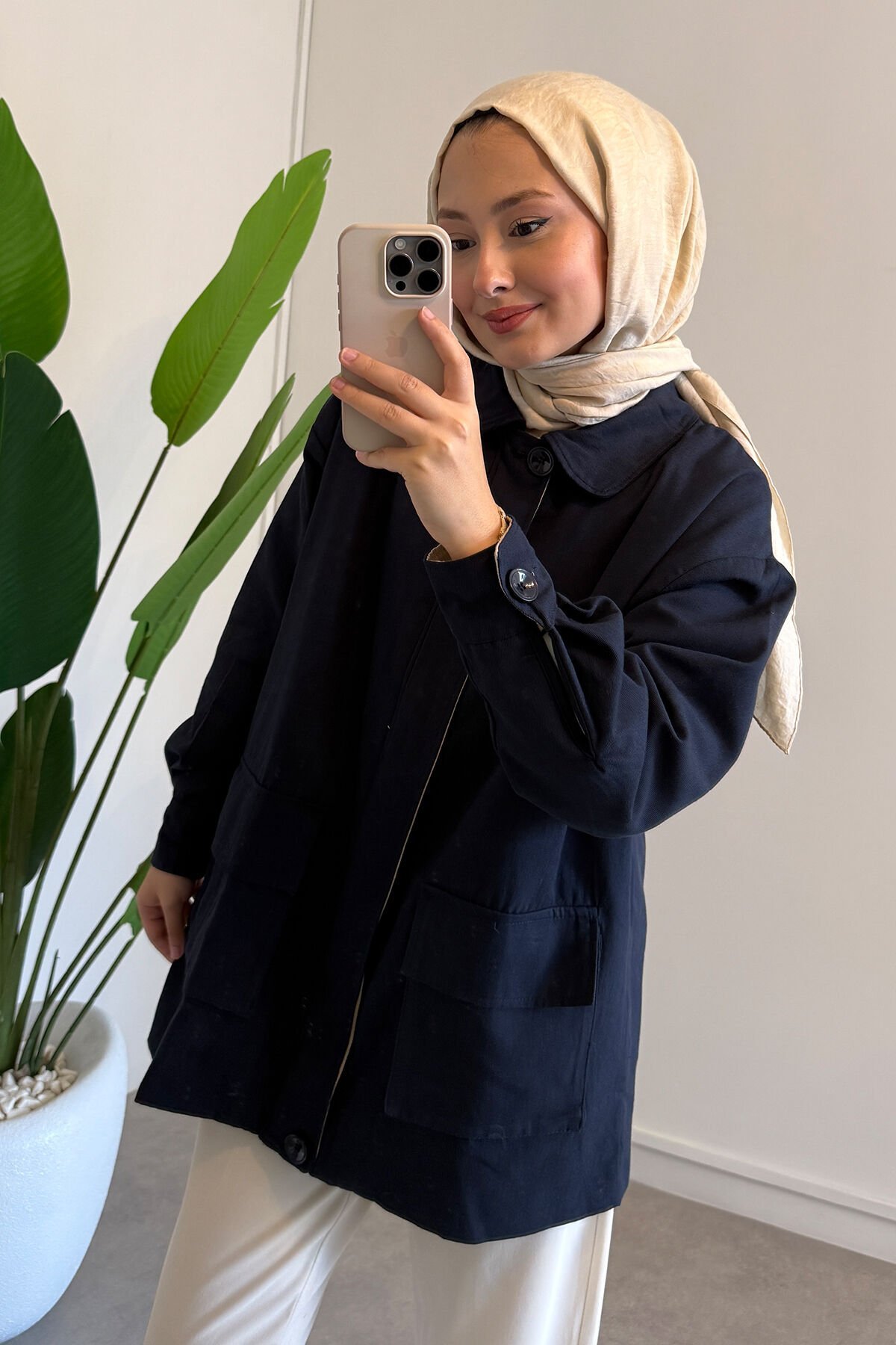 GABARDİN CEPLİ CEKET 9-52726 - LACİVERT