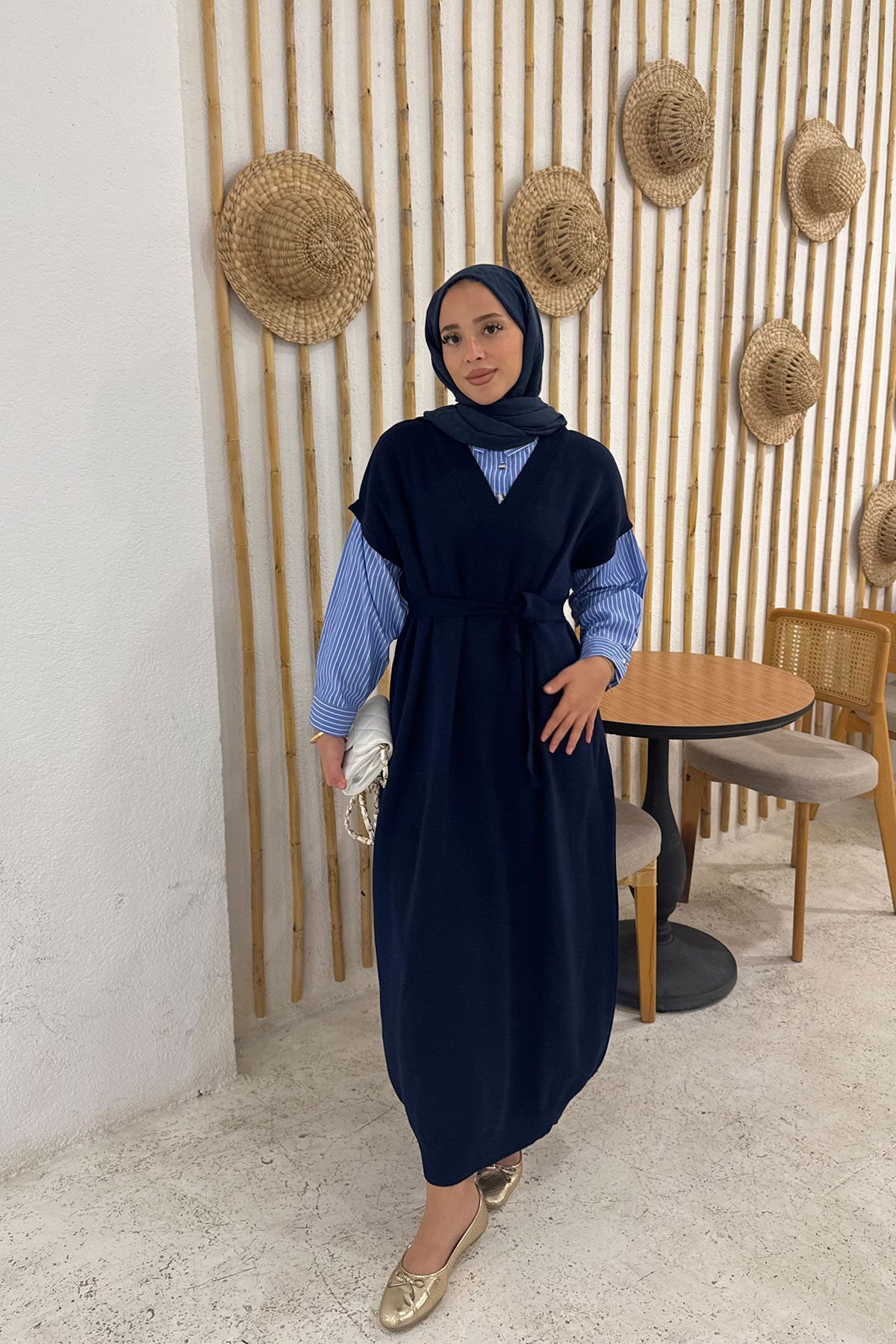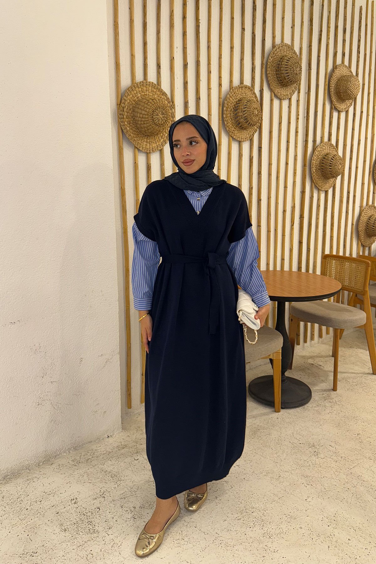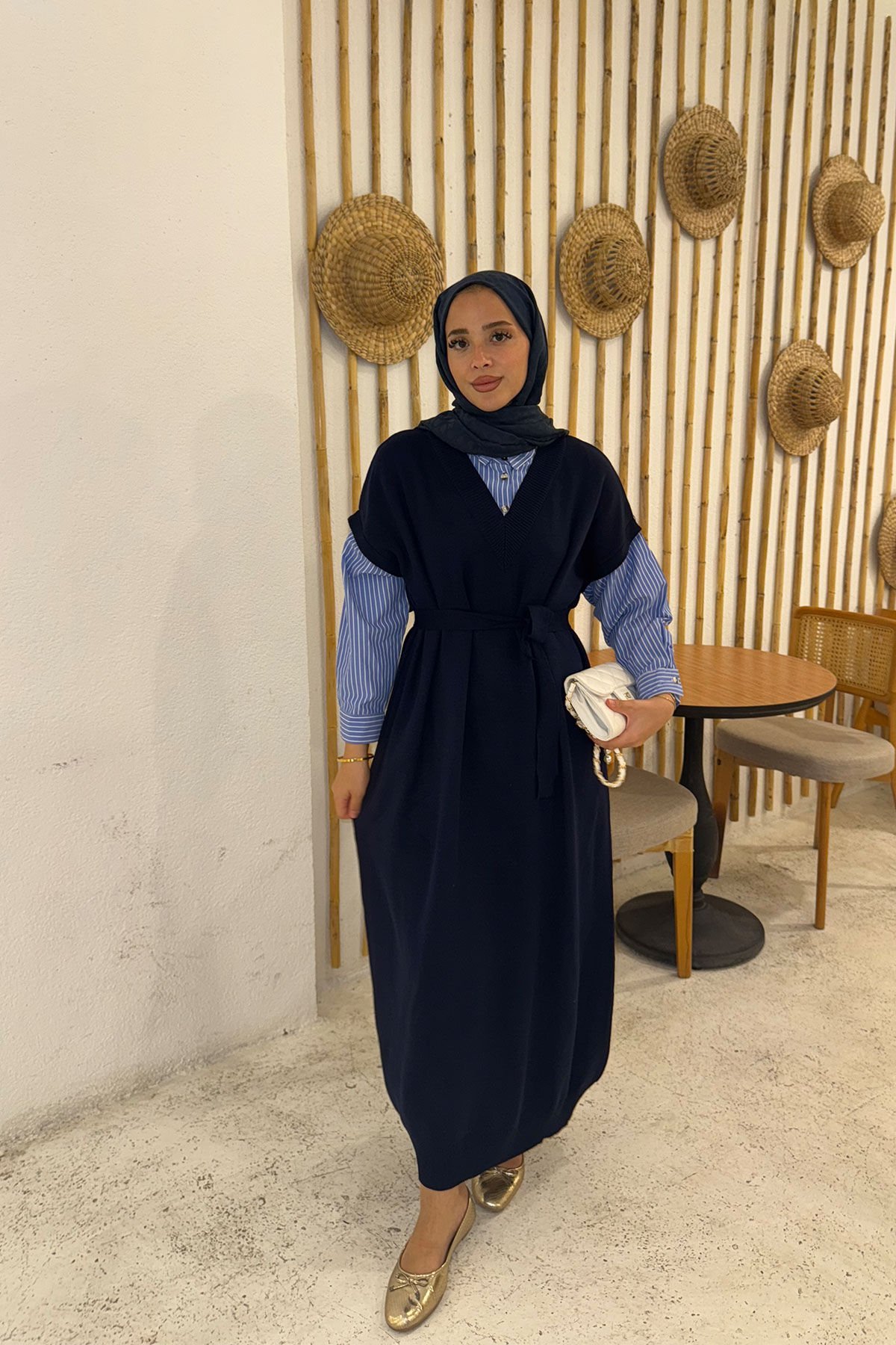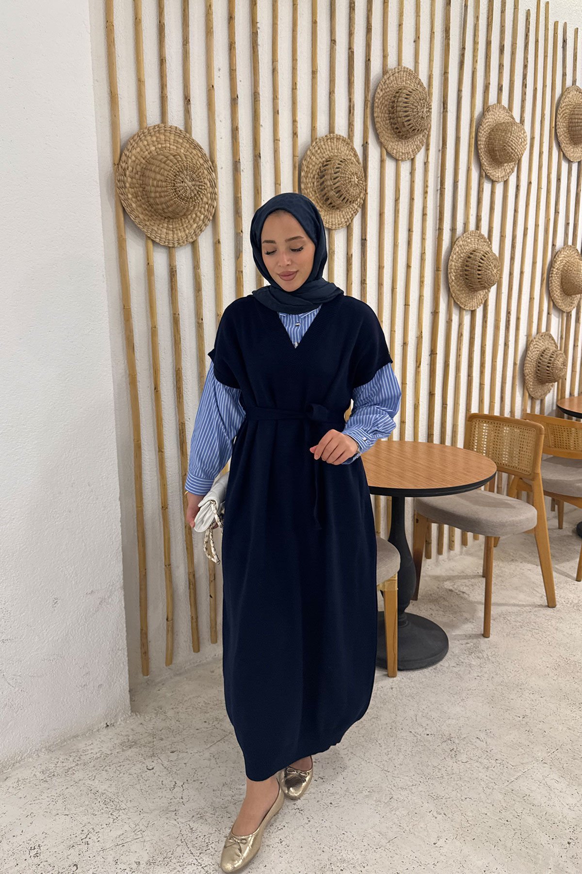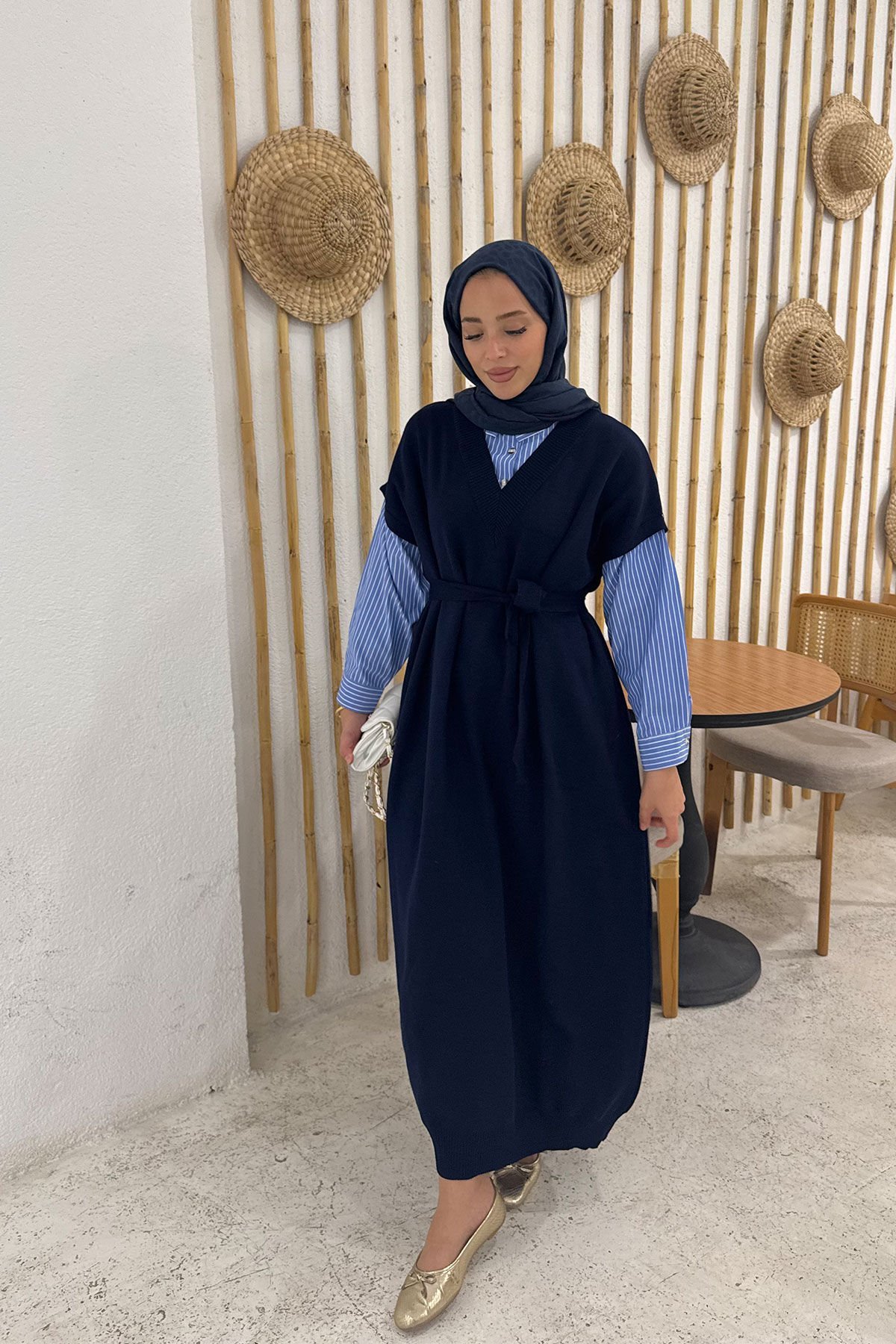 Gömlek Detay Trıko Elbise 9-24001 - LACİVERT