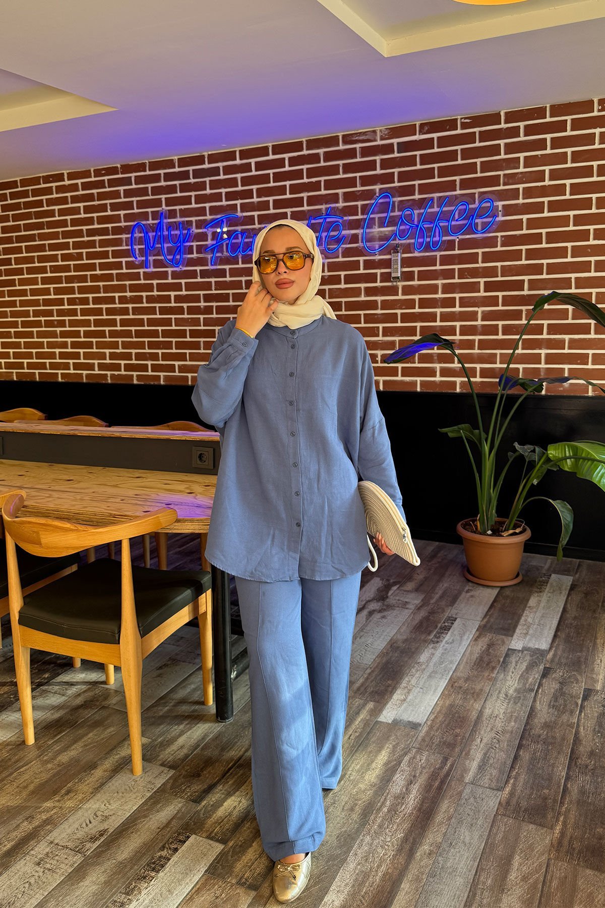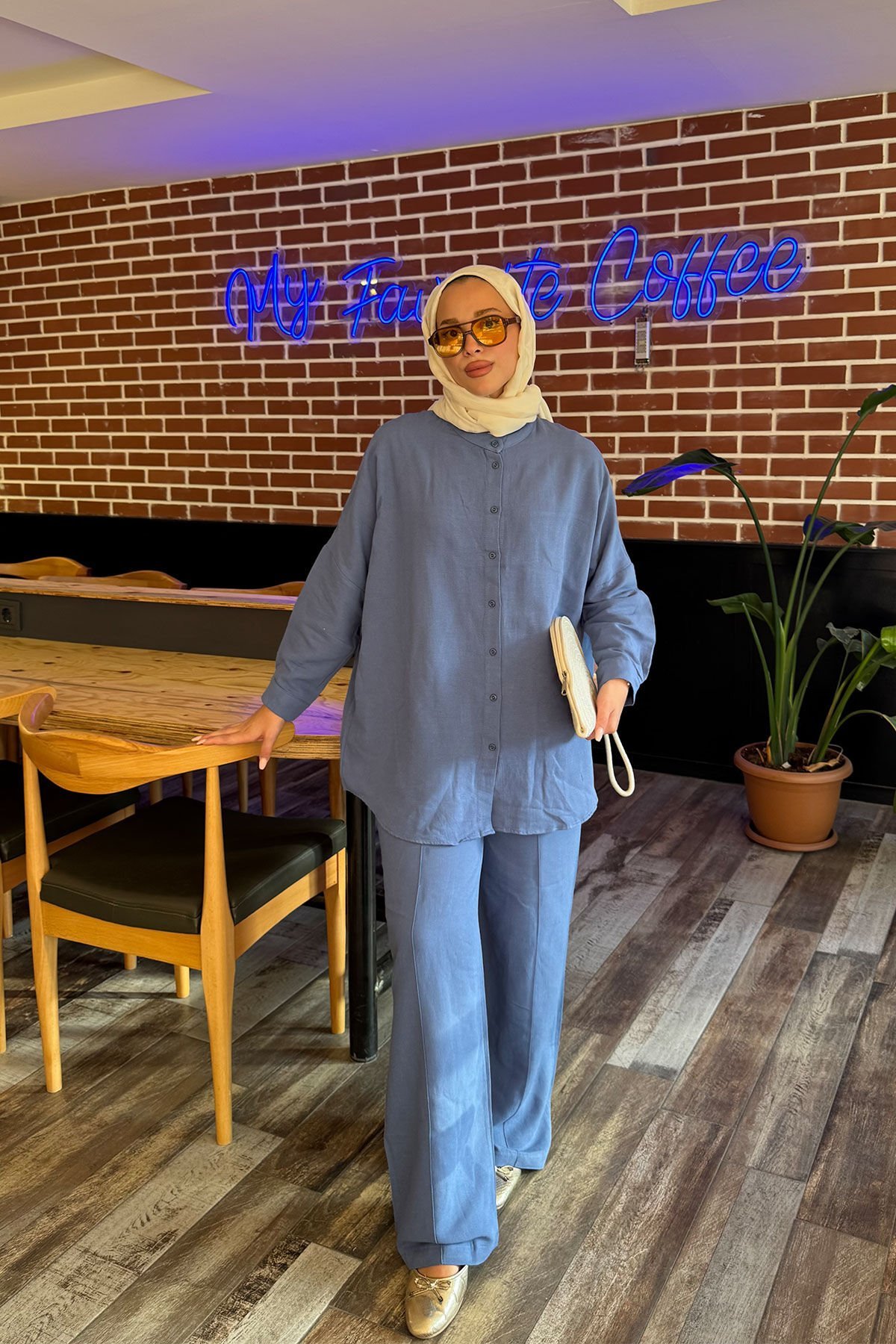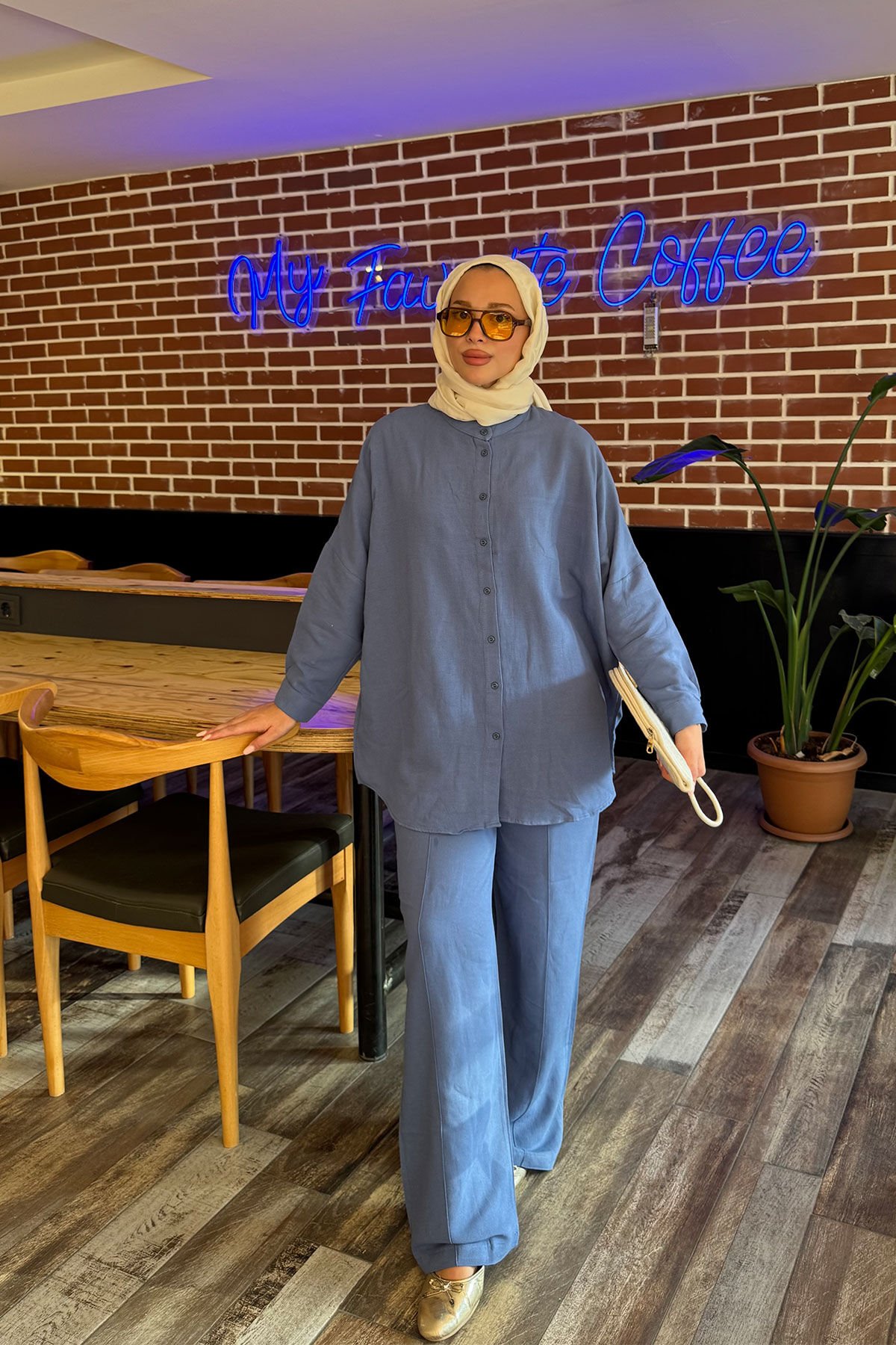 HAKİM YAKA KETEN TAKIM 9-51858 - İNDİGO