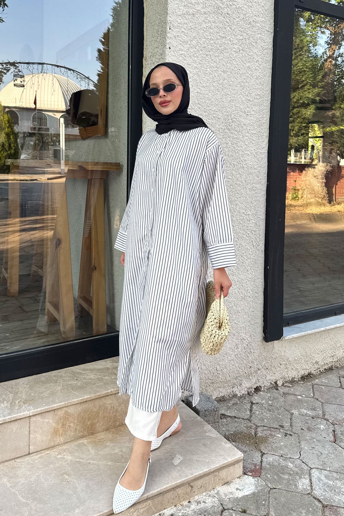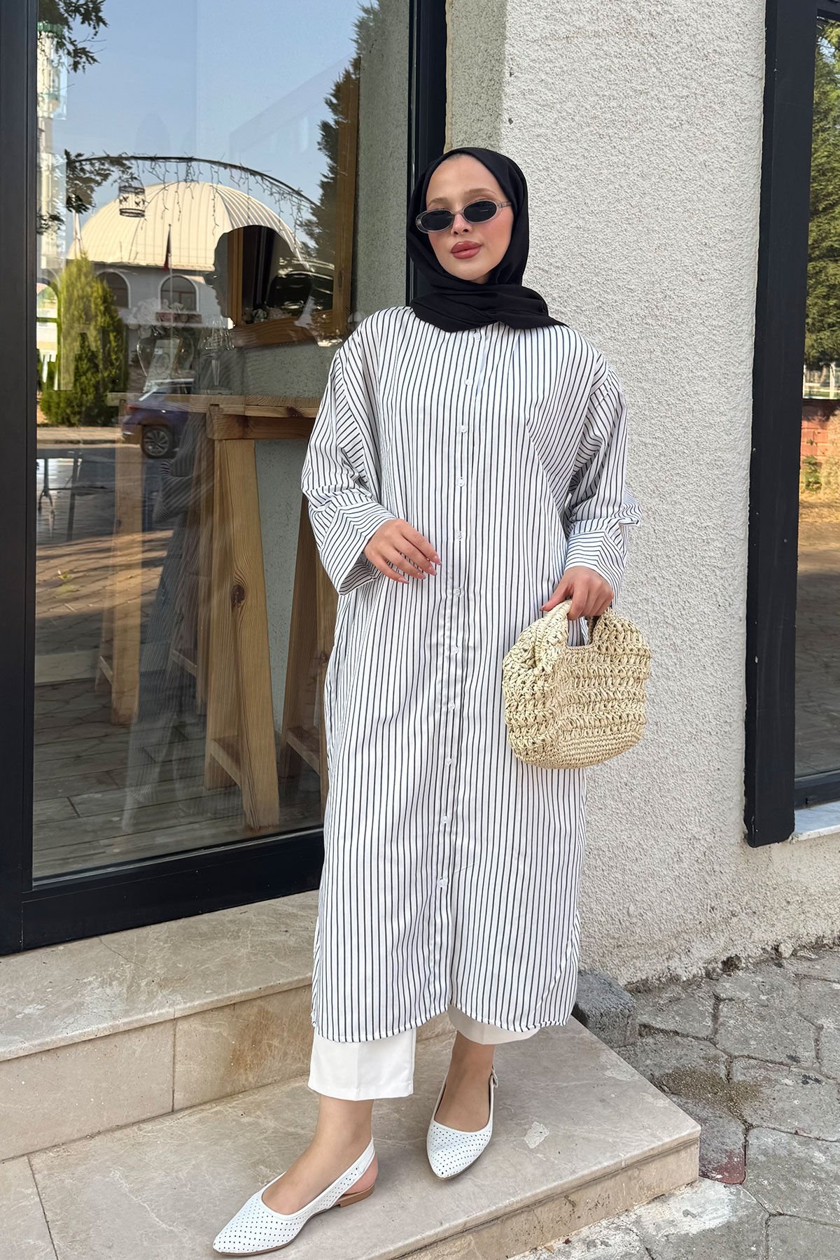 - Regular kesim,önden düğmeli tunik.