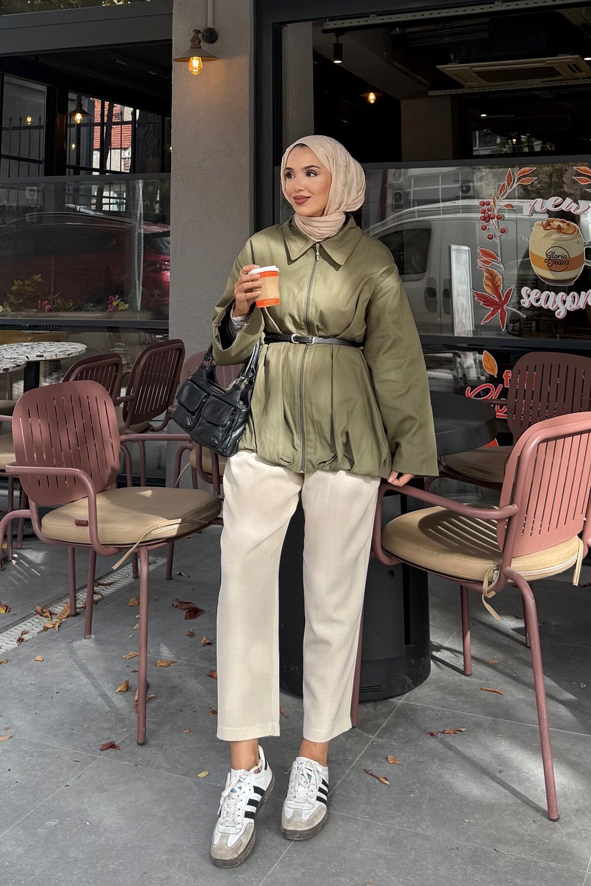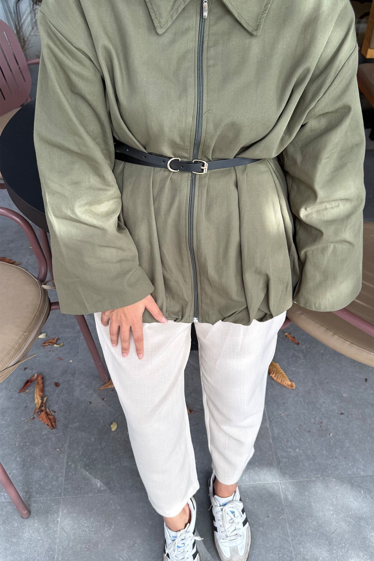 KEMERLİ GABARDİN CEKET 9-52625 - HAKİ YEŞİL