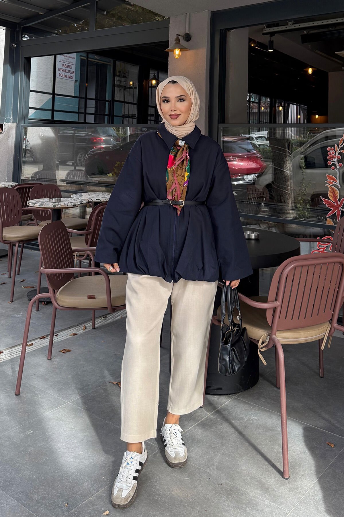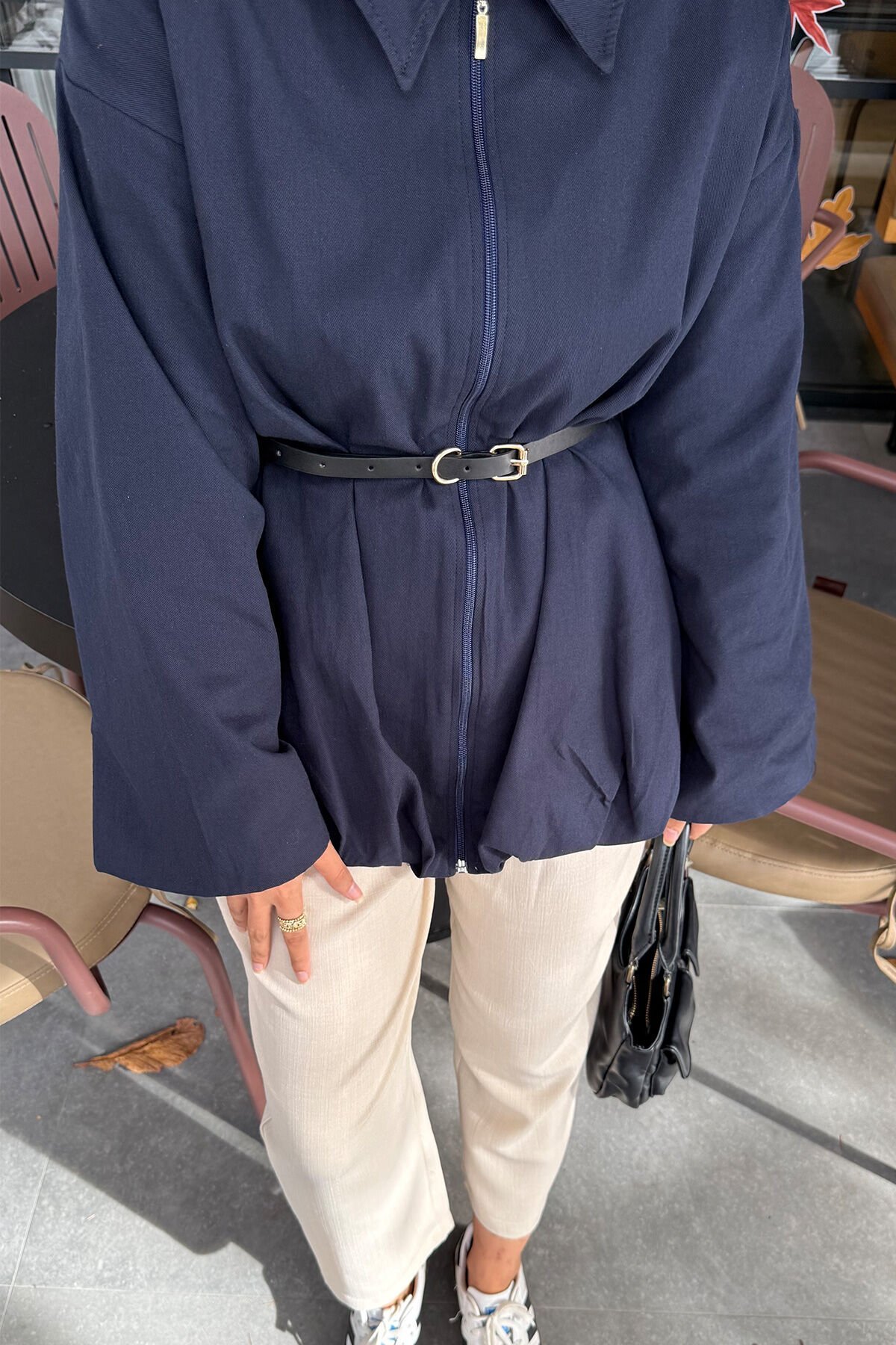 KEMERLİ GABARDİN CEKET 9-52625 - LACİVERT