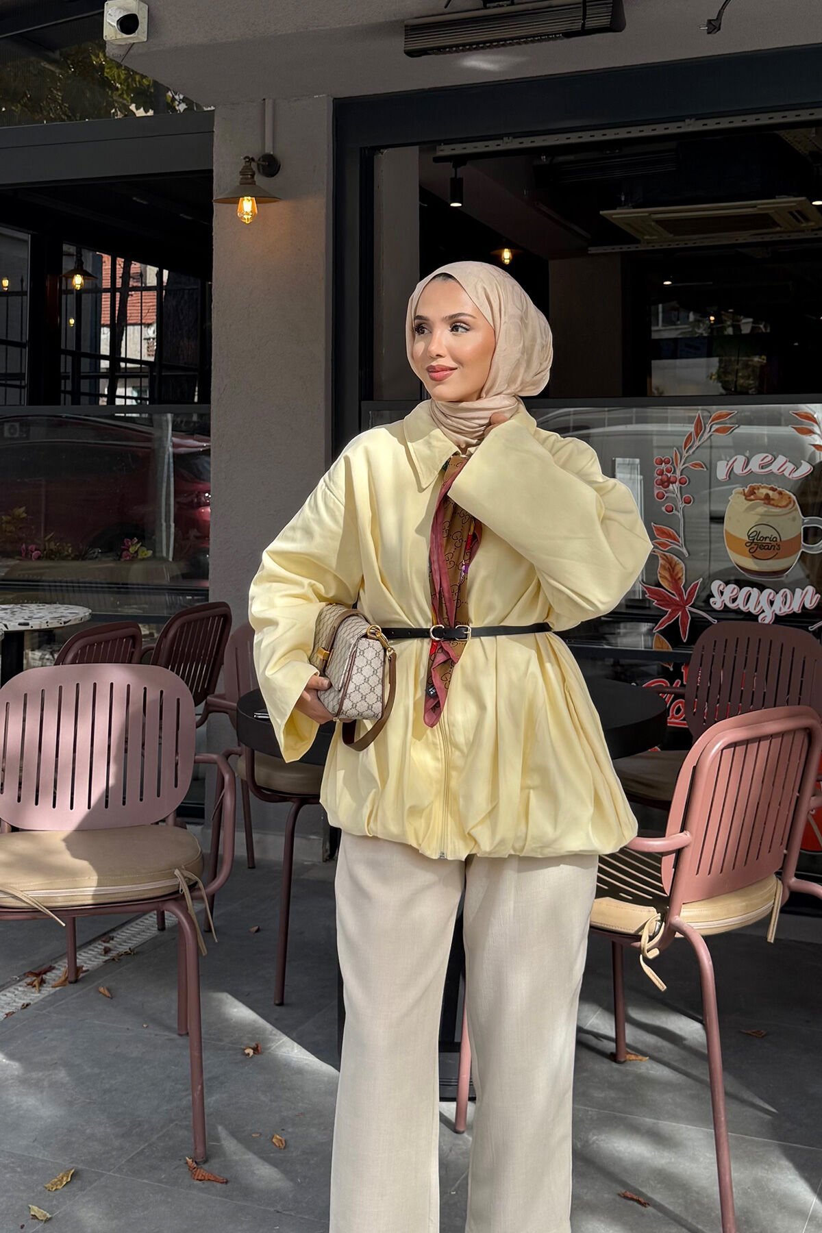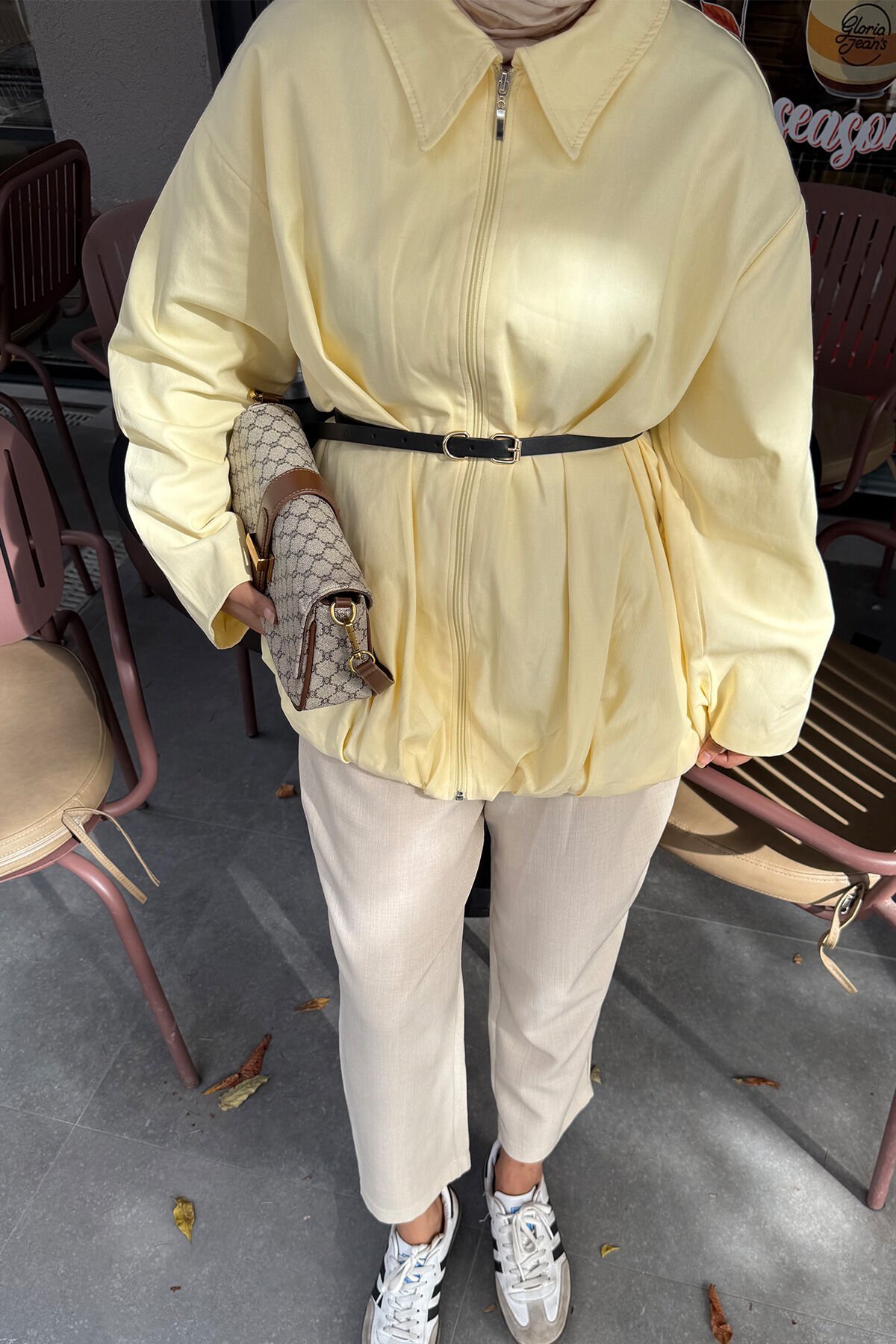 KEMERLİ GABARDİN CEKET 9-52625 - SARI