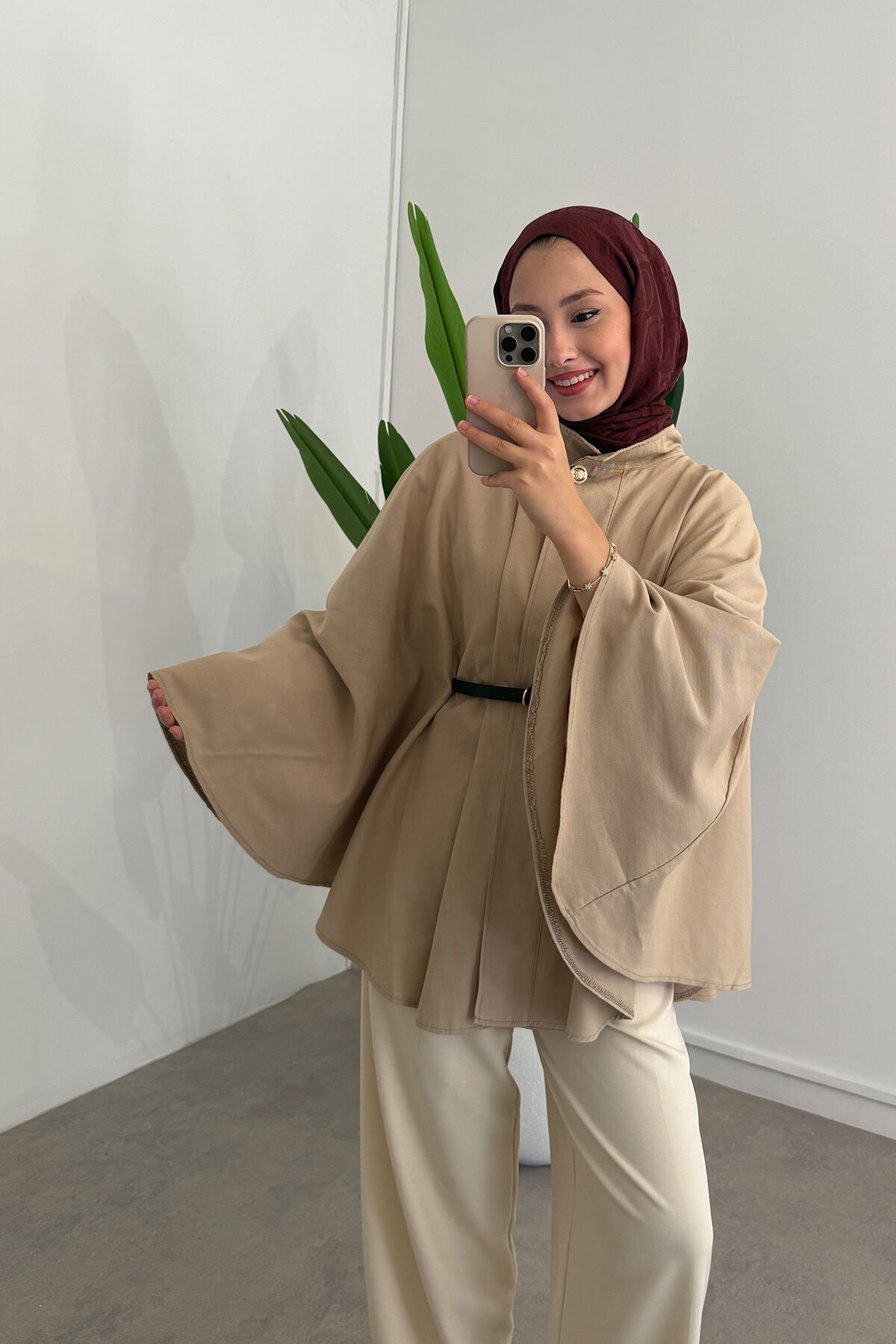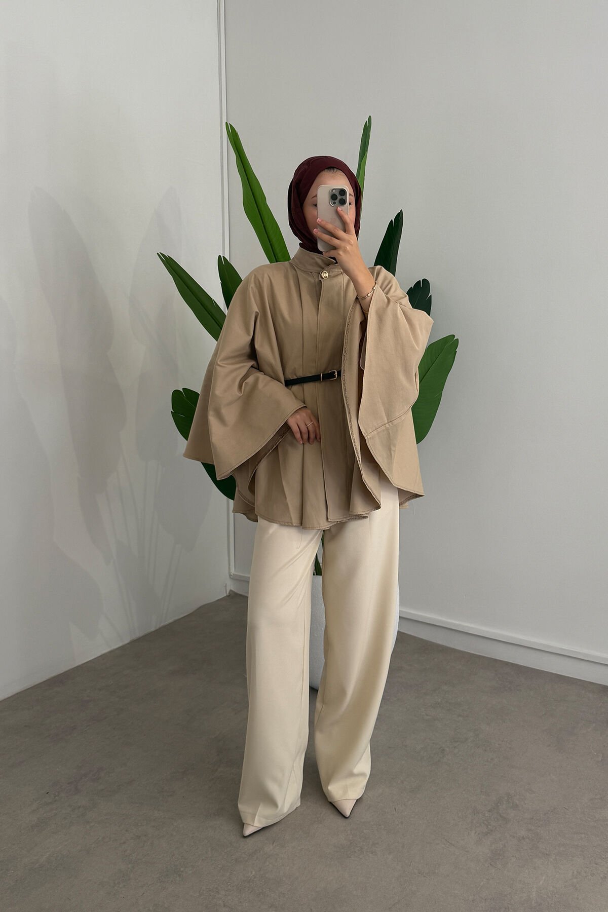 KEMERLİ GABARDİN PANÇO 9-52626 - BEJ