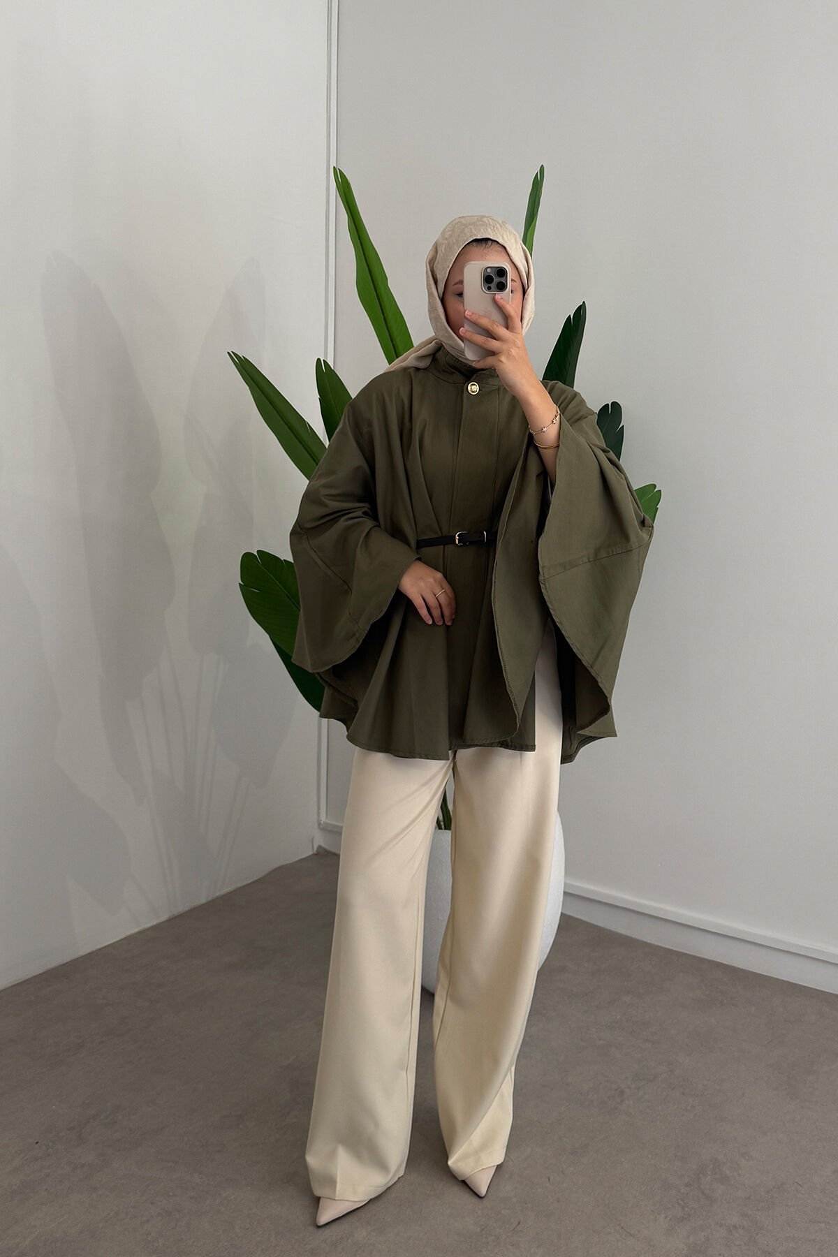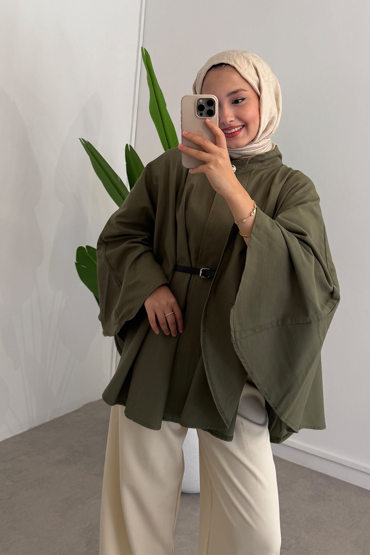 KEMERLİ GABARDİN PANÇO 9-52626 - HAKİ YEŞİL
