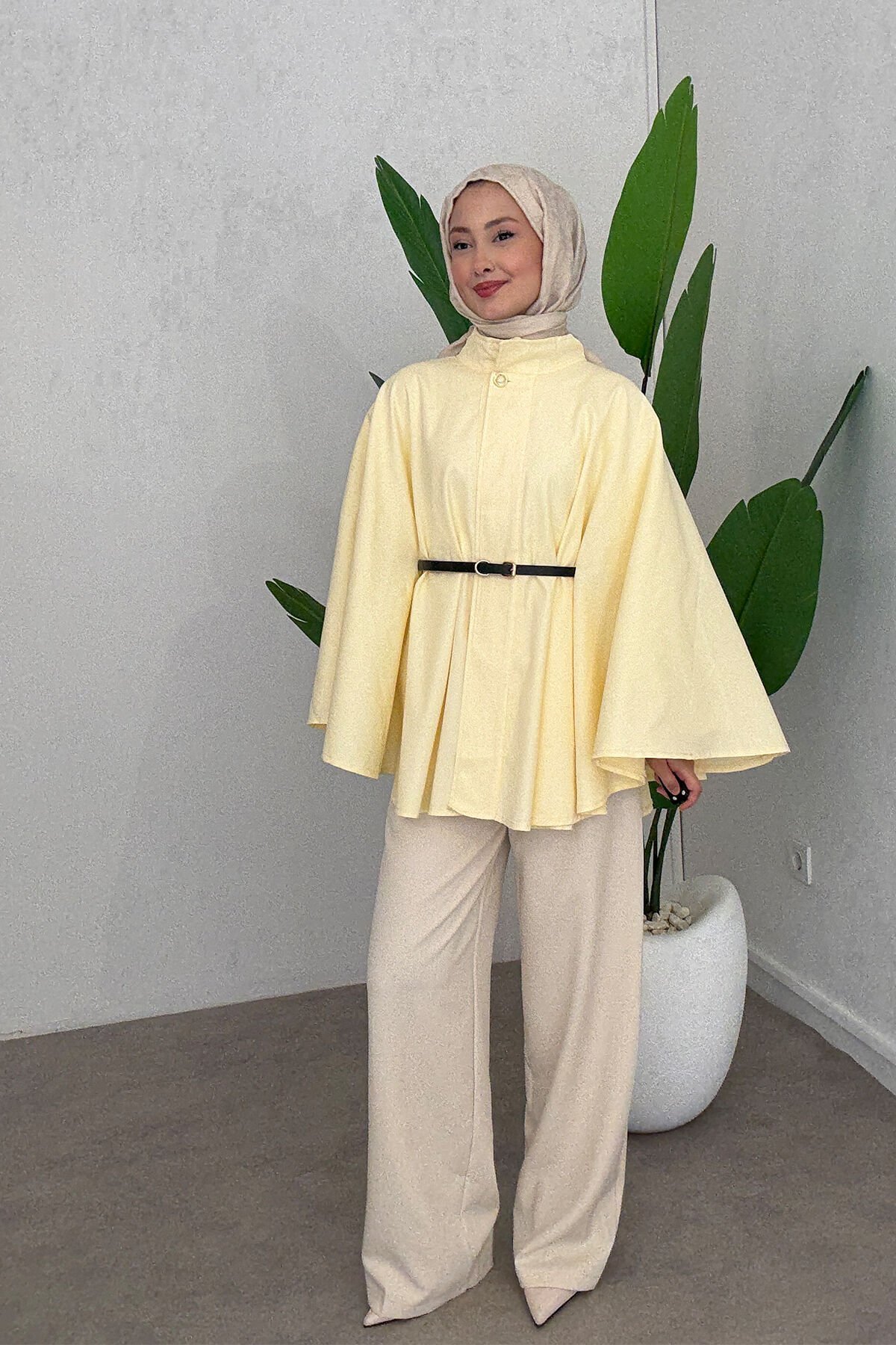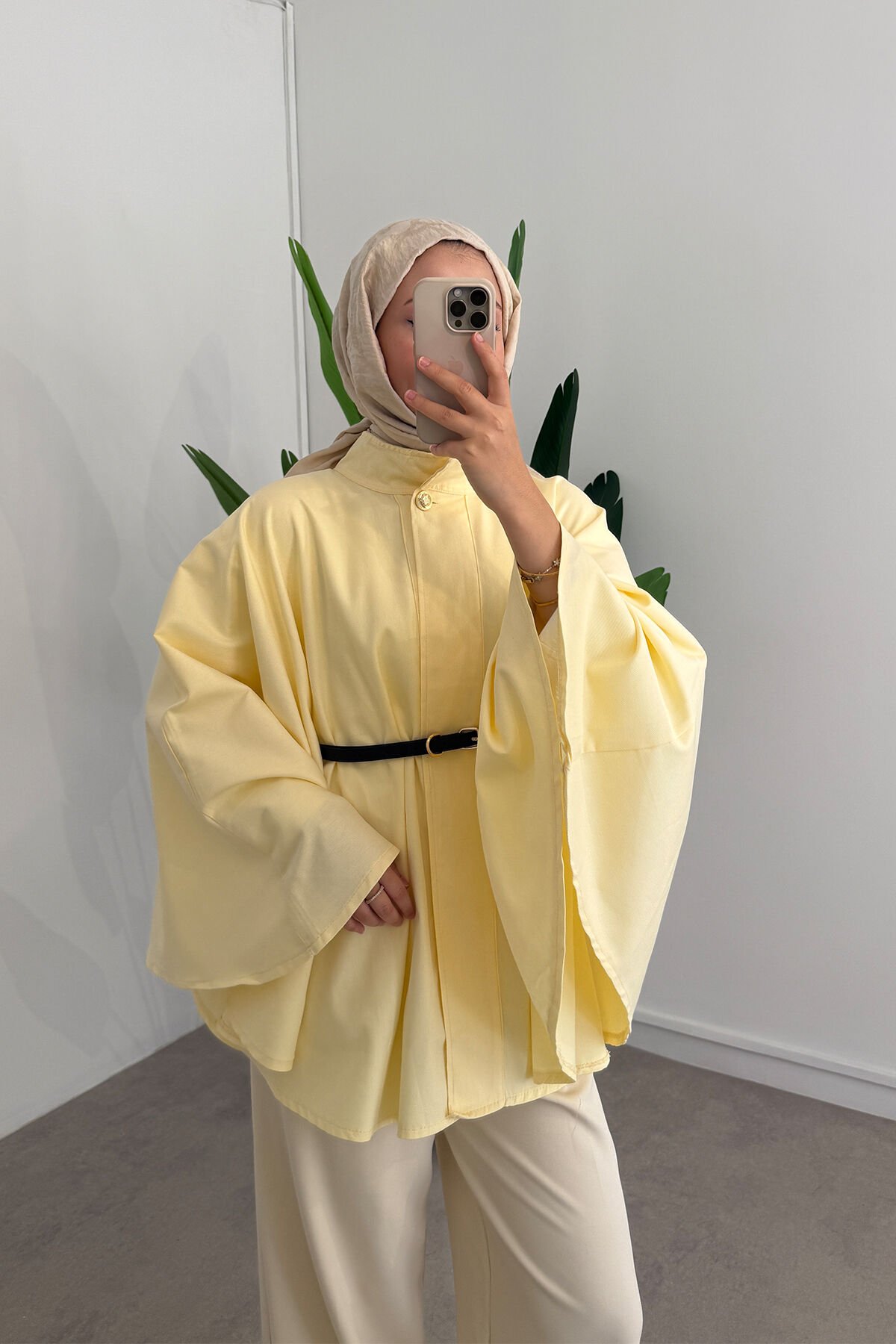 KEMERLİ GABARDİN PANÇO 9-52626 - SARI
