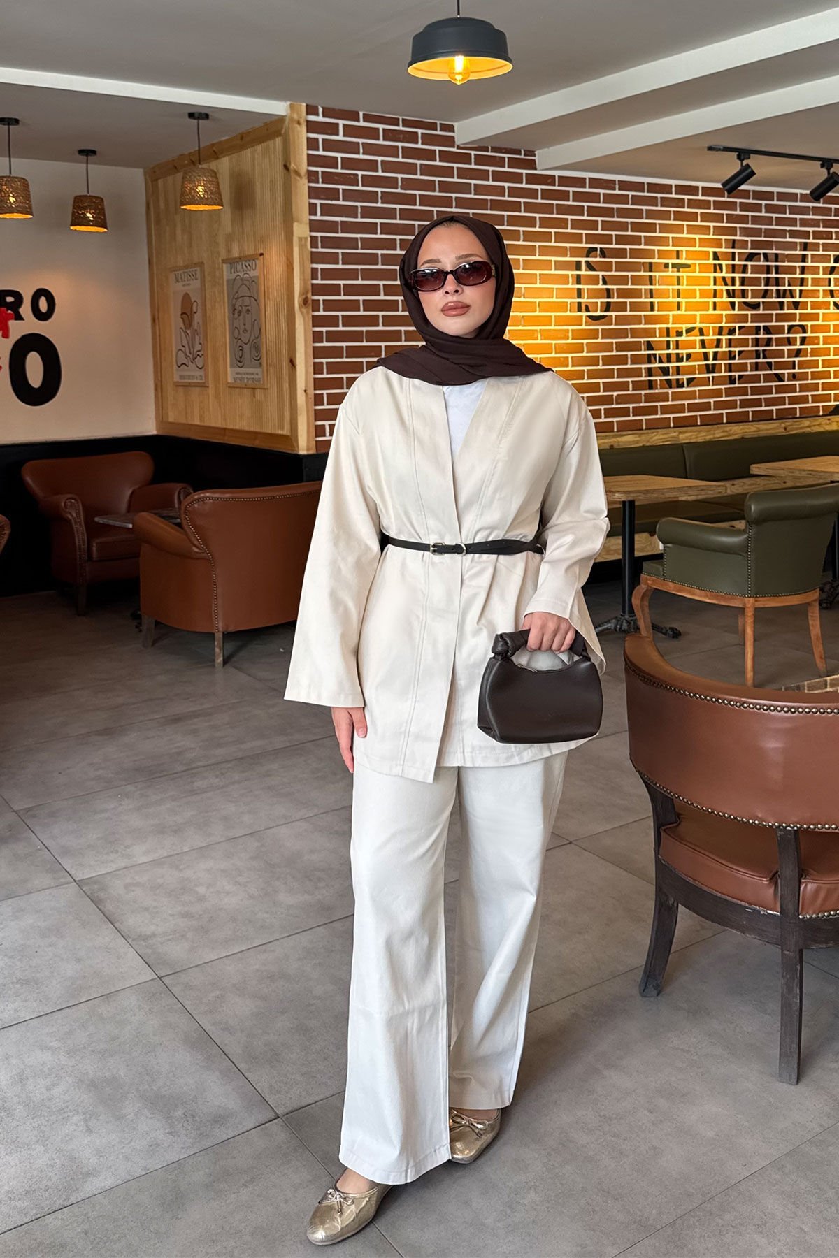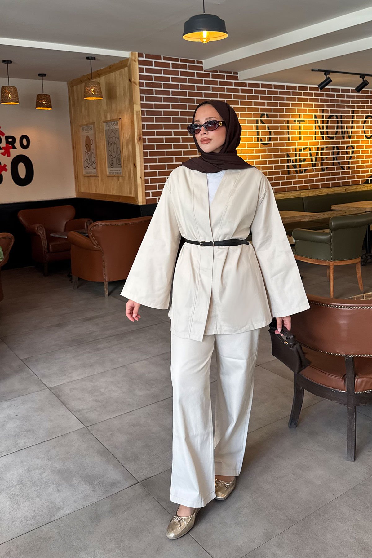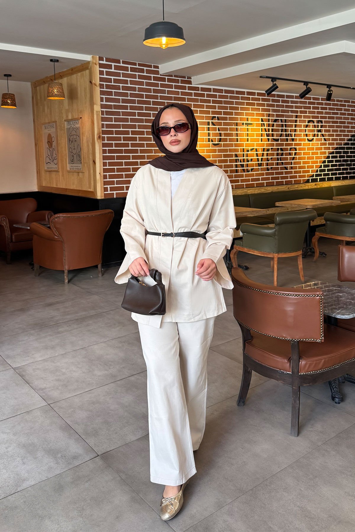 KEMERLİ GABARDİN TAKIM 9-52811 - BEJ