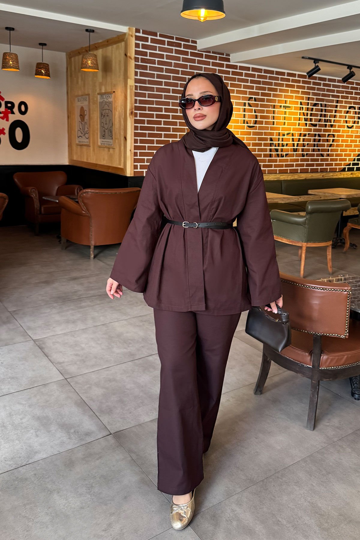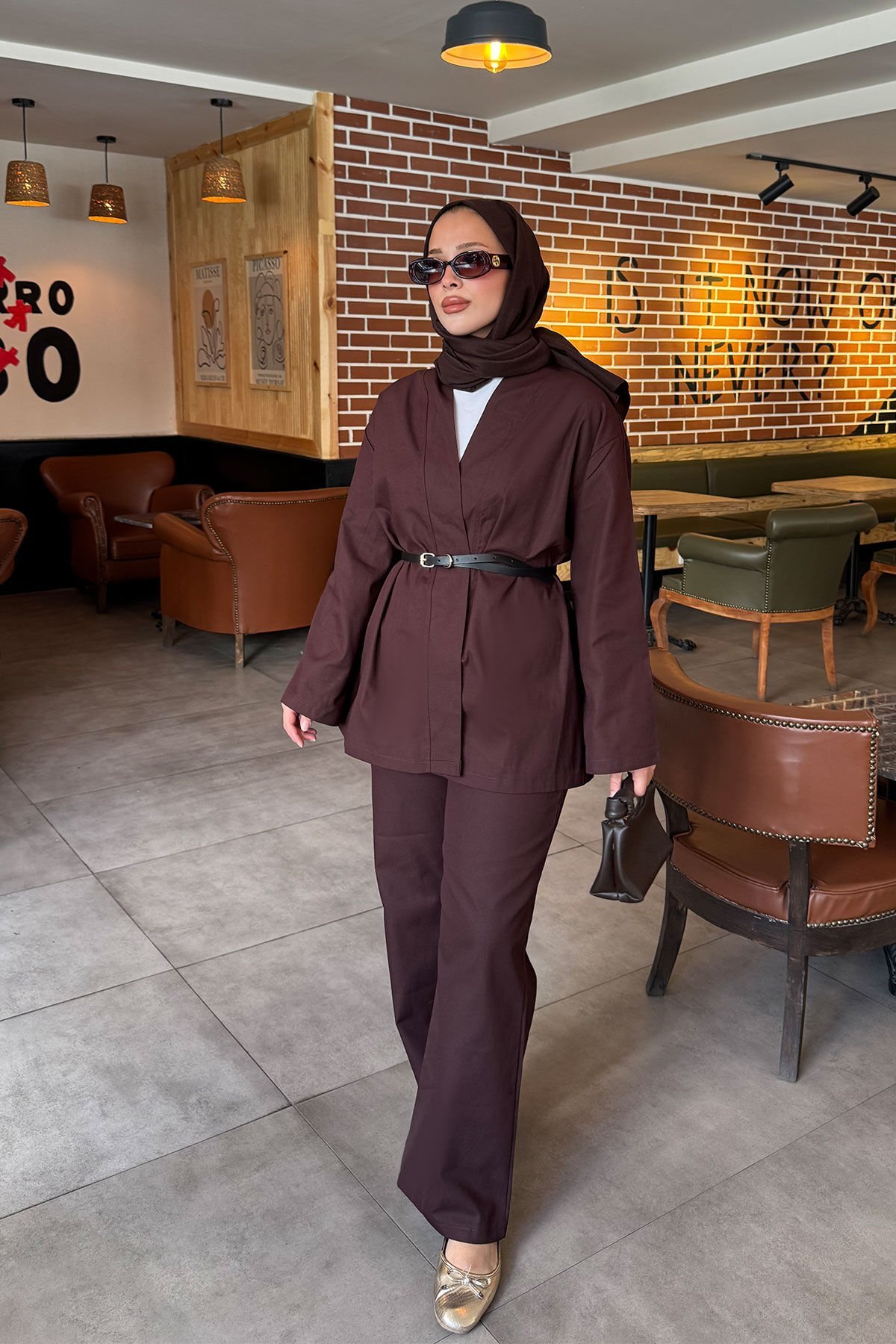 KEMERLİ GABARDİN TAKIM 9-52811 - KAHVERENGİ