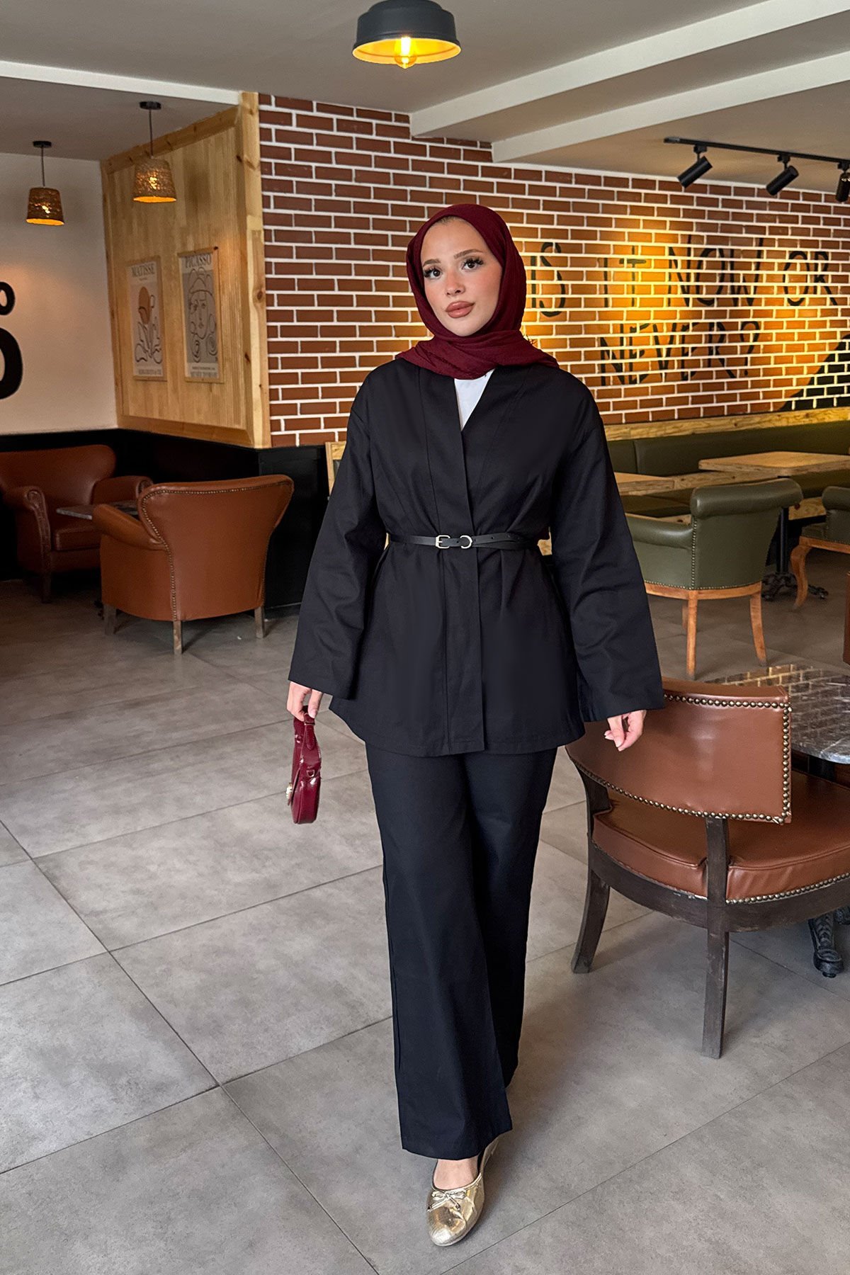 KEMERLİ GABARDİN TAKIM 9-52811 - SİYAH