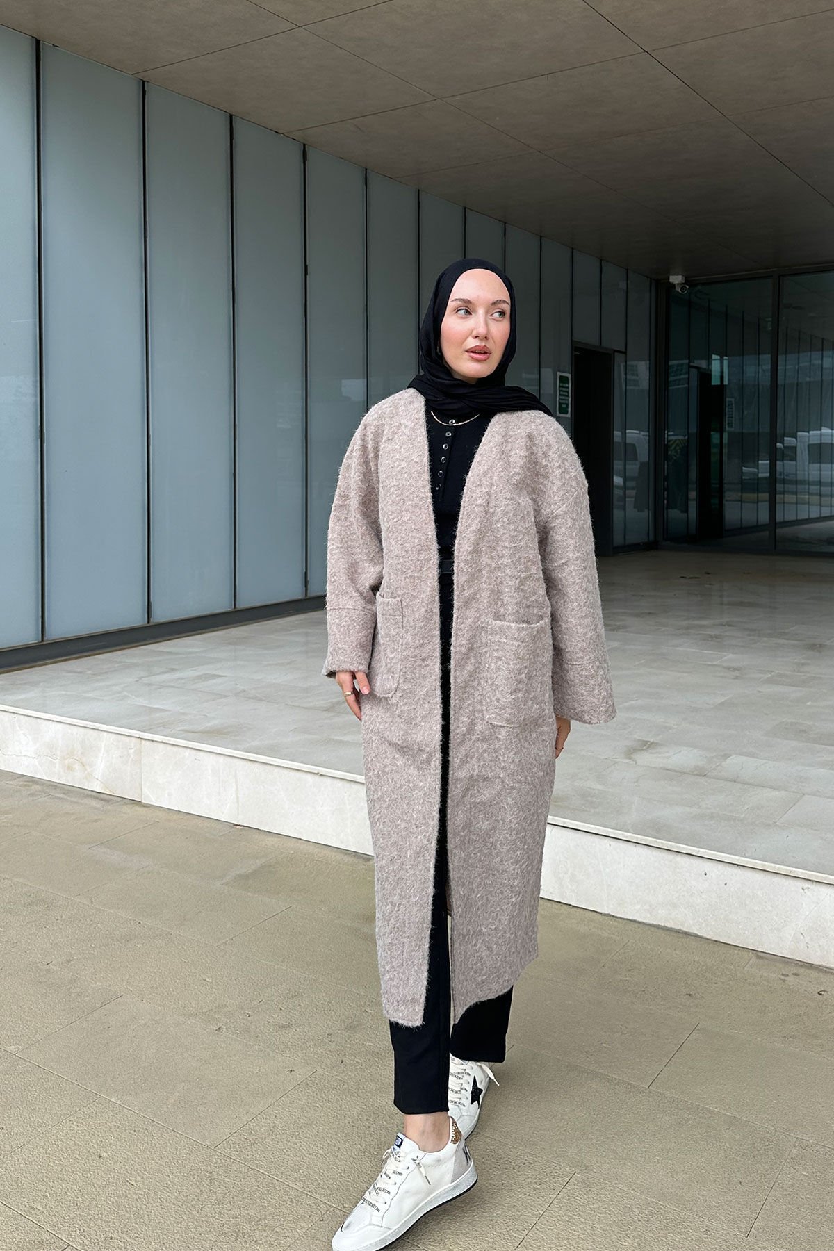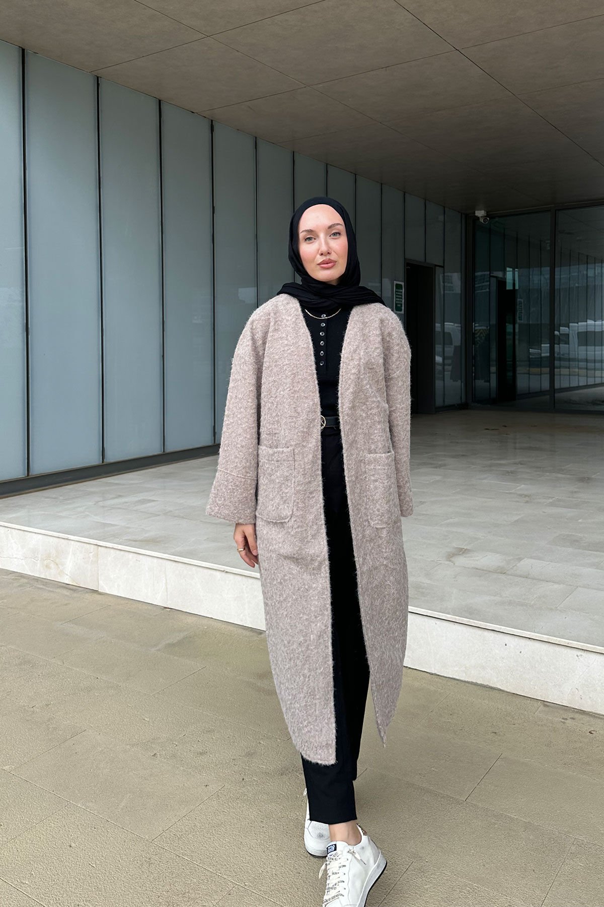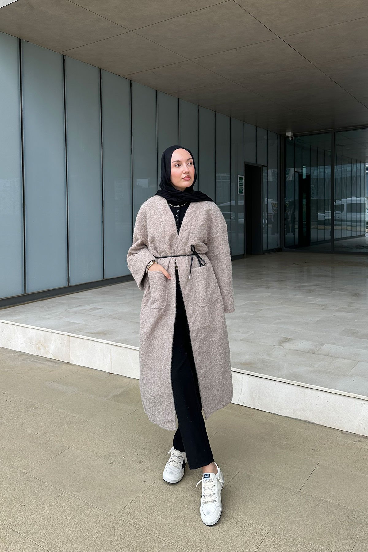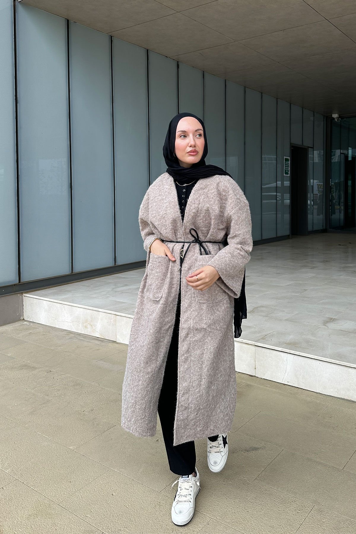 - Oversize kesim,Astarsız, kemerli kaşe kaban.