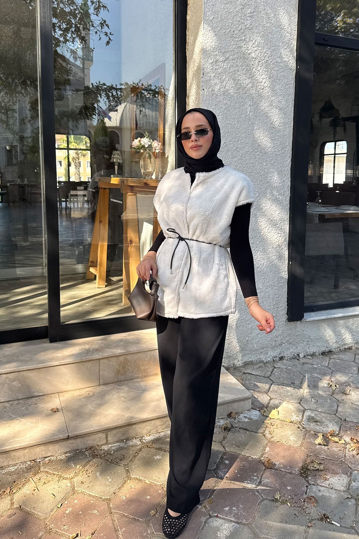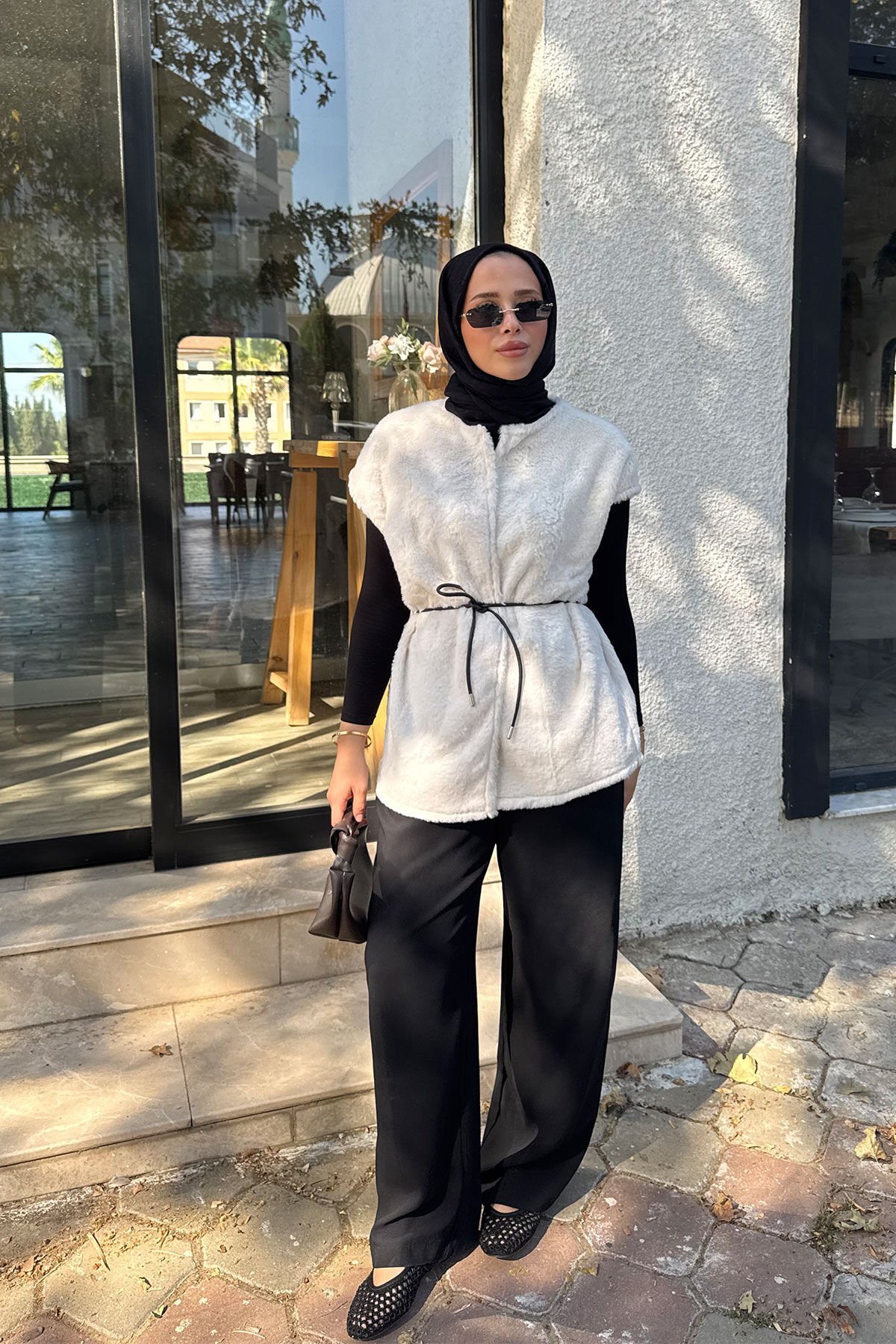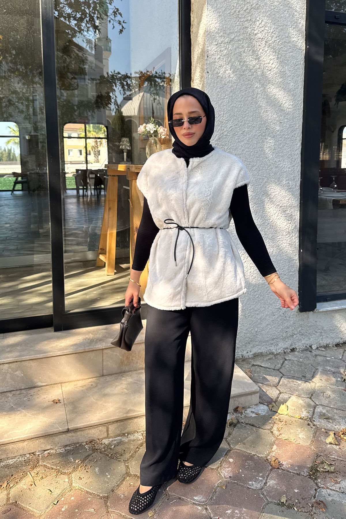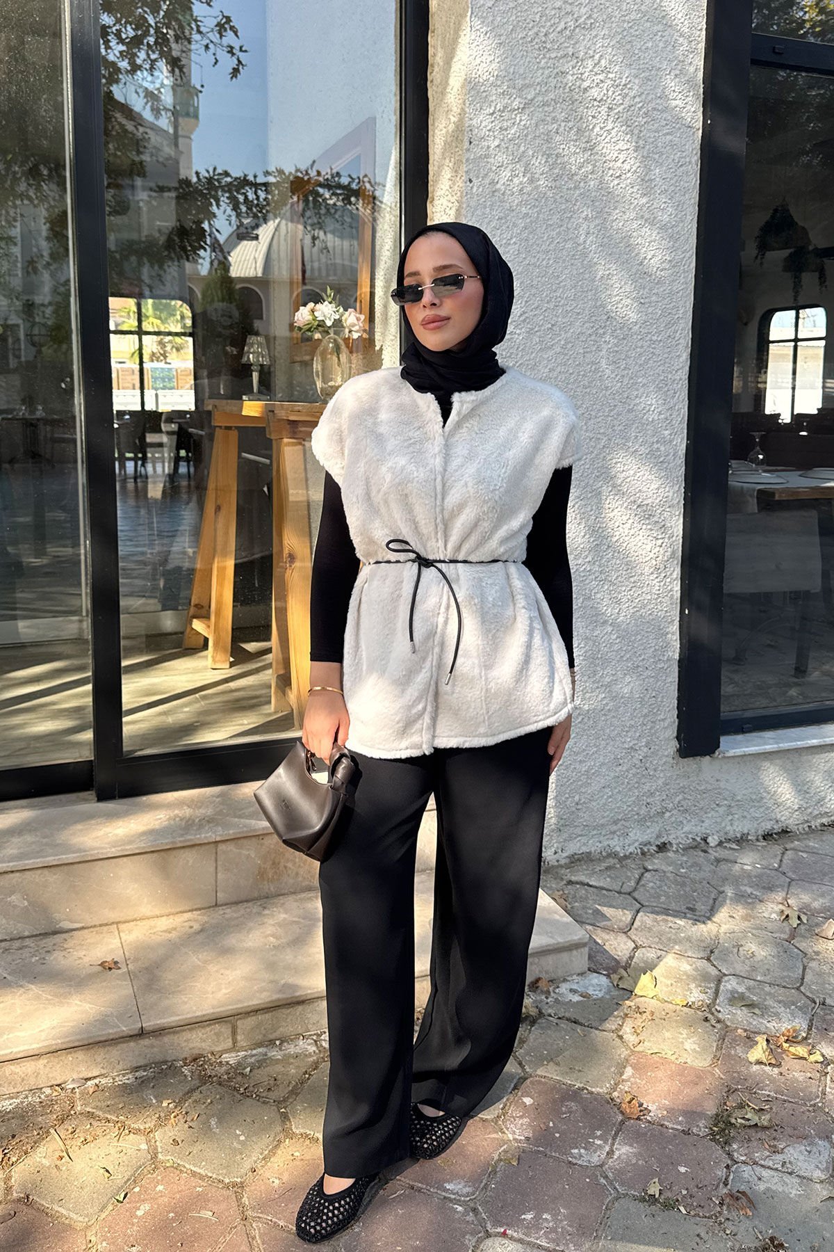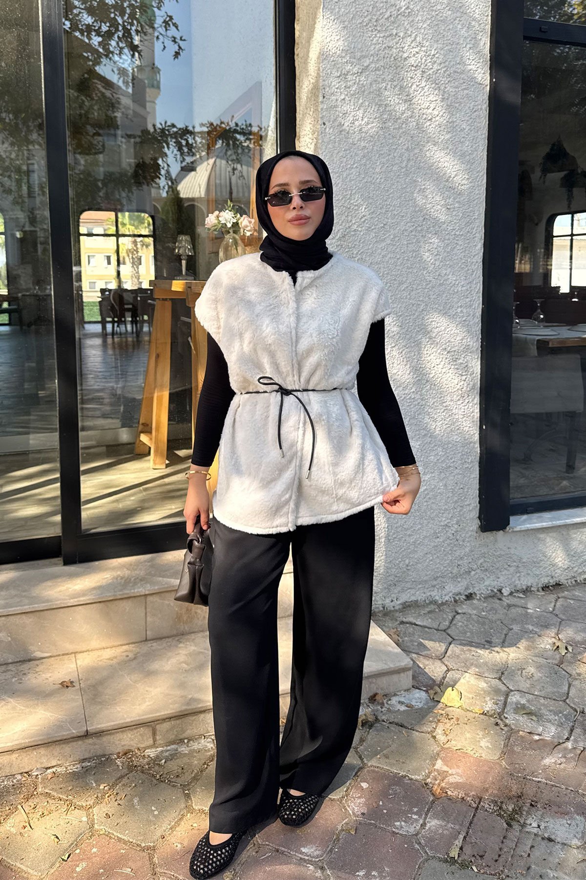 KEMERLİ KÜRK YELEK 9-52601 - EKRU