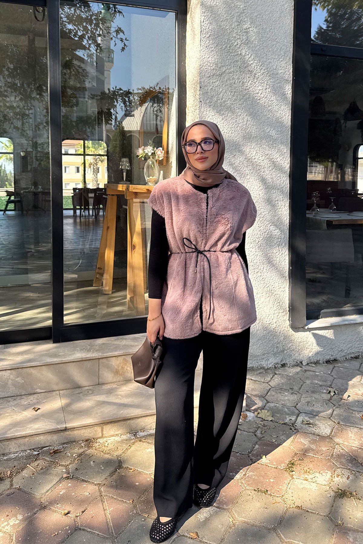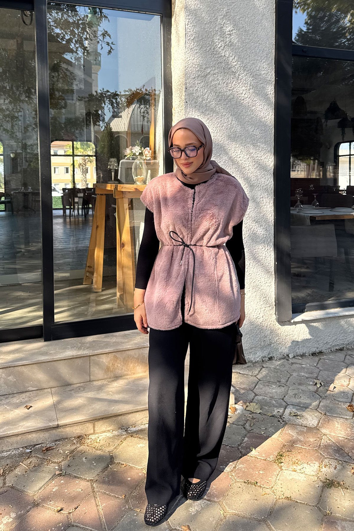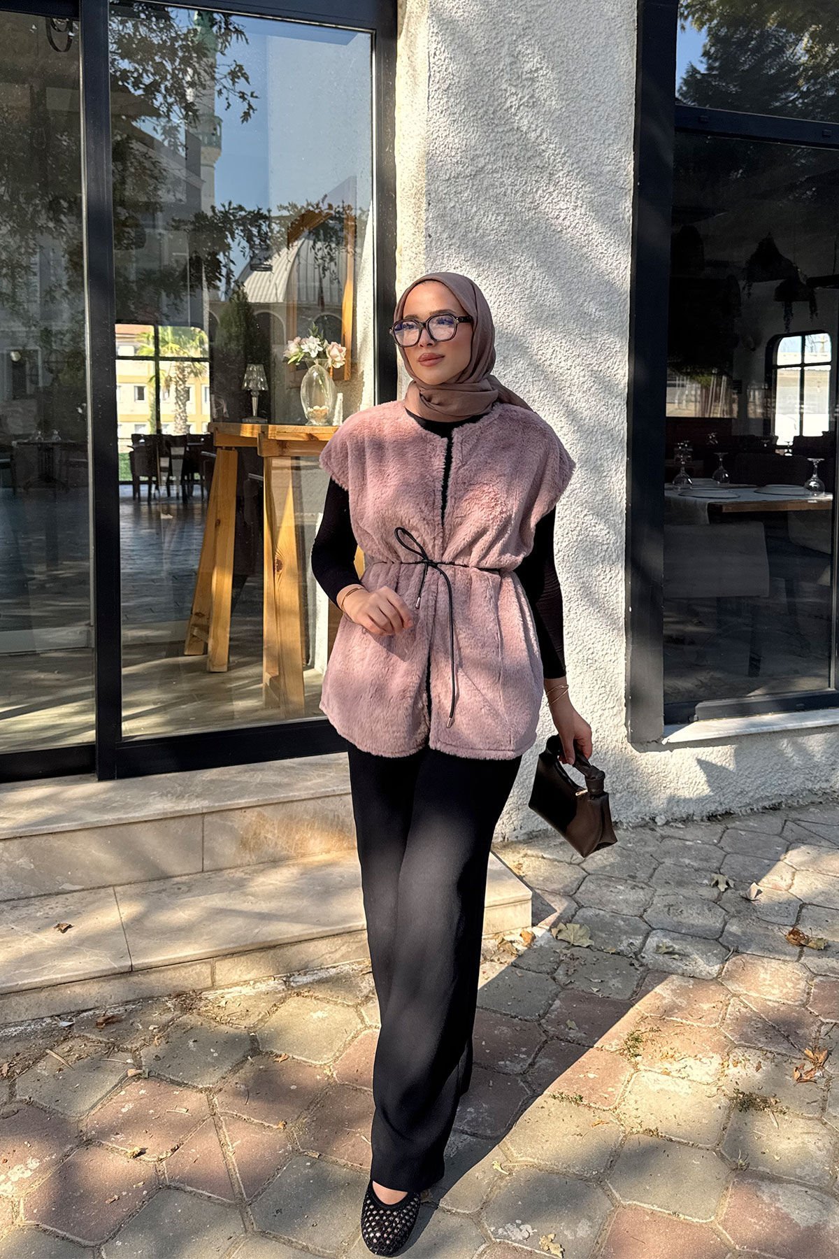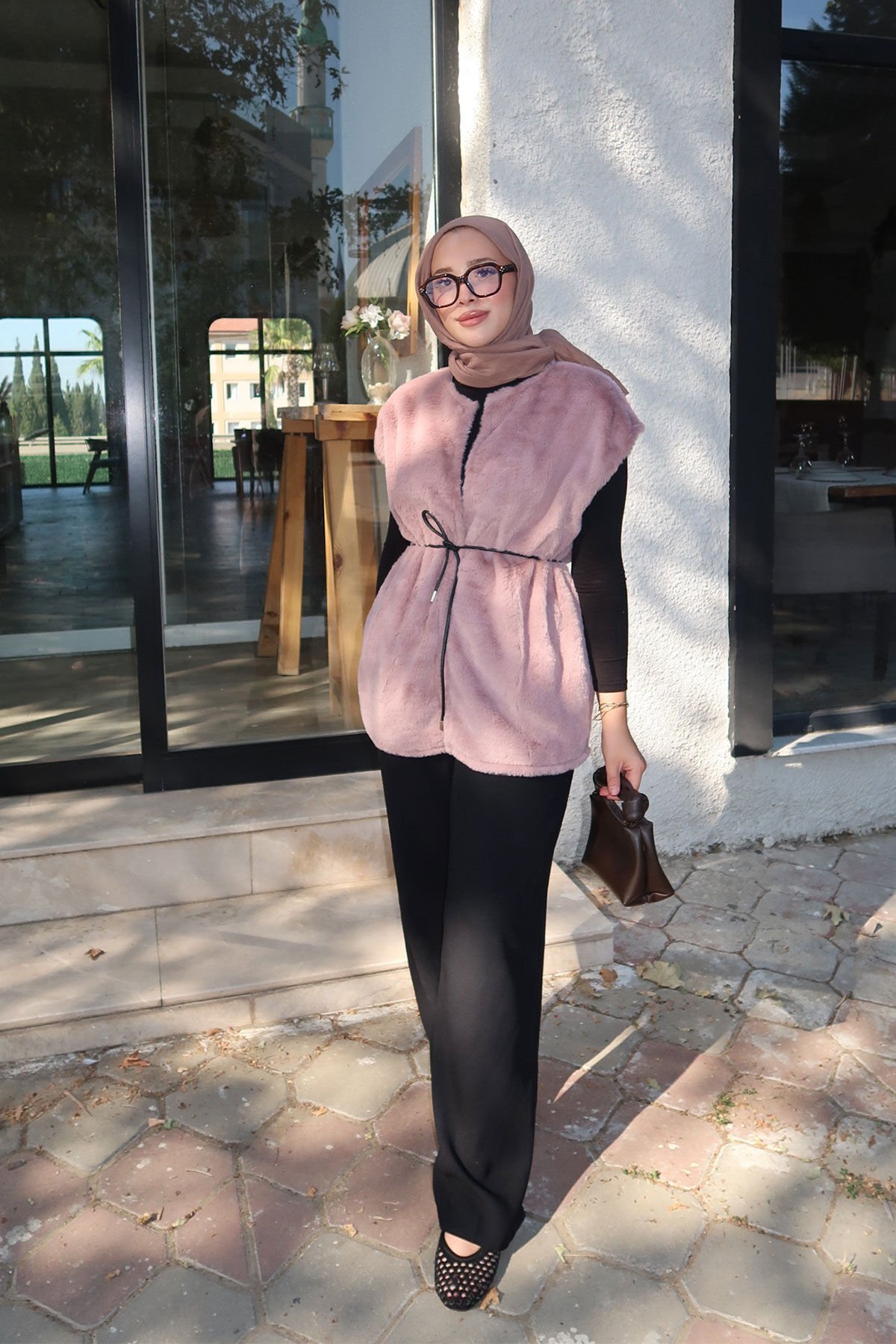 KEMERLİ KÜRK YELEK 9-52601 - GÜL