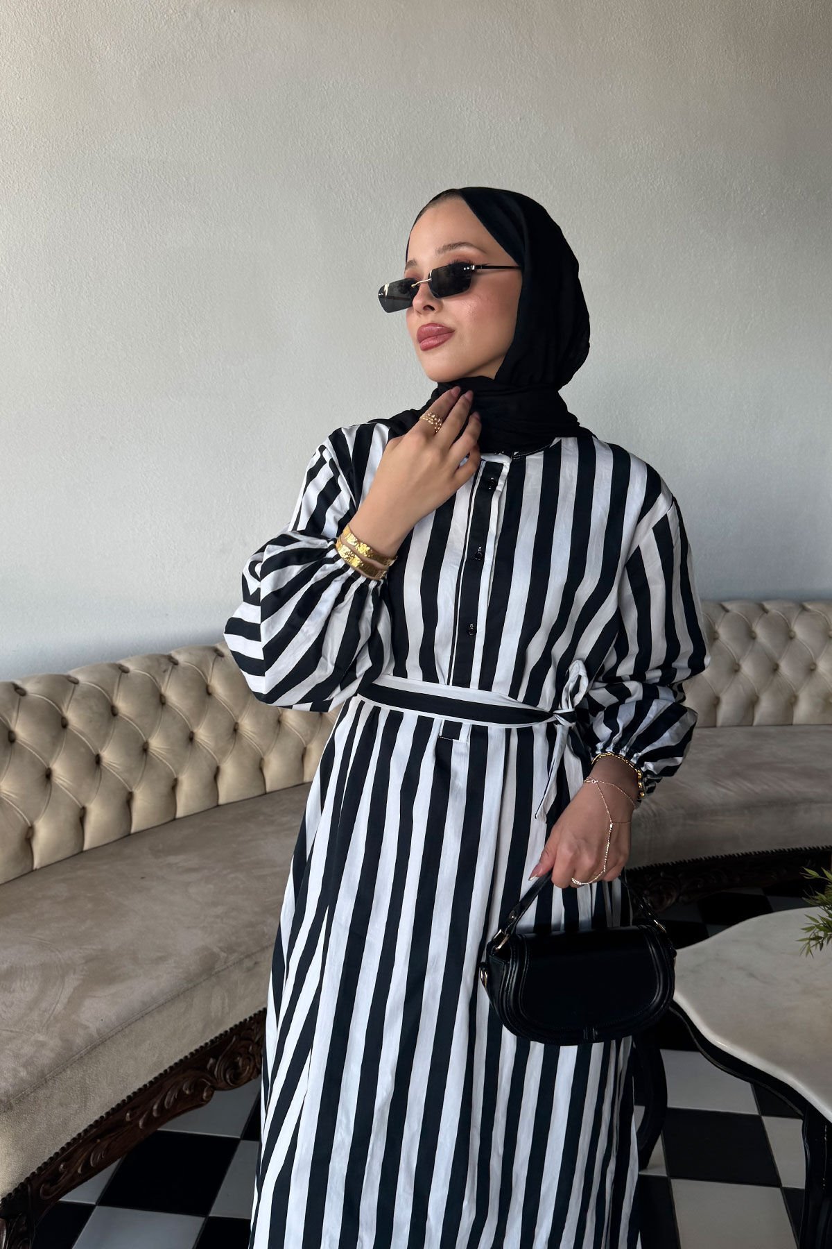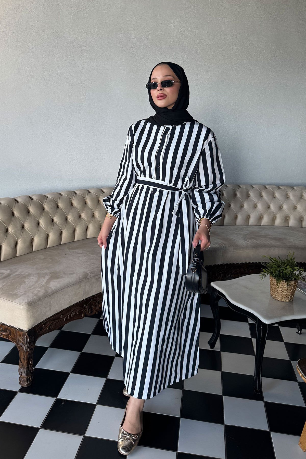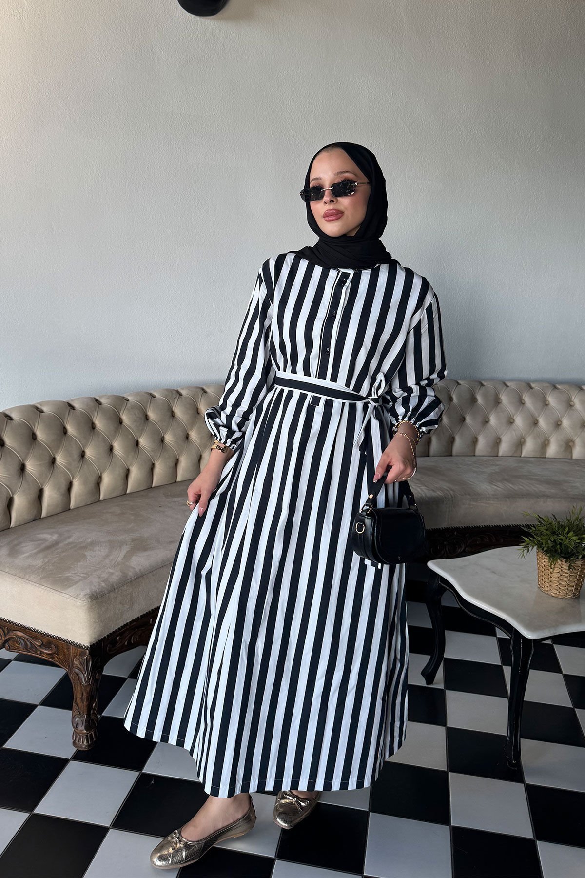KEMERLİ UZUN ELBİSE 9-51524 - SİYAH
