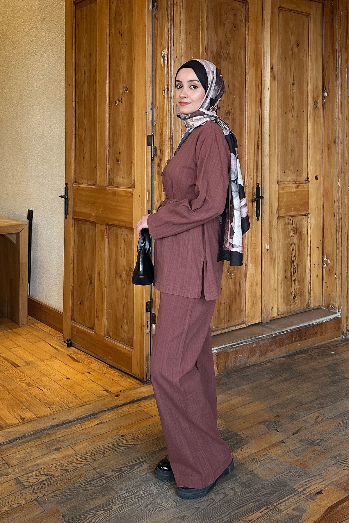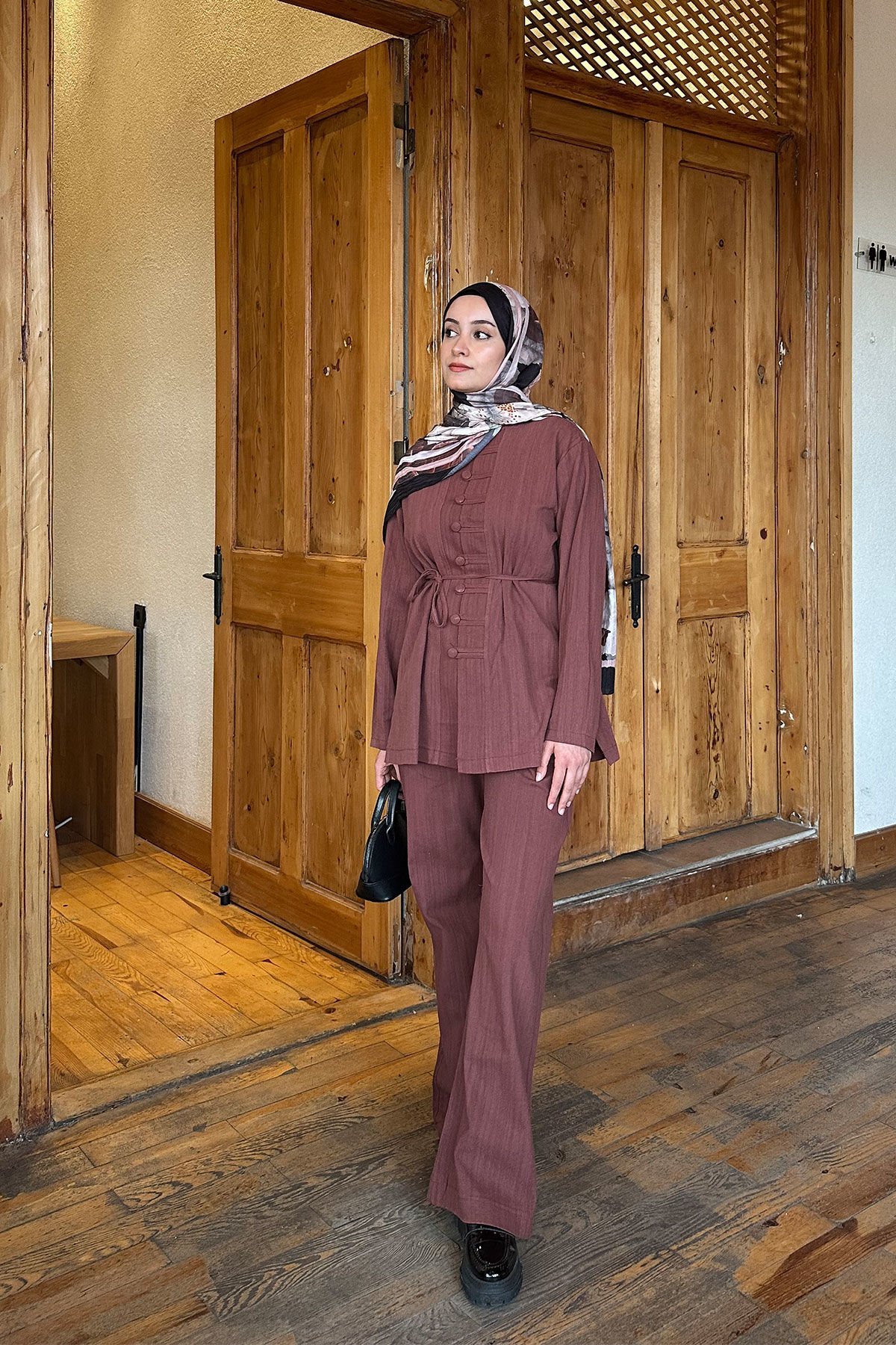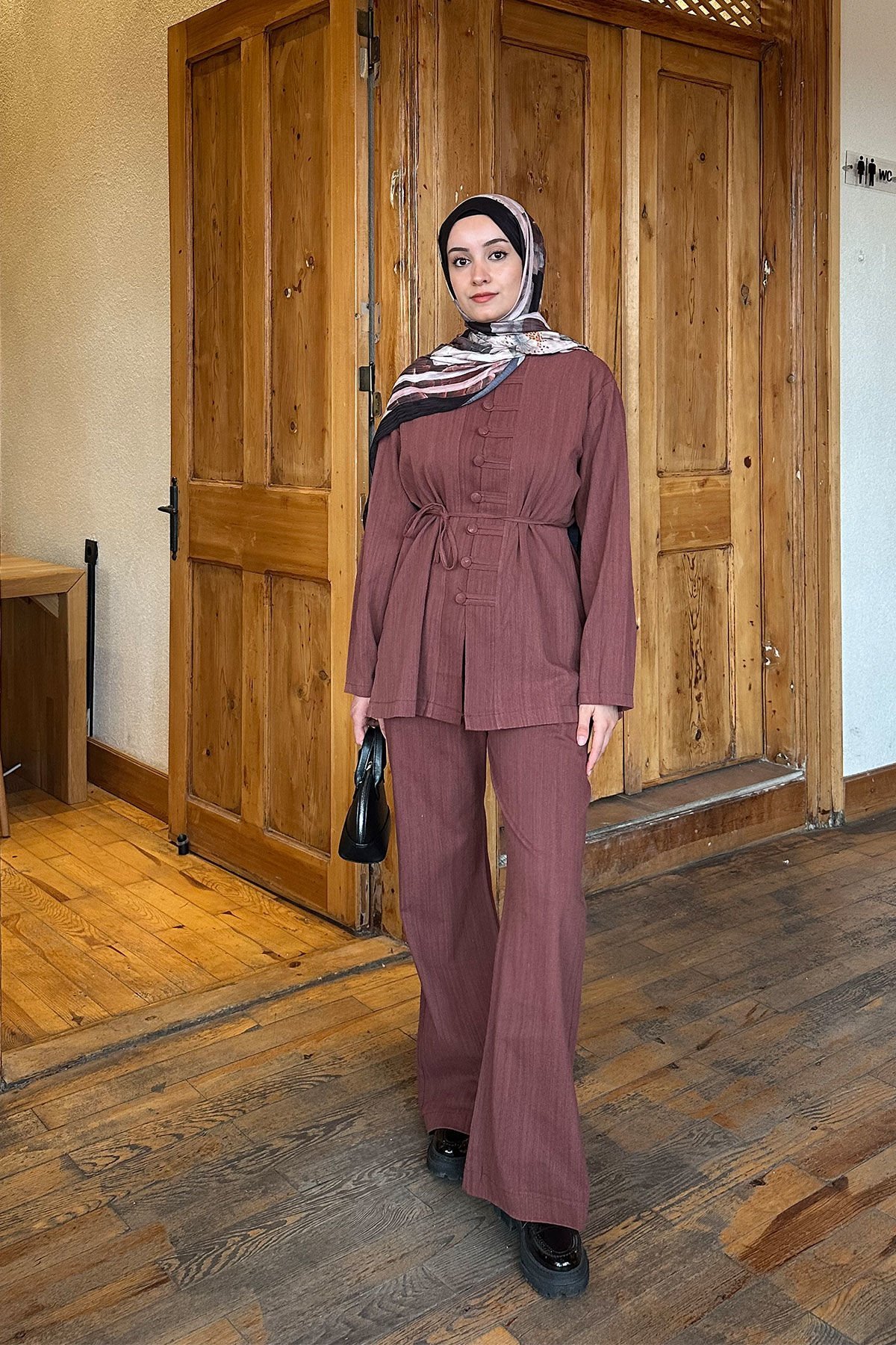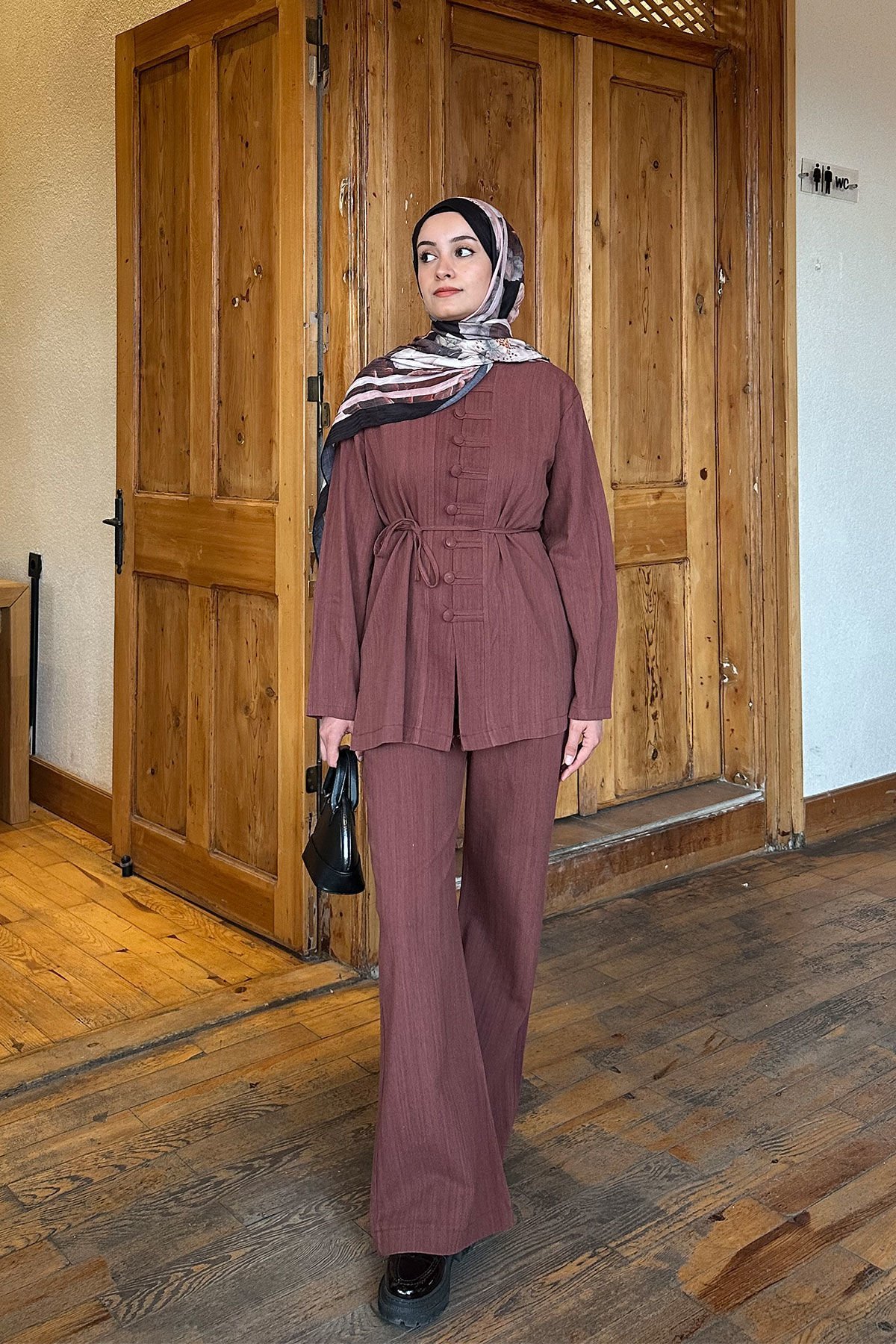 KETEN DÜGMELİ TAKIM 31-3318 - BORDO