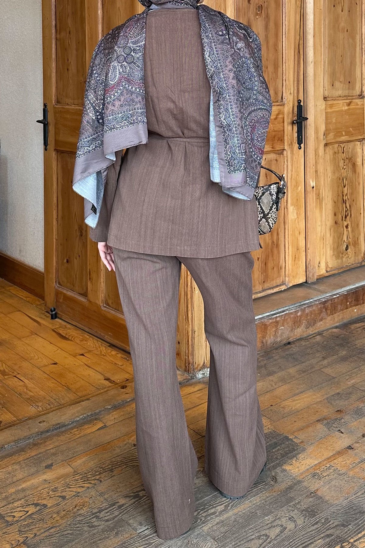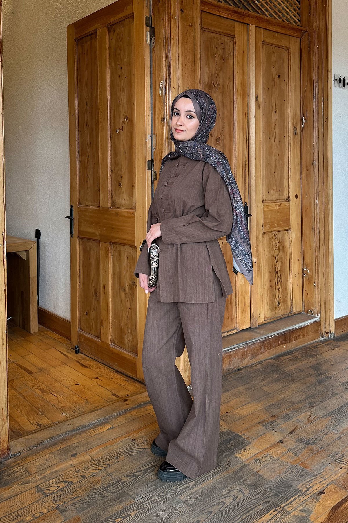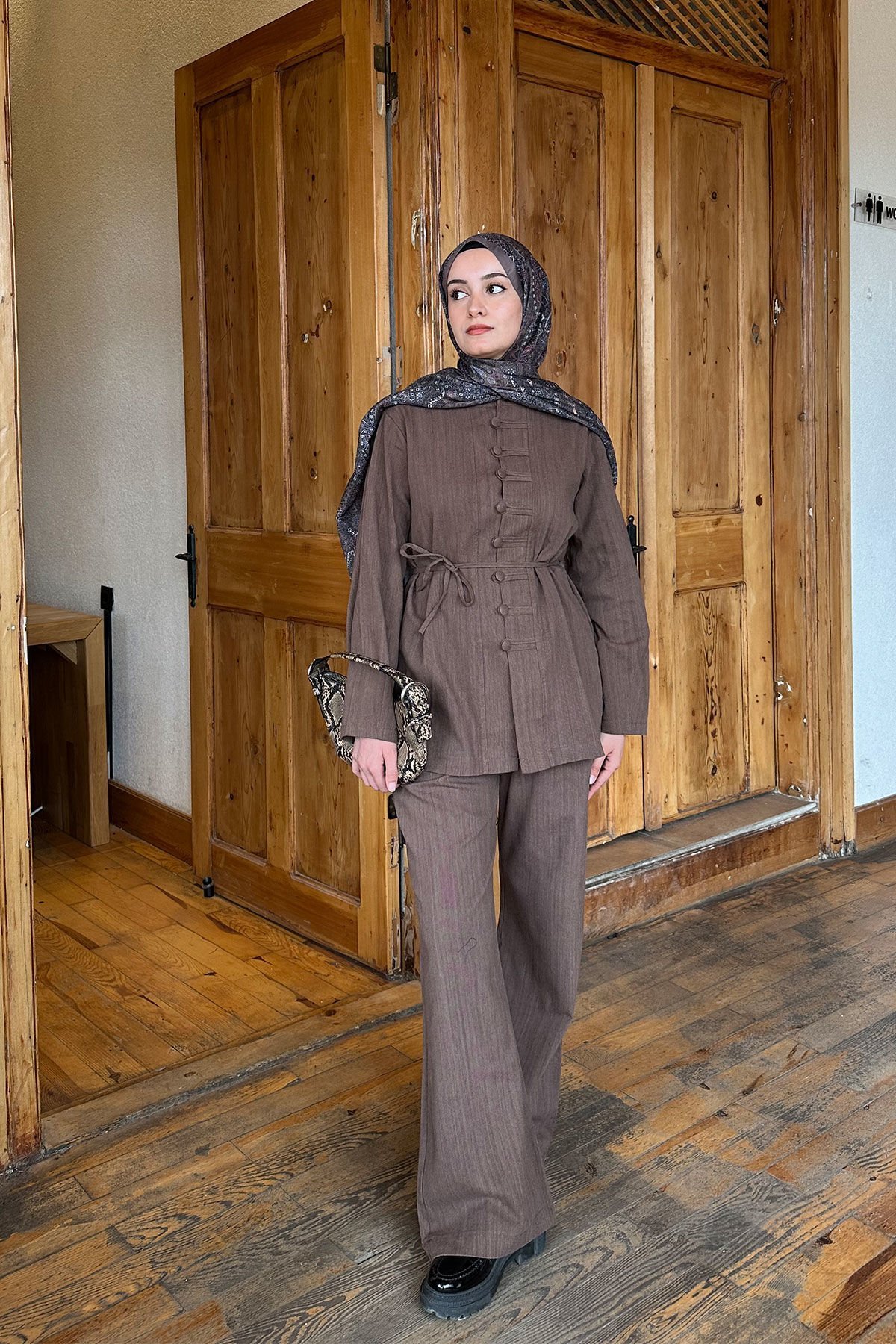 KETEN DÜGMELİ TAKIM 31-3318 - KAHVERENGİ