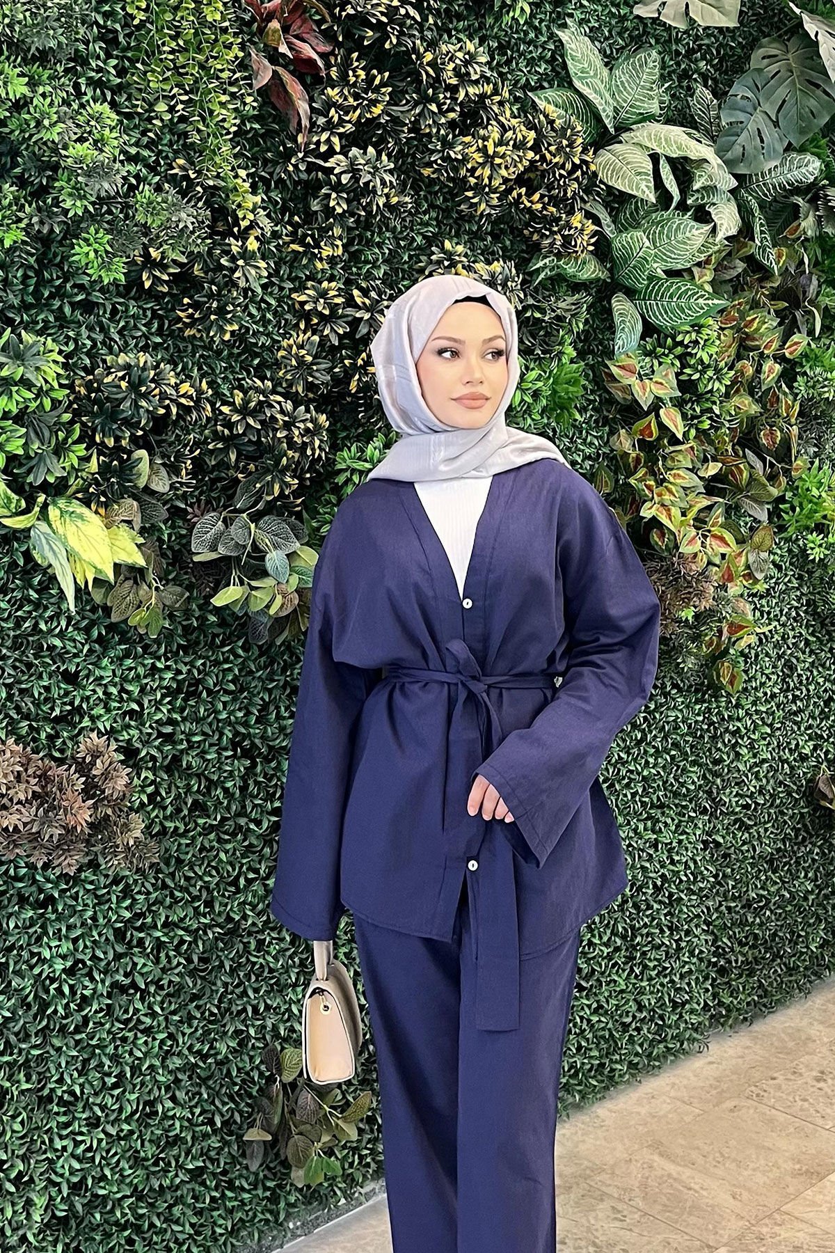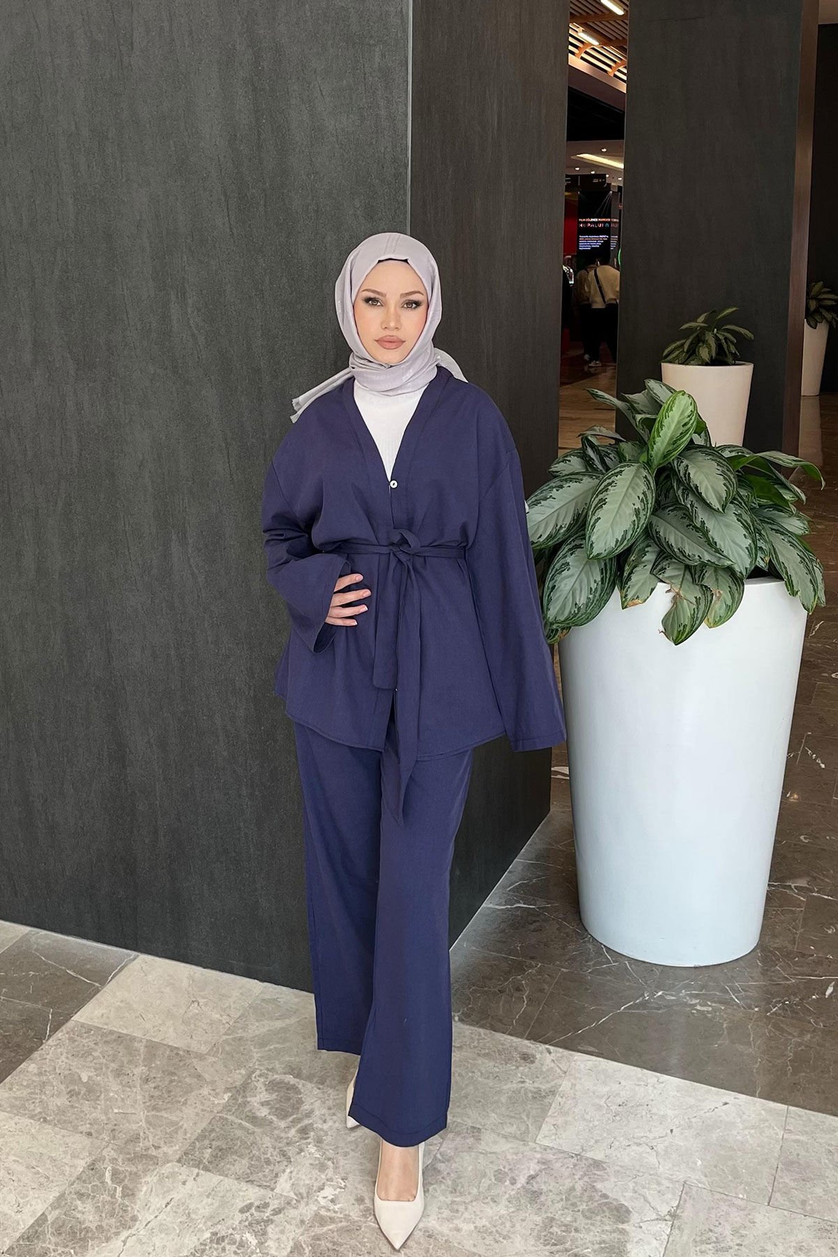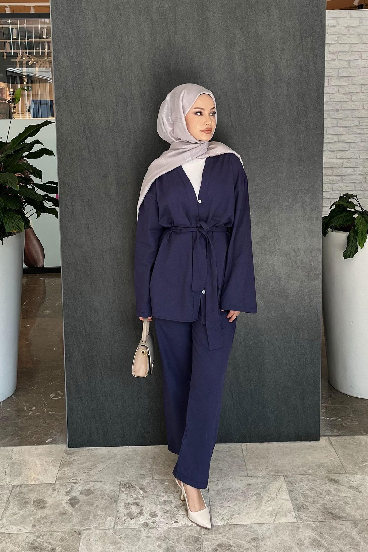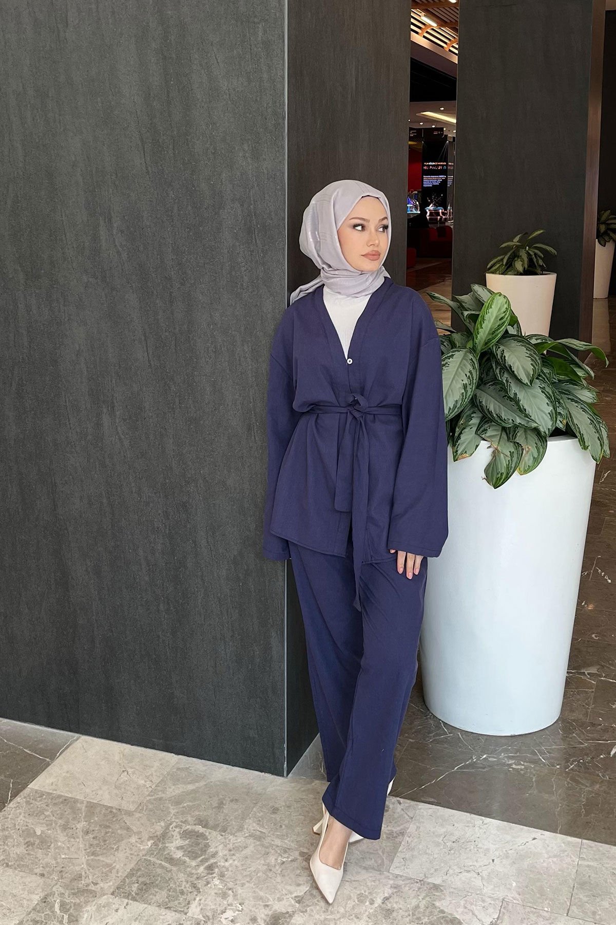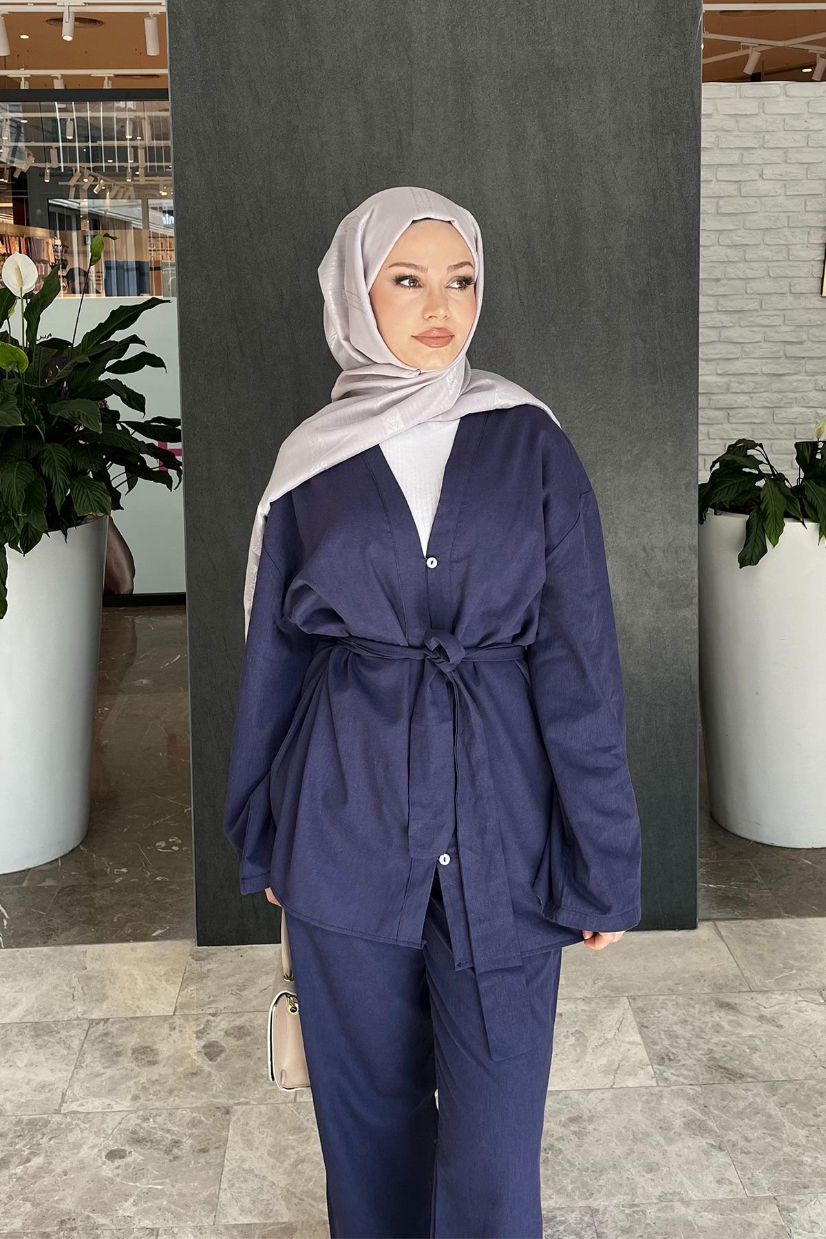 KİMONO KEMERLİ TAKIM 9-51818 - LACİVERT