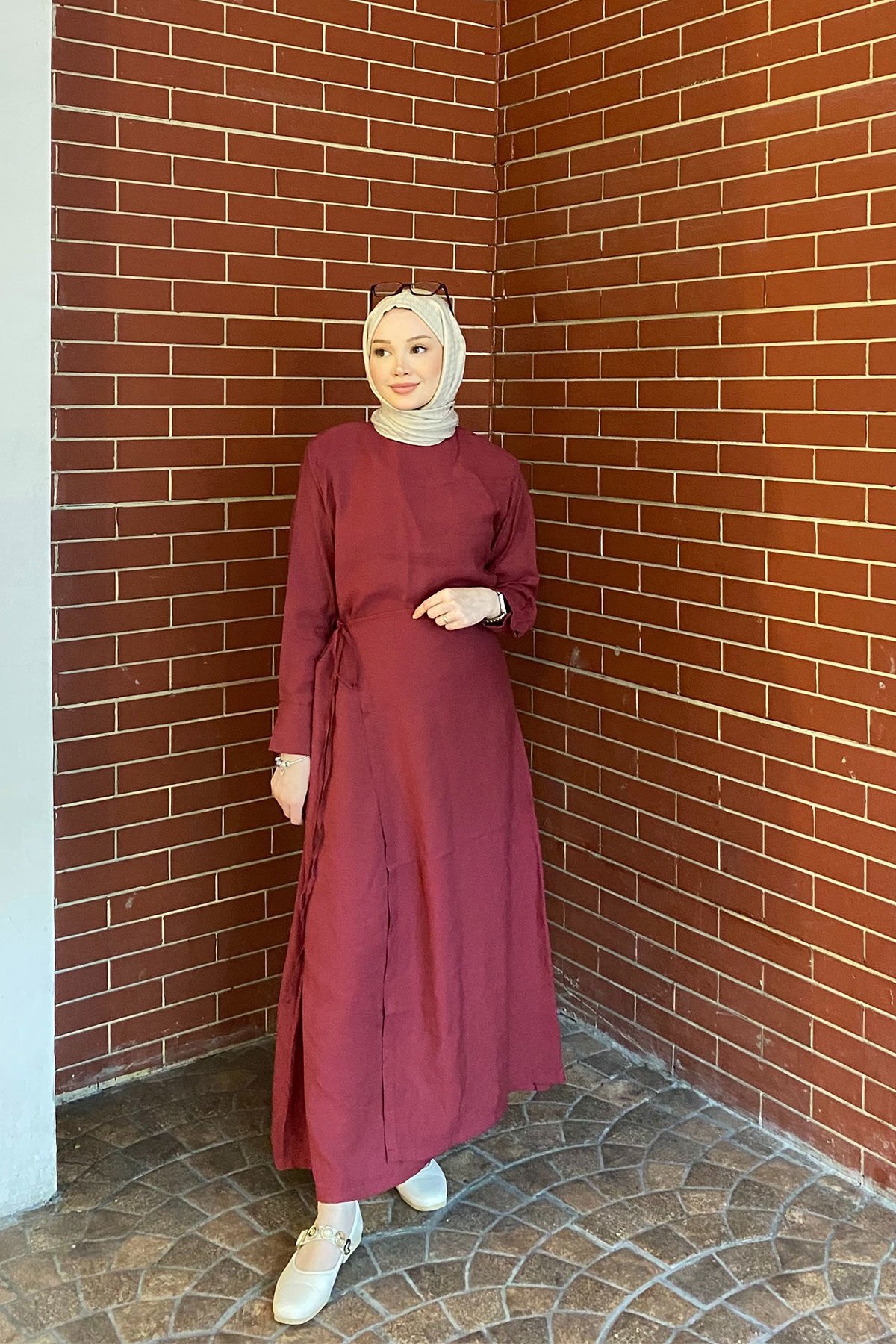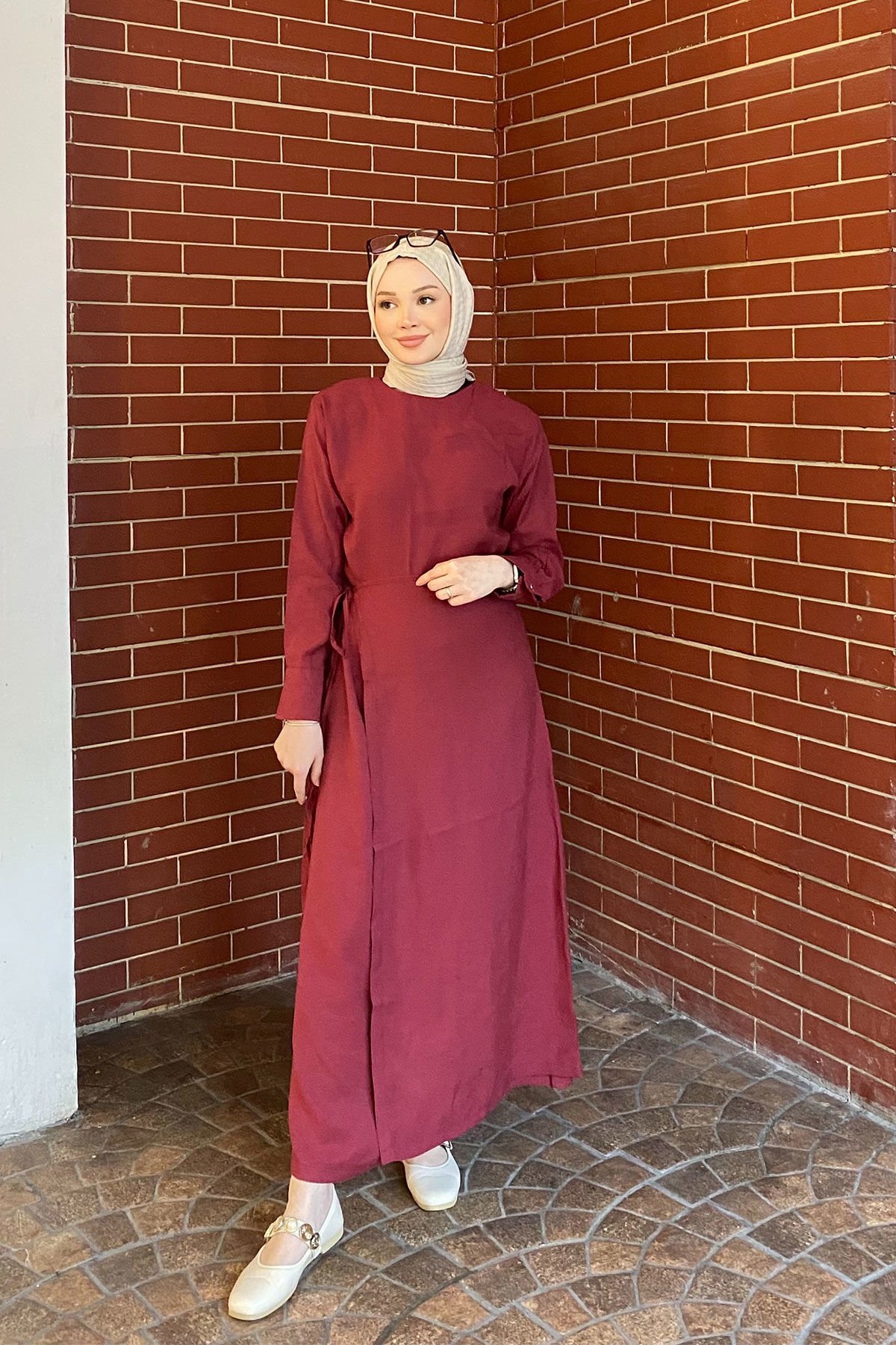 METALİZE DÜGMELİ ELBİSE 9-51509 - BORDO