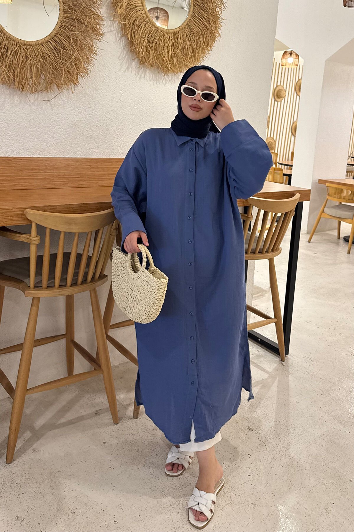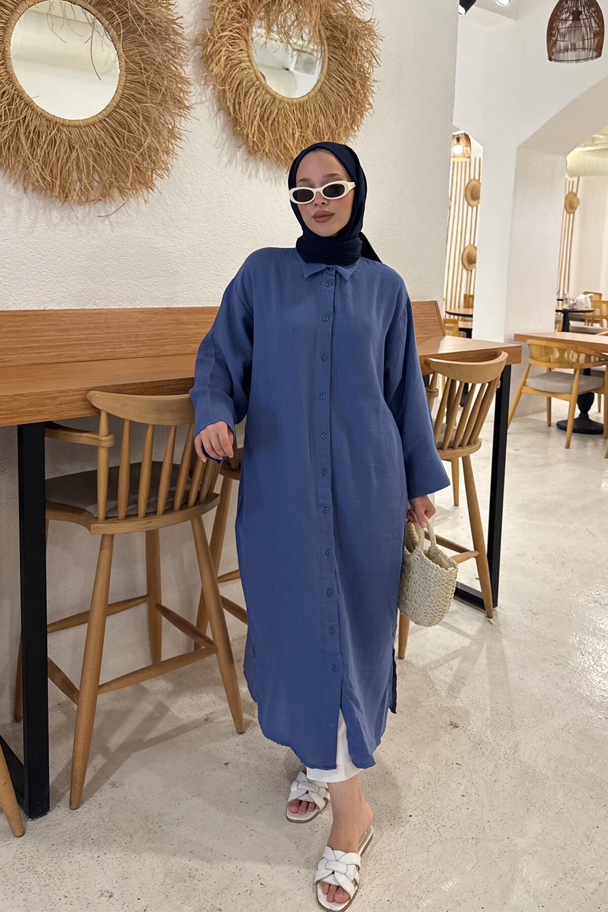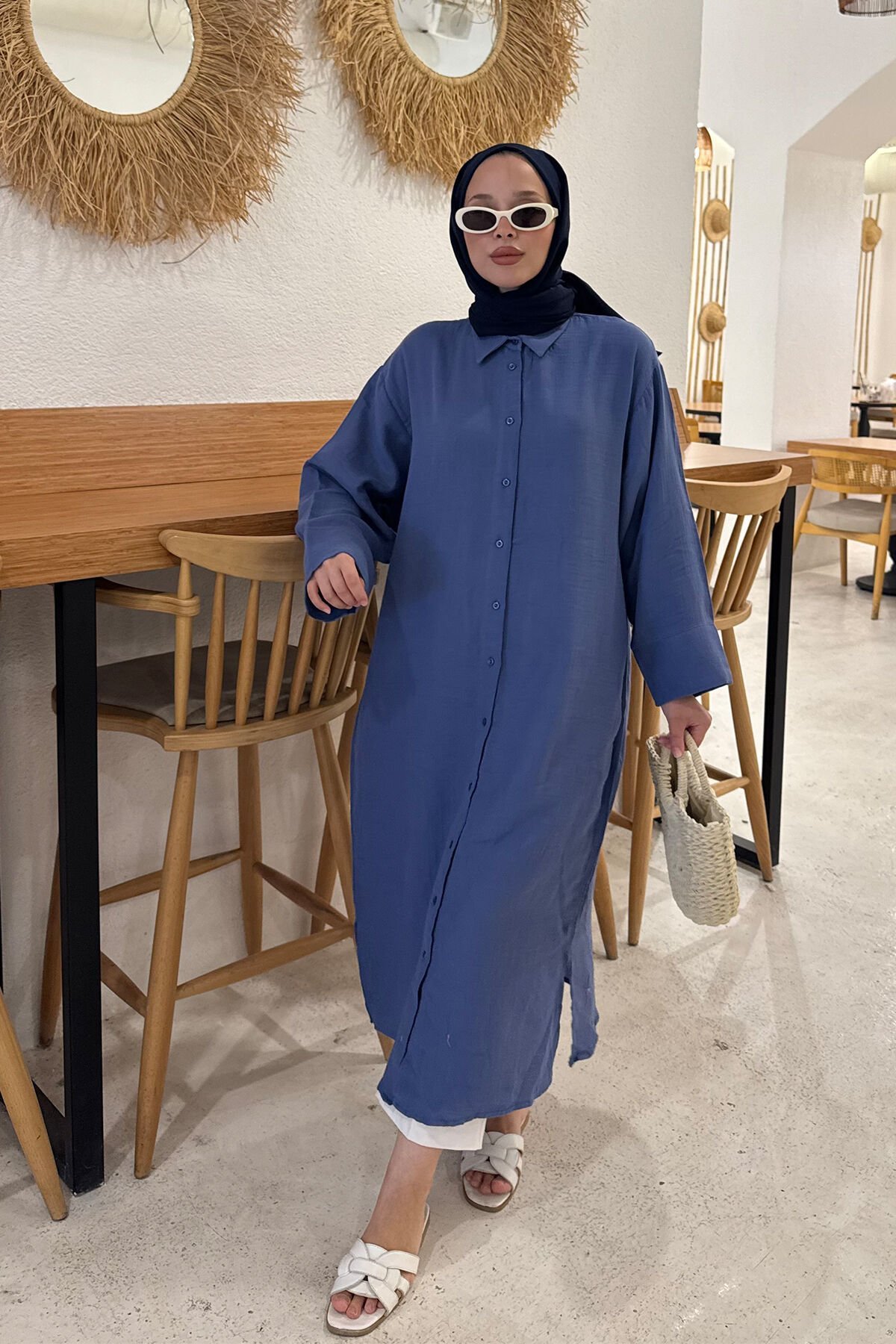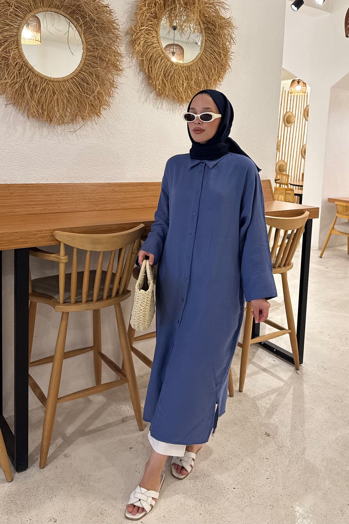 MÜSLİN GÖMLEK ELBİSE 9-51527 -LACİVERT