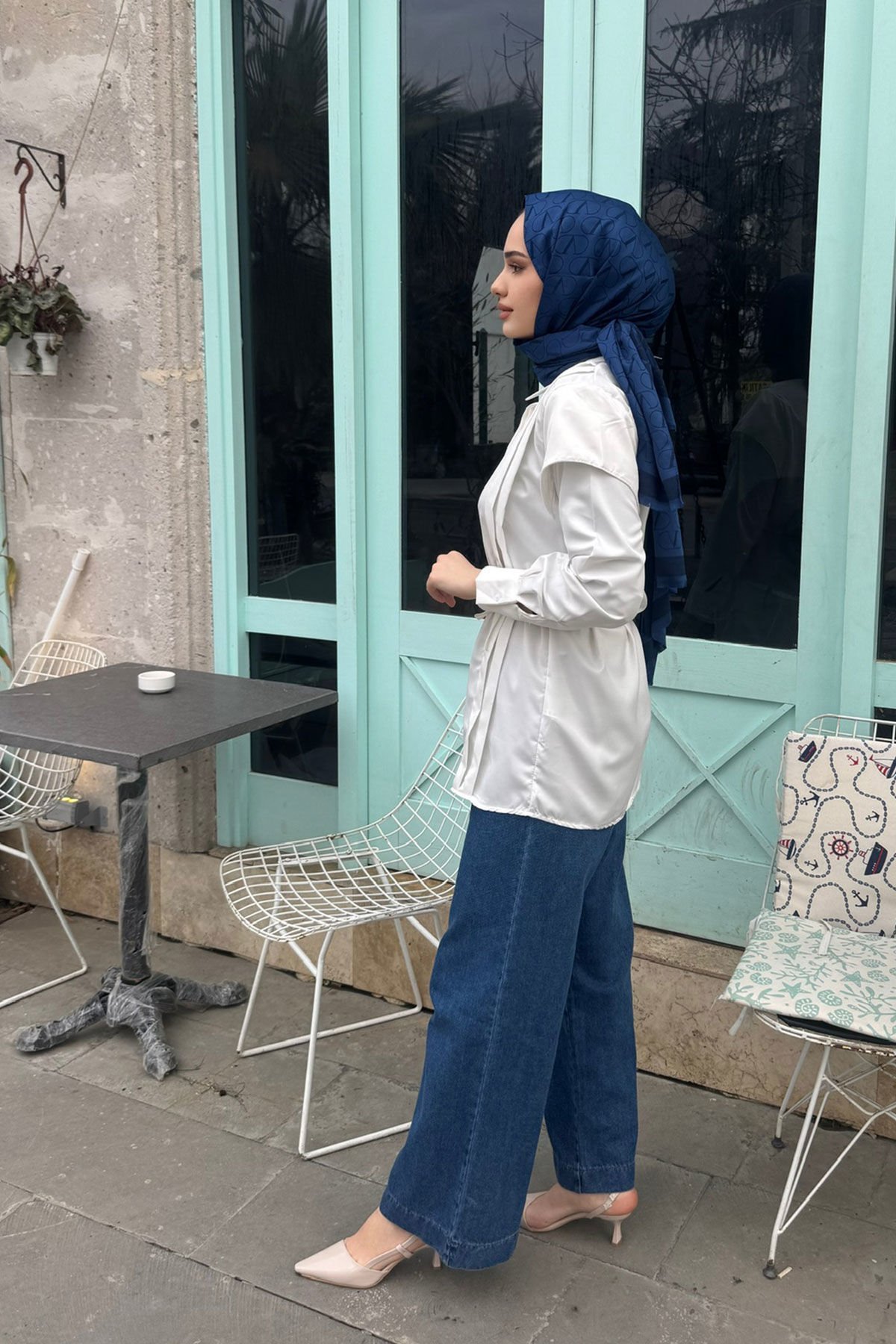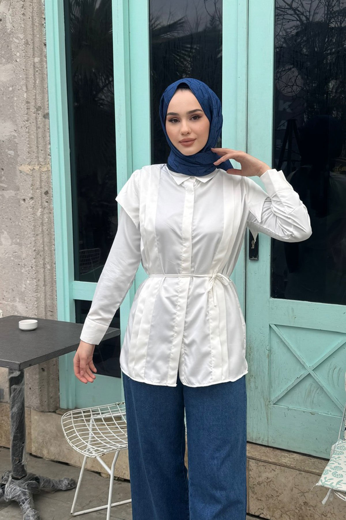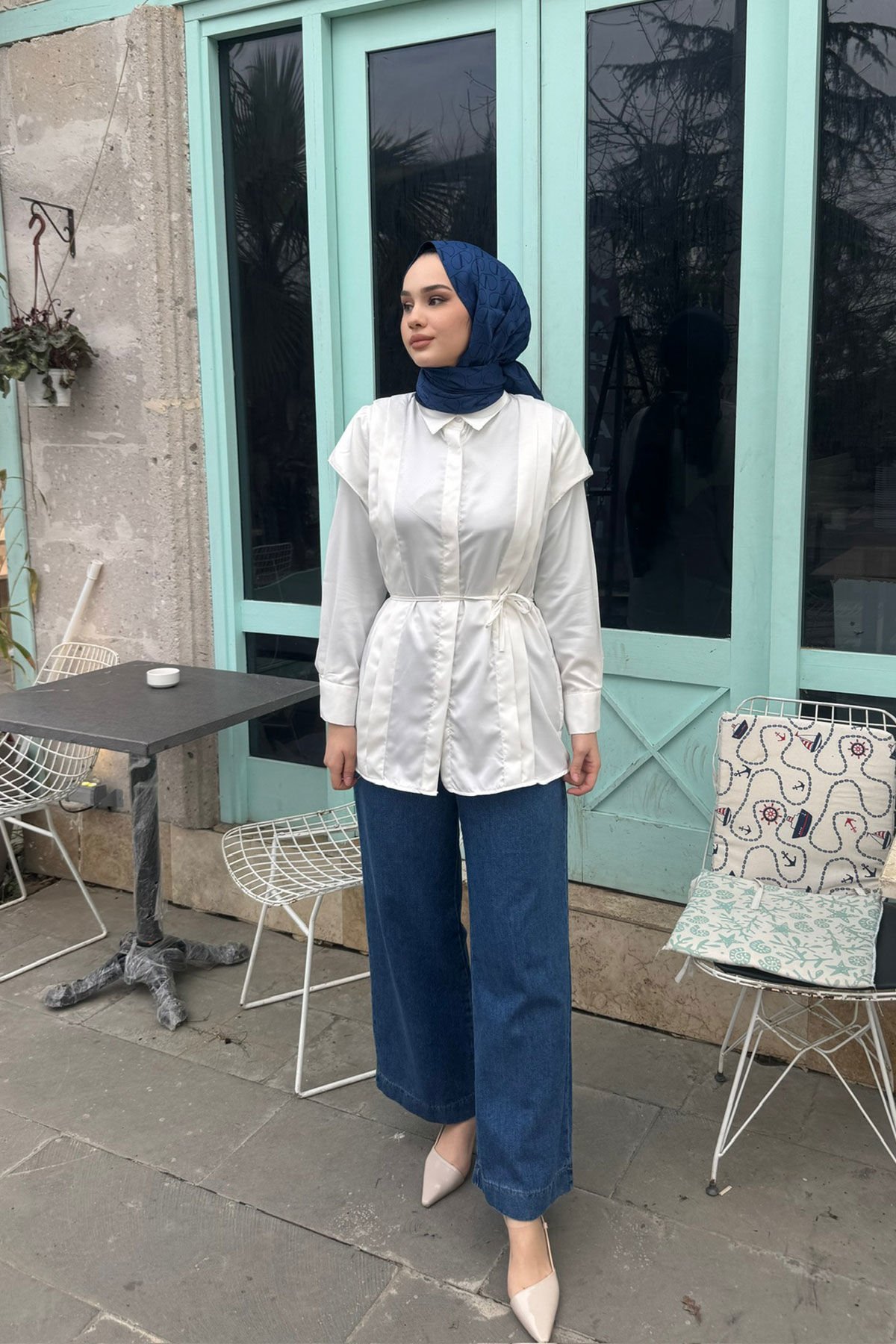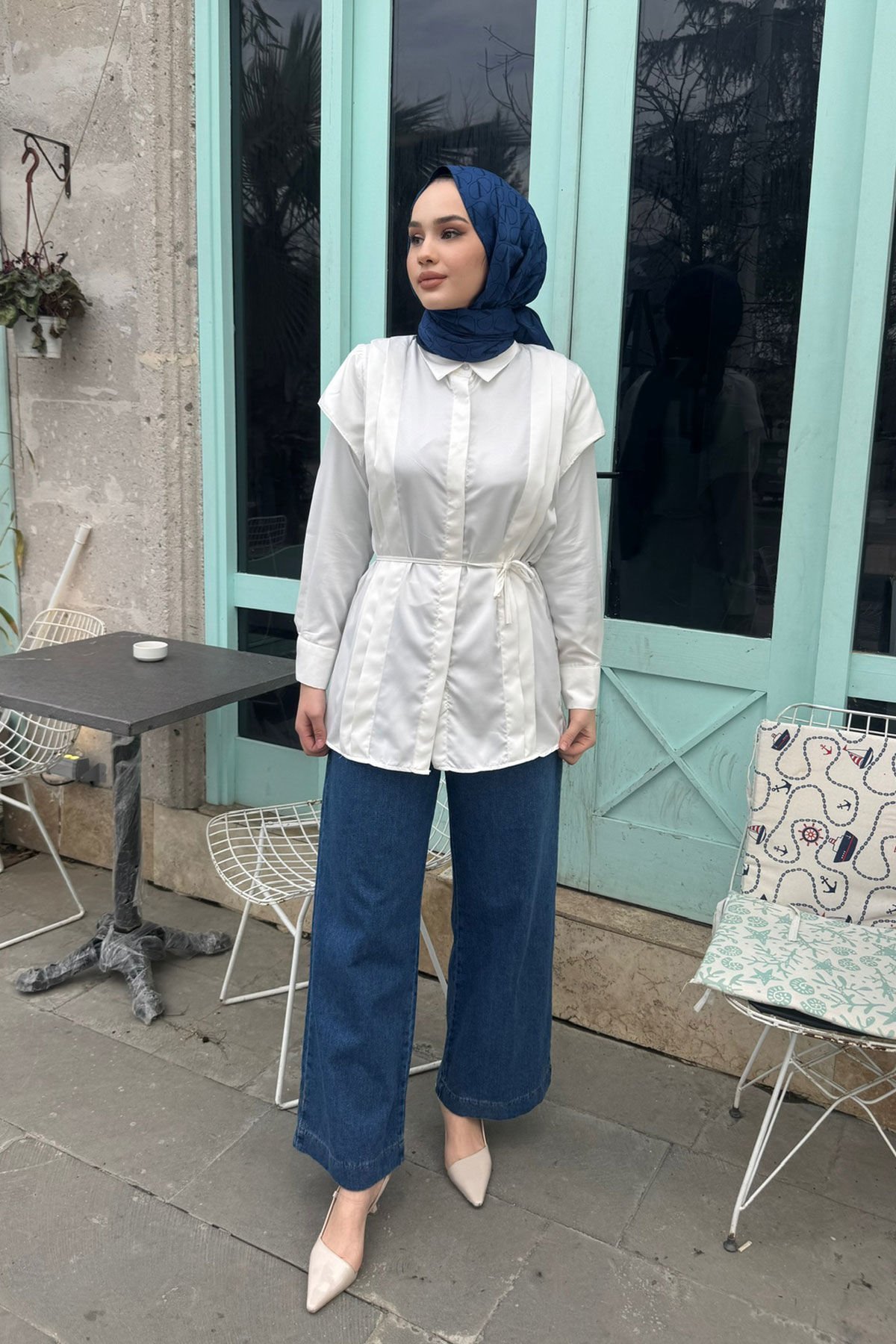 Omuz Detaylı Gömlek 9-15311- BEYAZ