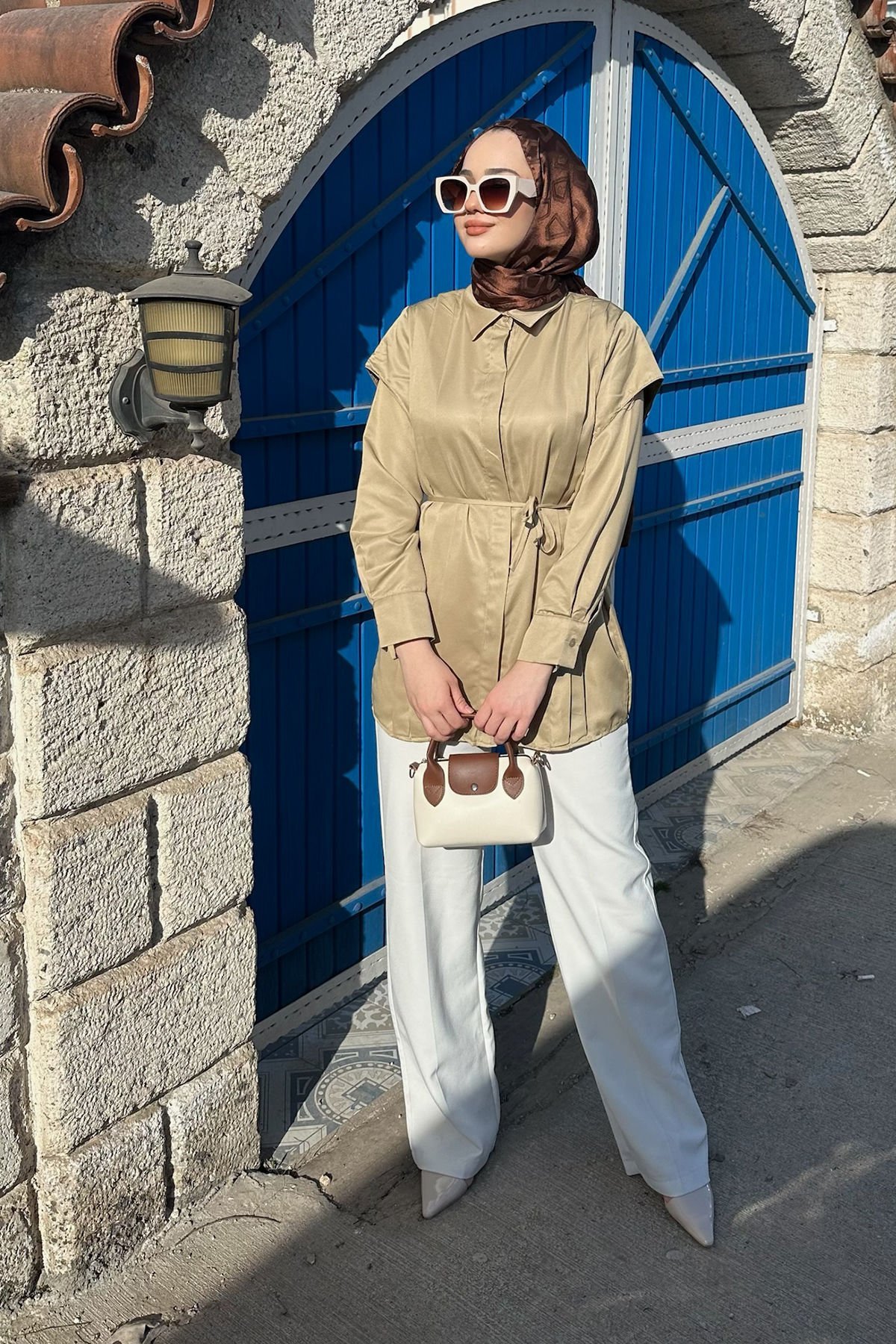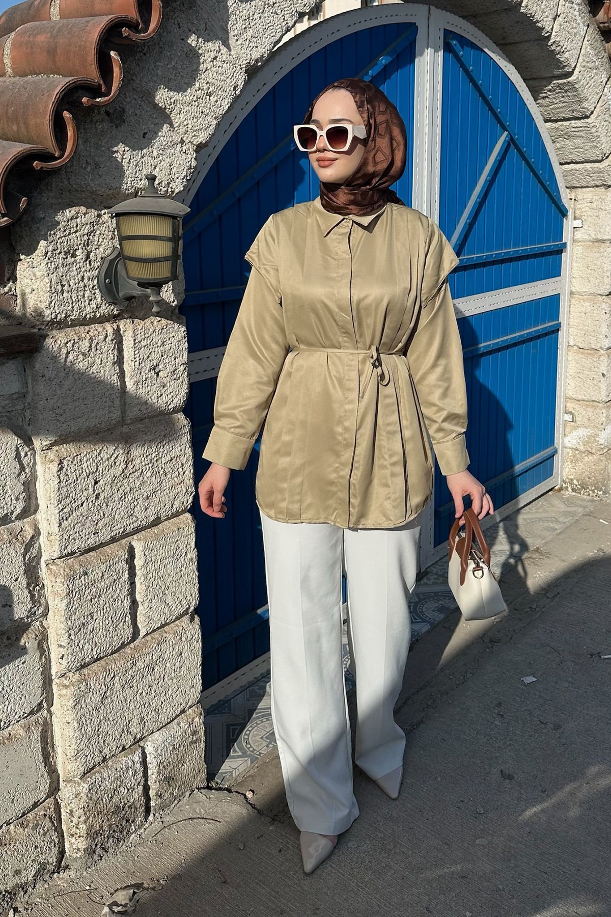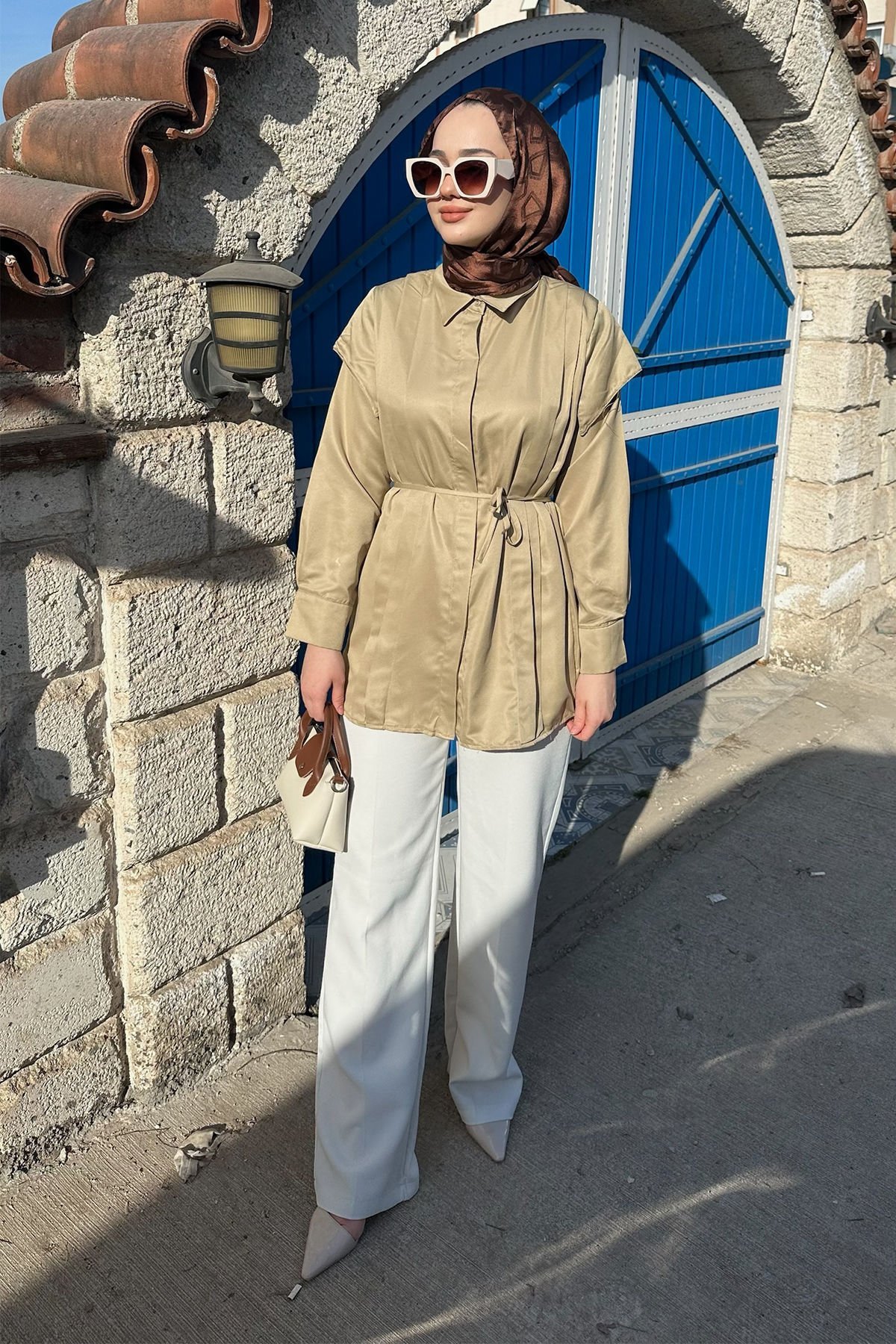 Omuz Detaylı Gömlek 9-15311- OLİVE