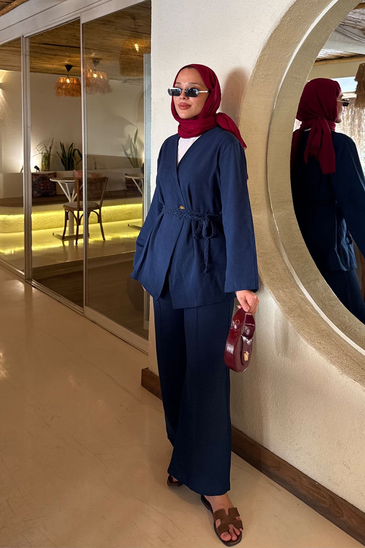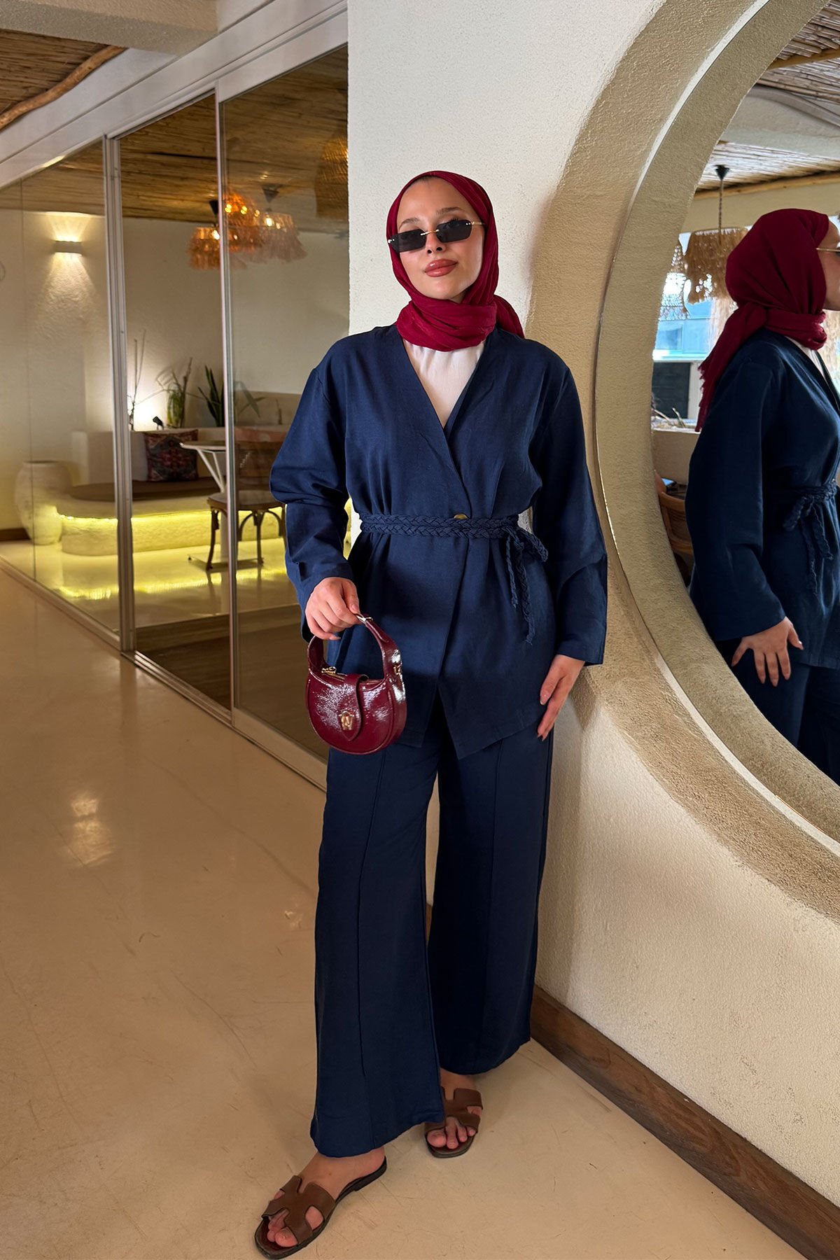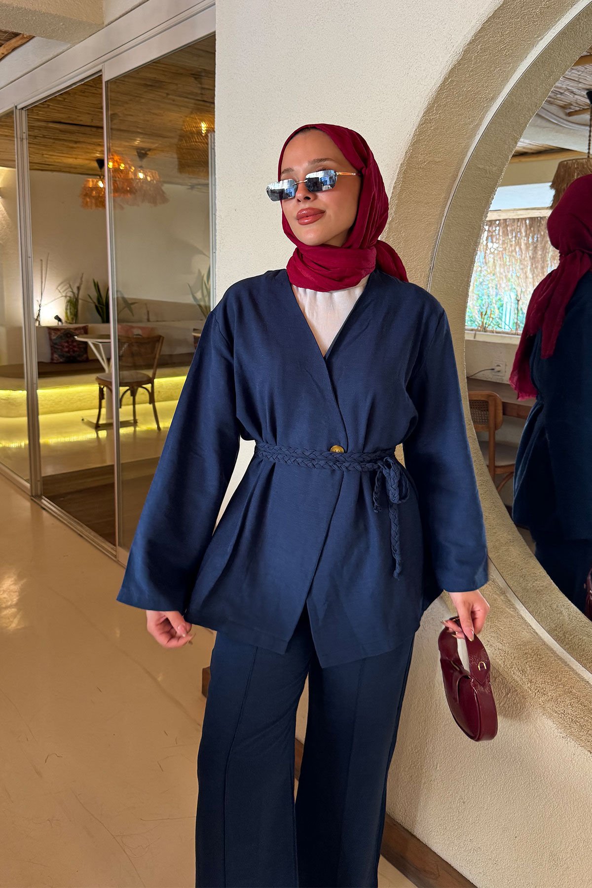 ÖRGÜ KEMERLİ TAKIM 9-51870 - LACİVERT
