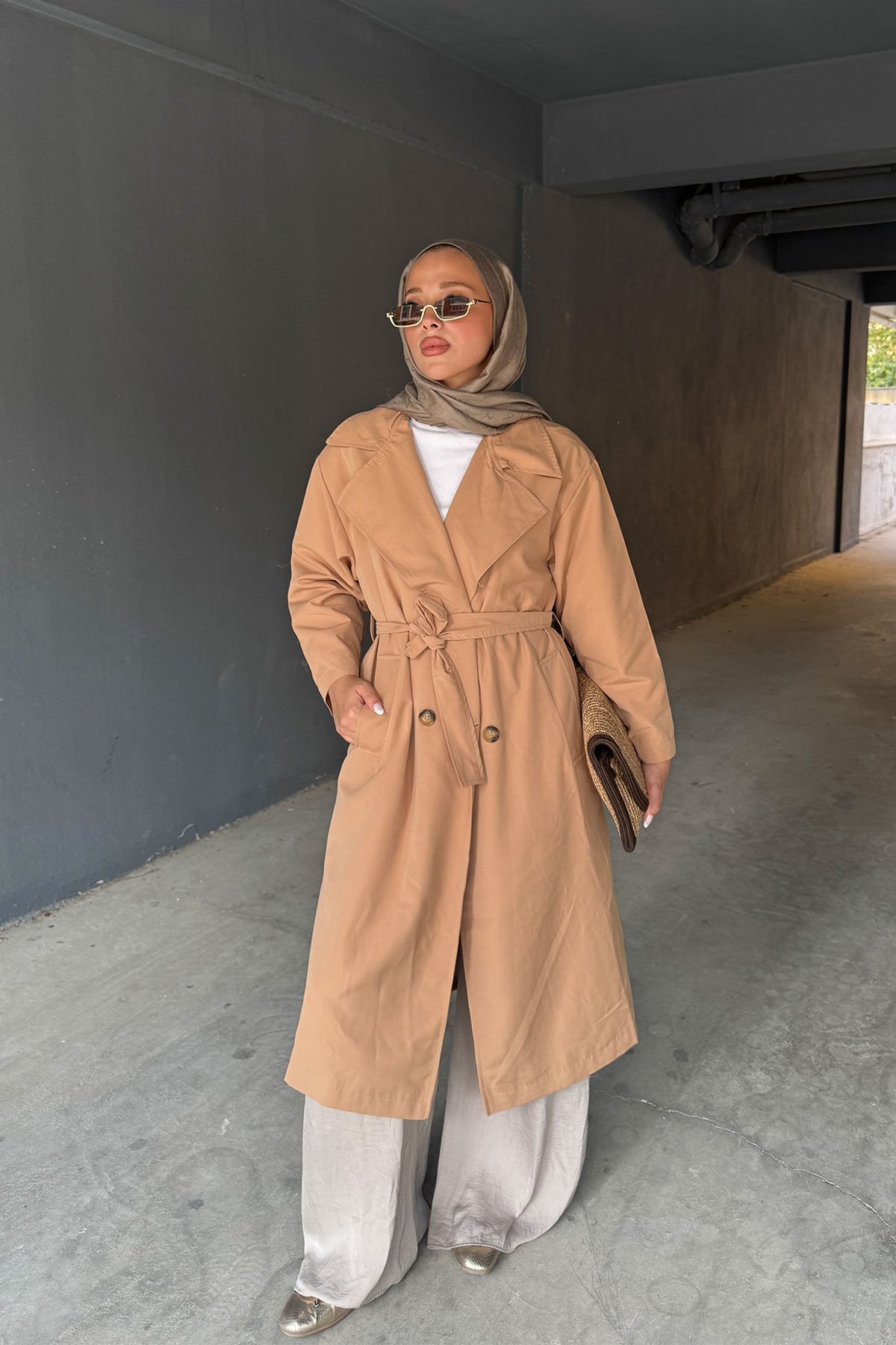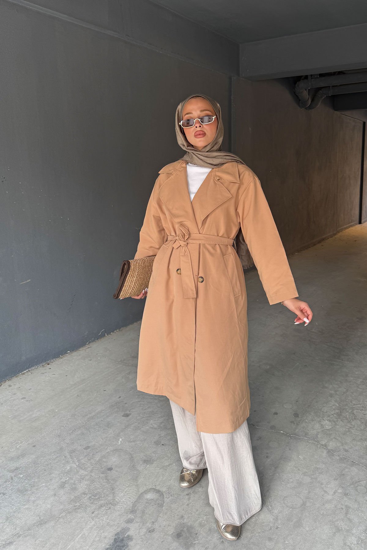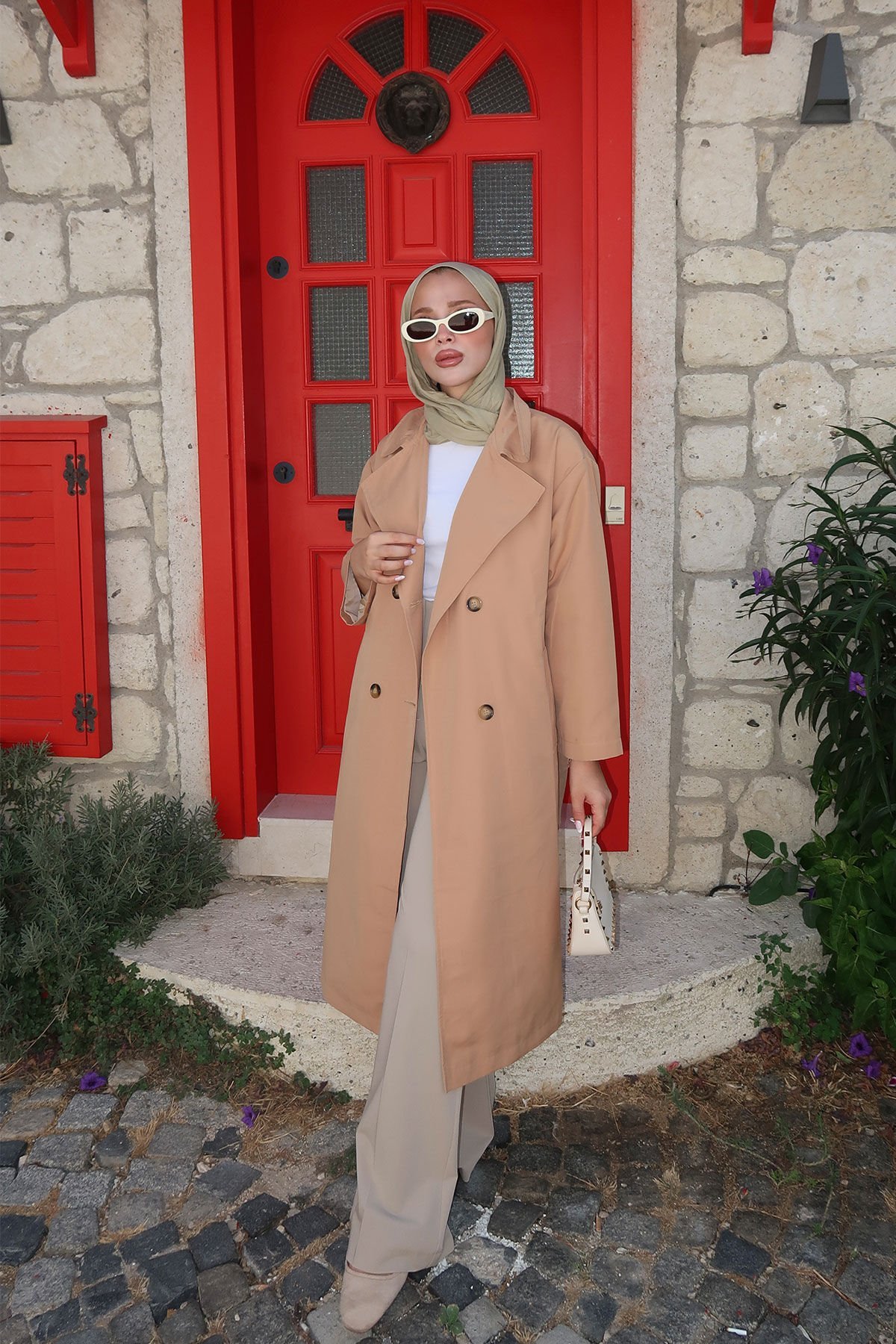 OVERSİZE ASTARLI TRENÇKOT 4-6404 - CAMEL
