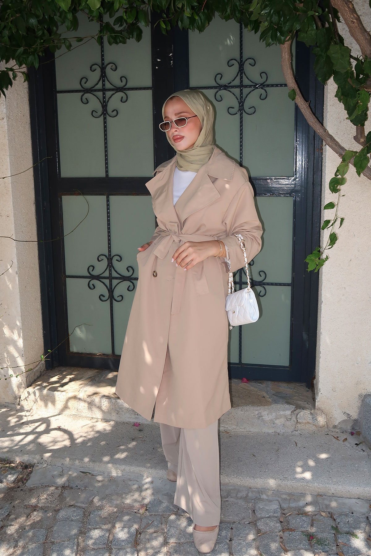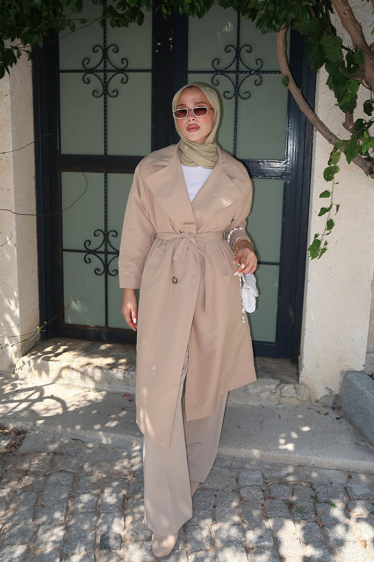 OVERSİZE ASTARLI TRENÇKOT 4-6404 - KUM BEJİ
