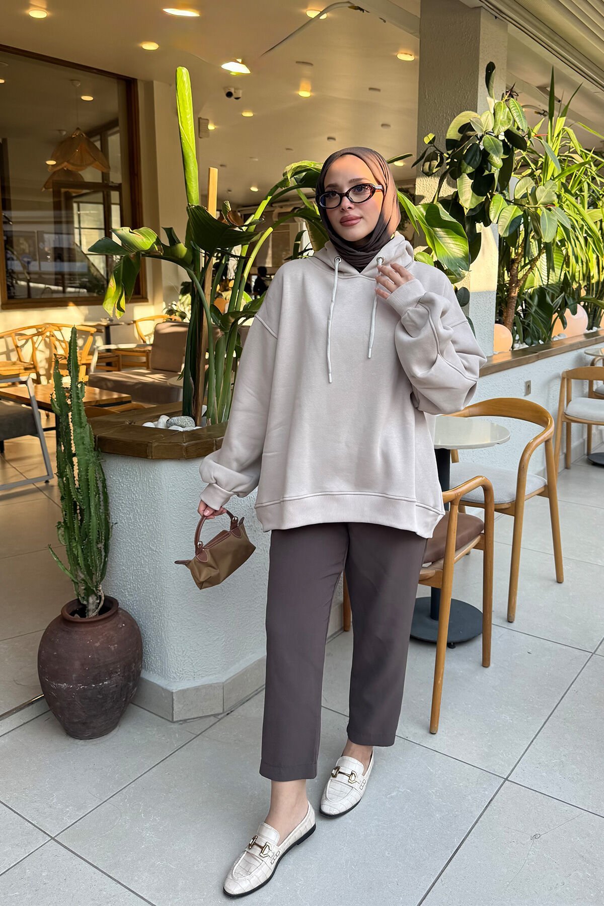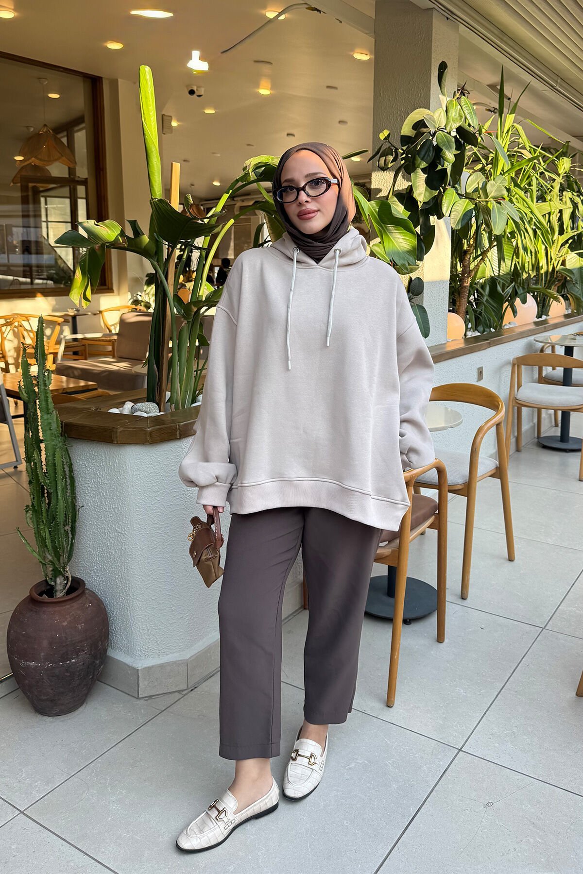 Oversize Cepli Sweathırt 4-6822 - BEJ