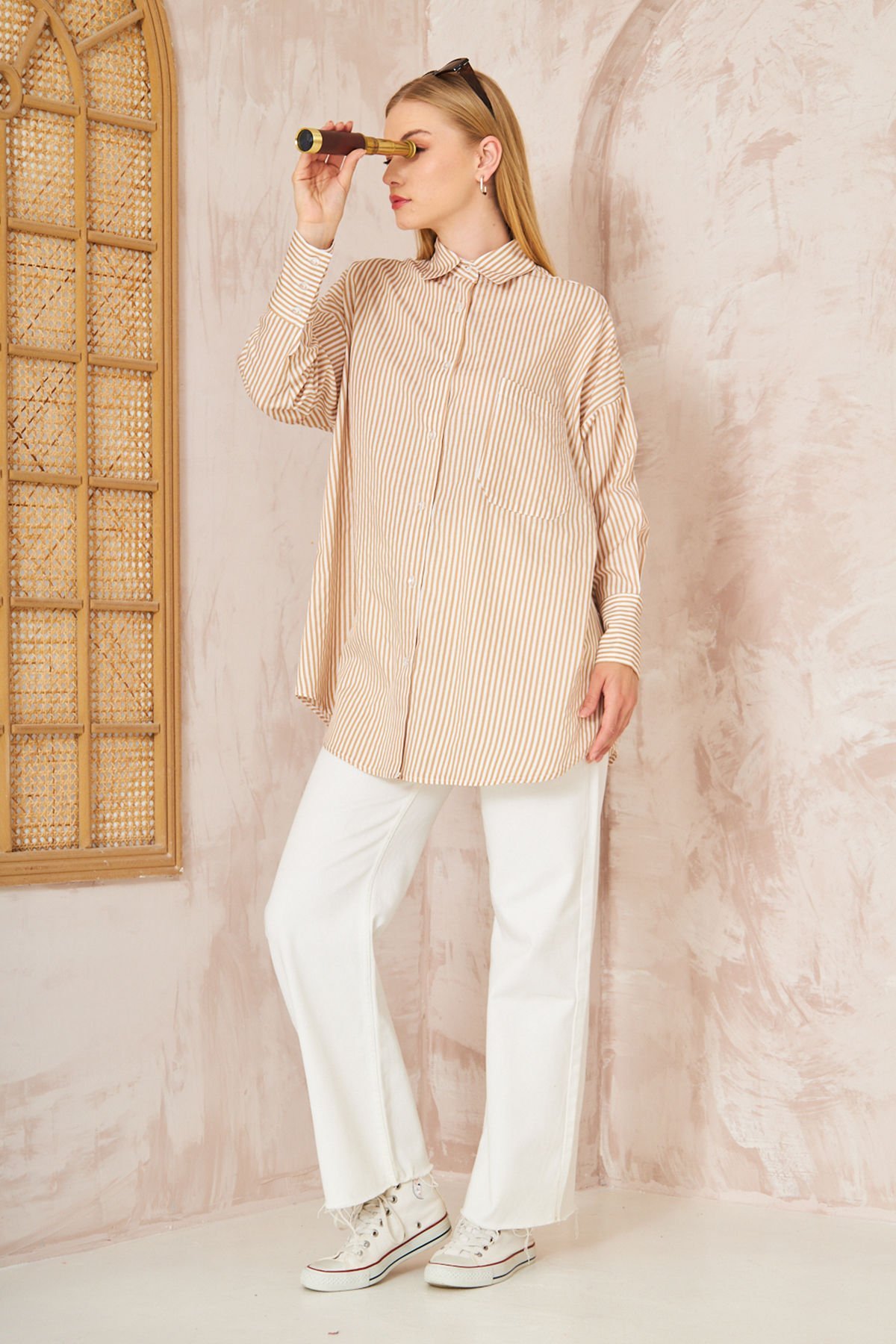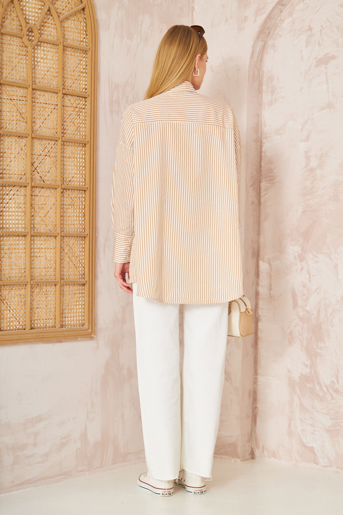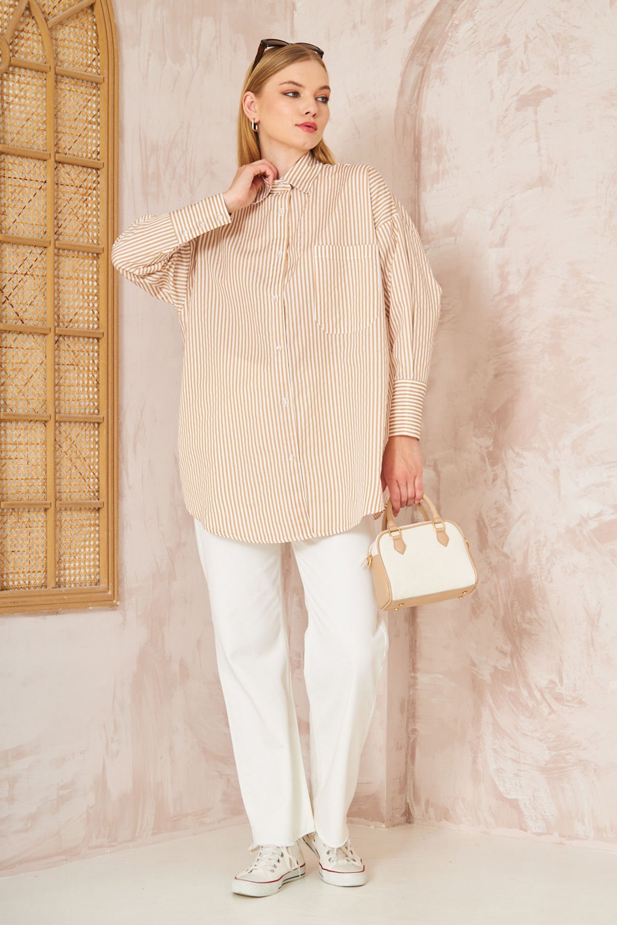 Oversıze Çizgili Gömlek 4-6676 - VİZON