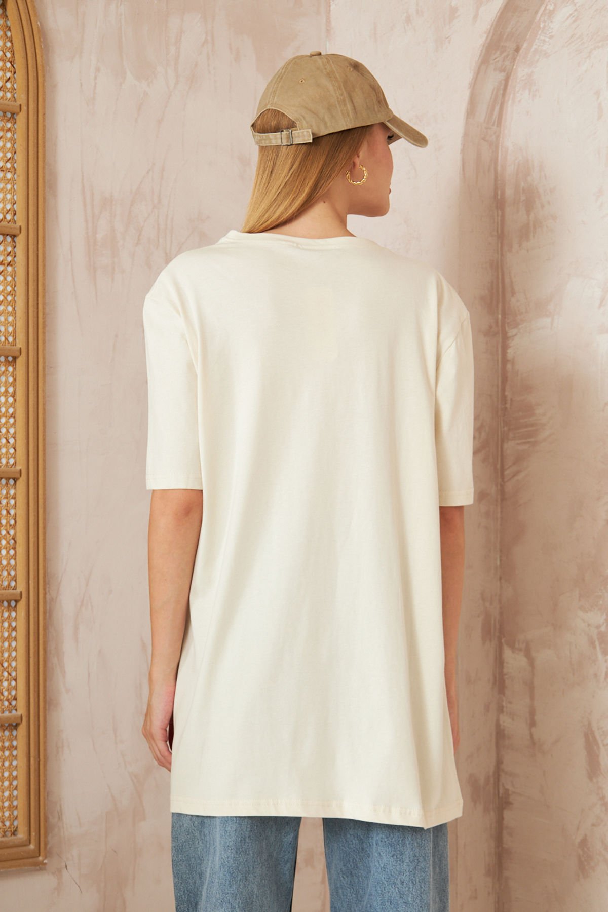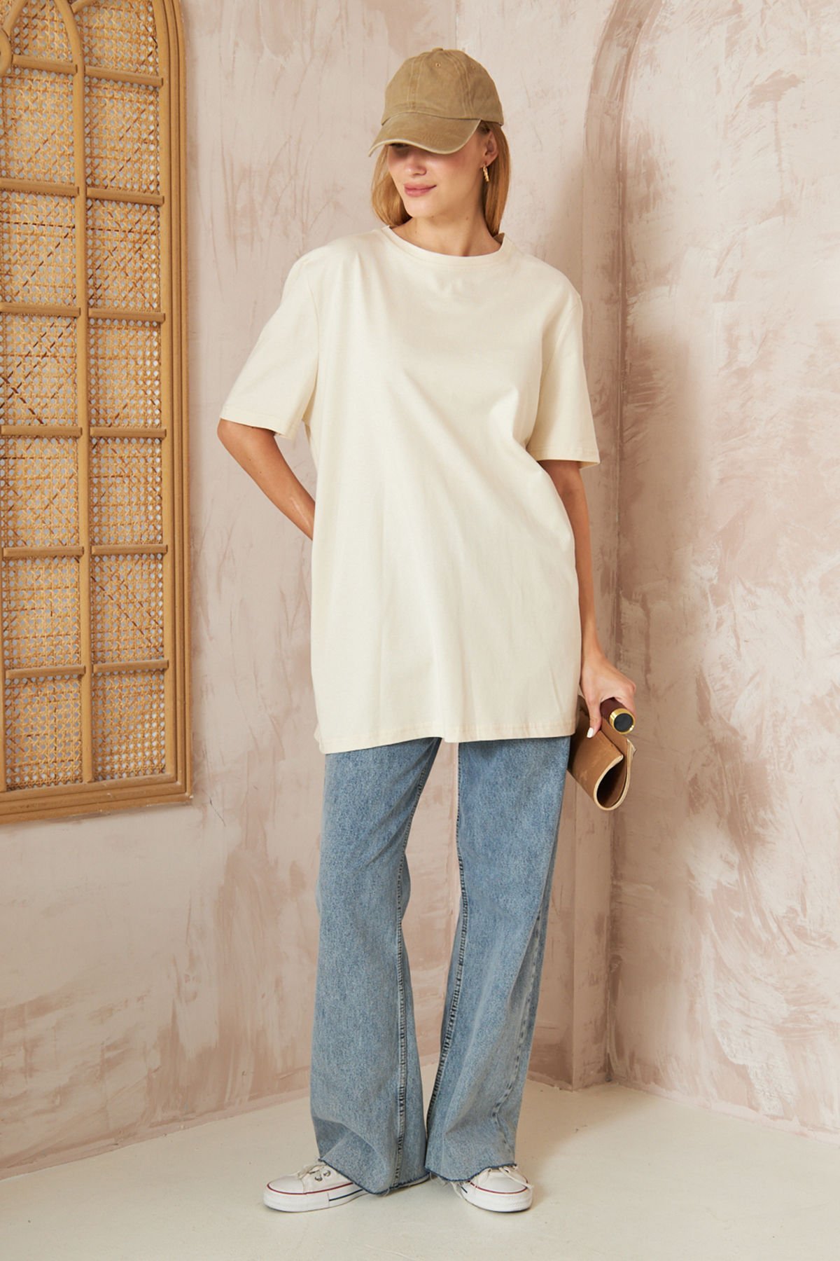 Oversize Kısa Kol T-shirt 4-6634 - EKRU