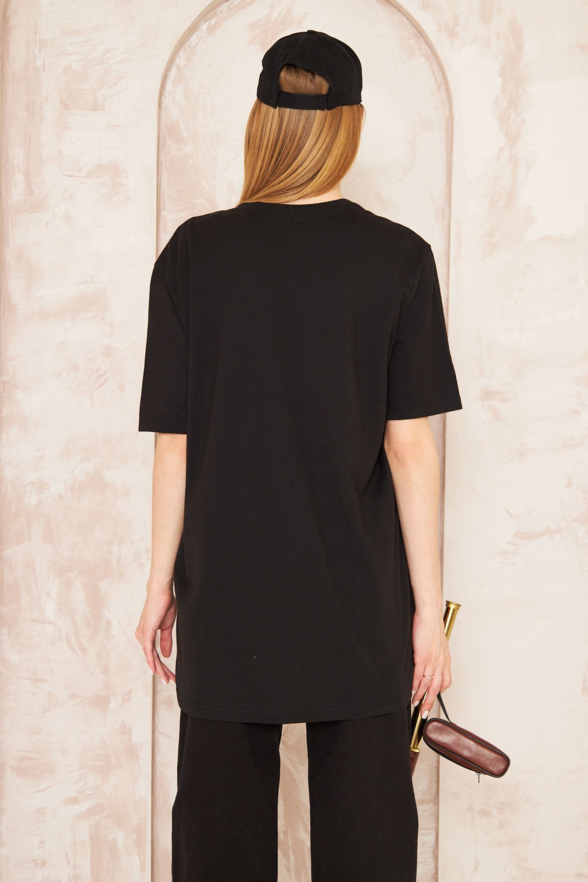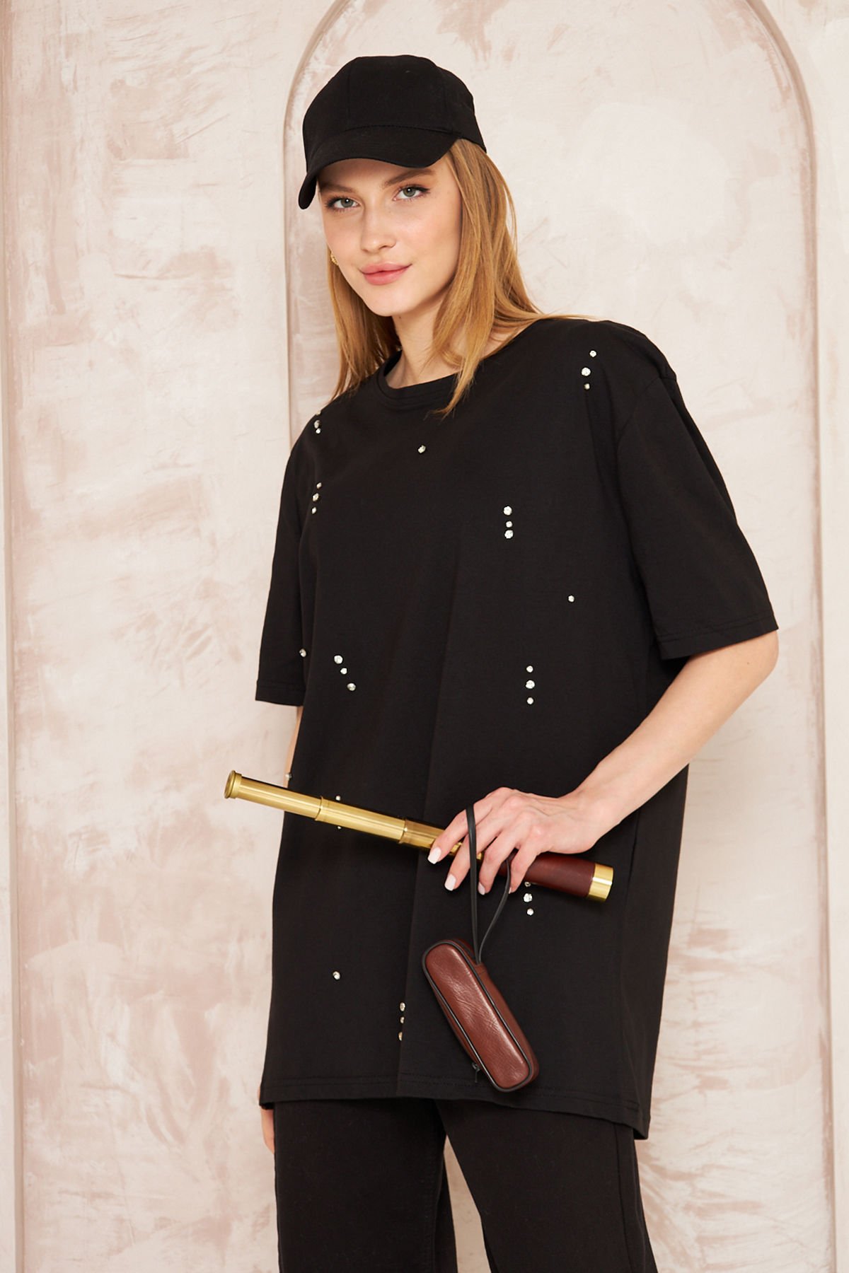 Oversize Taşlı T-shırt 4-6638 - SİYAH
