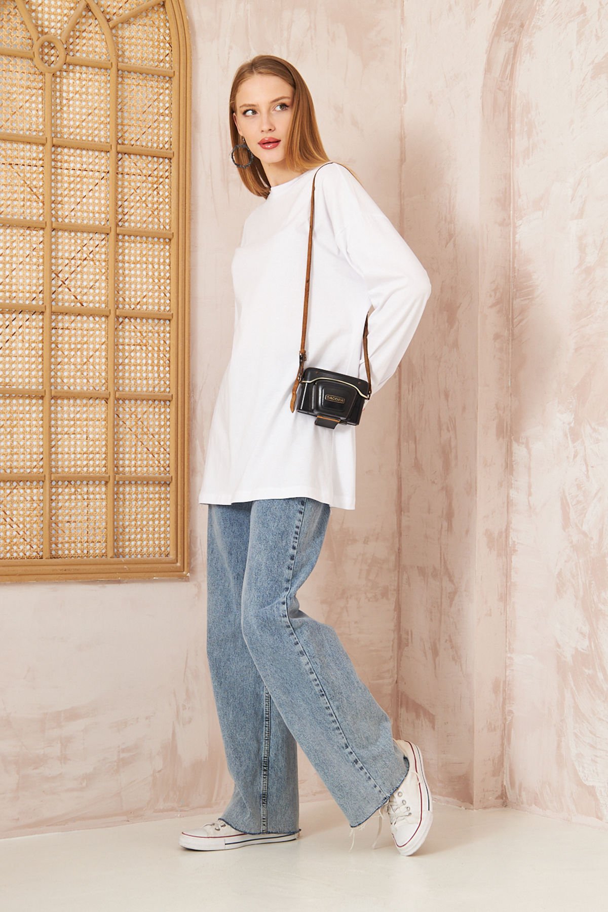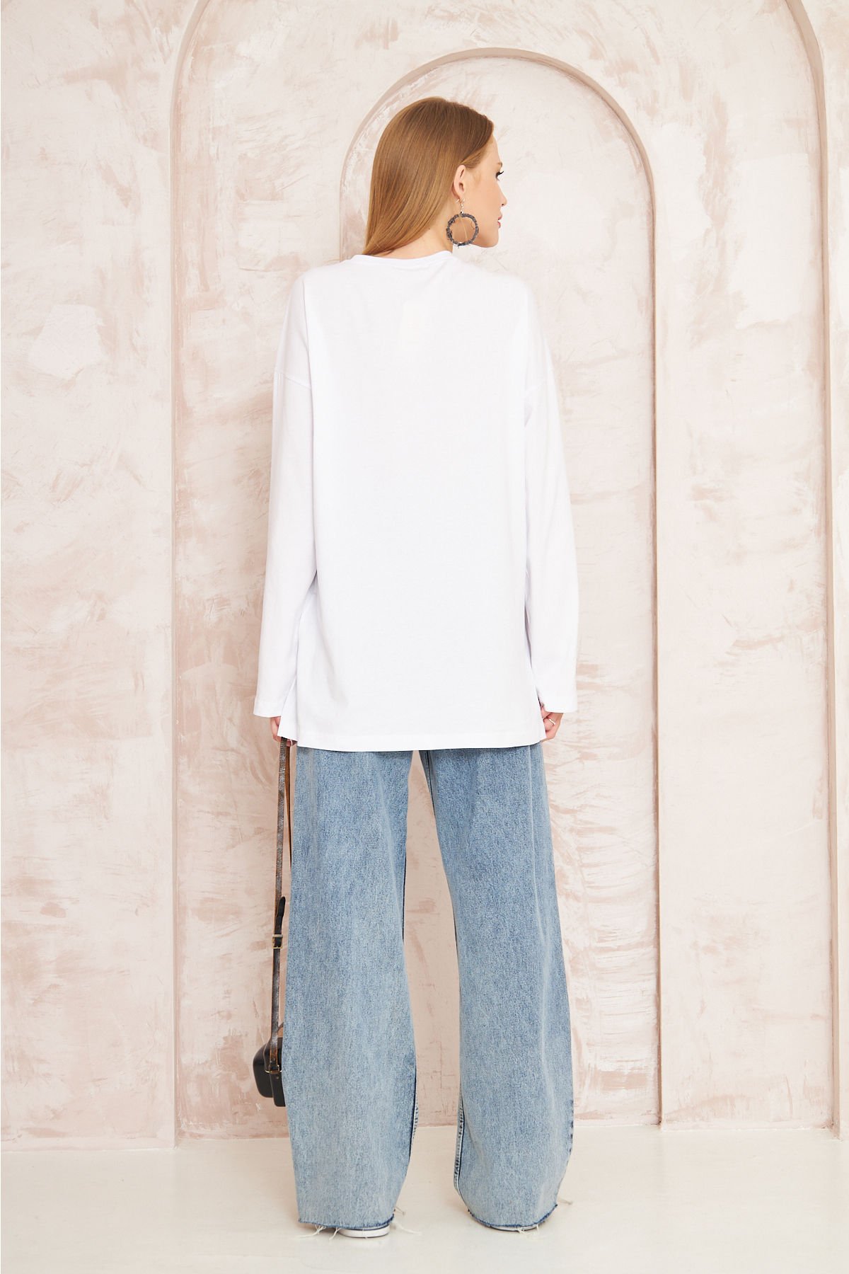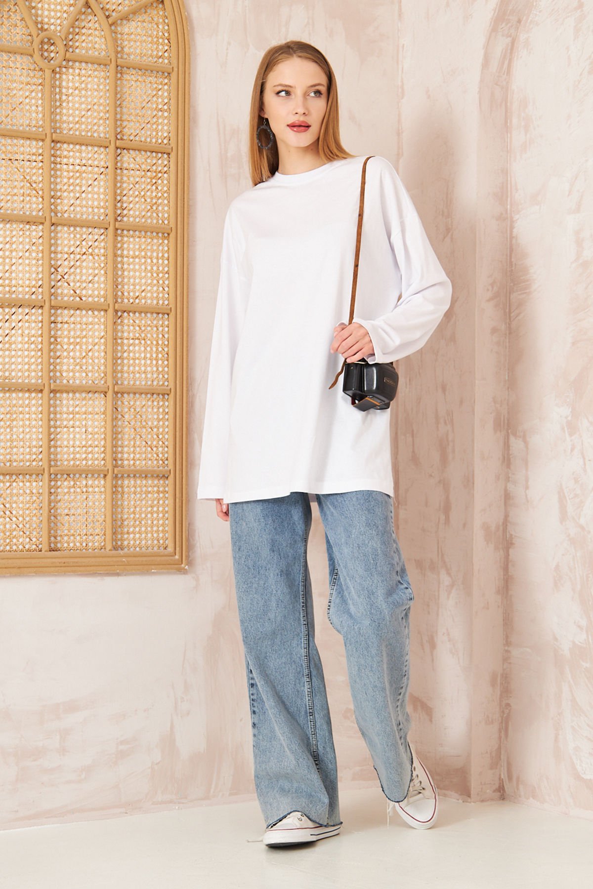 Oversize Uzun Kol T-shırt 4-6632 - BEYAZ