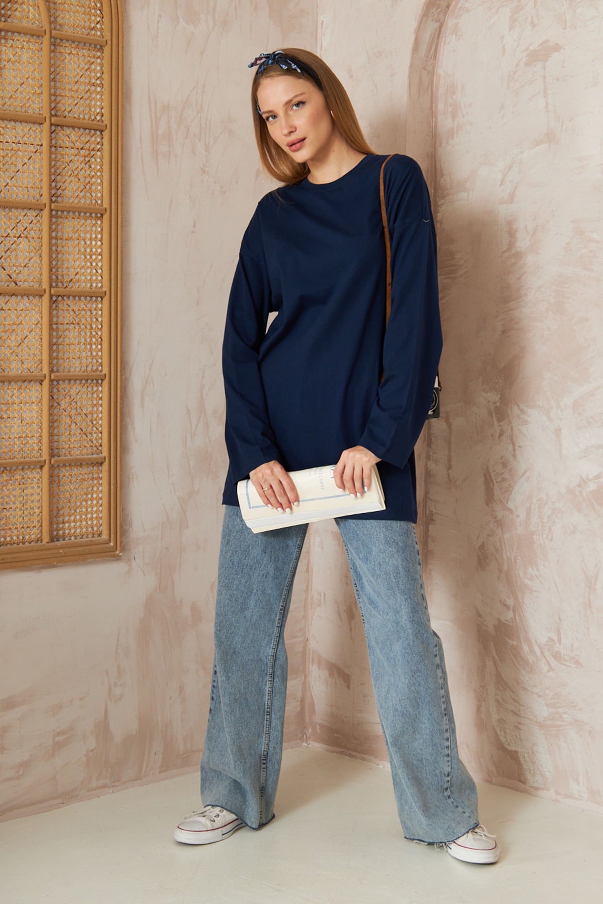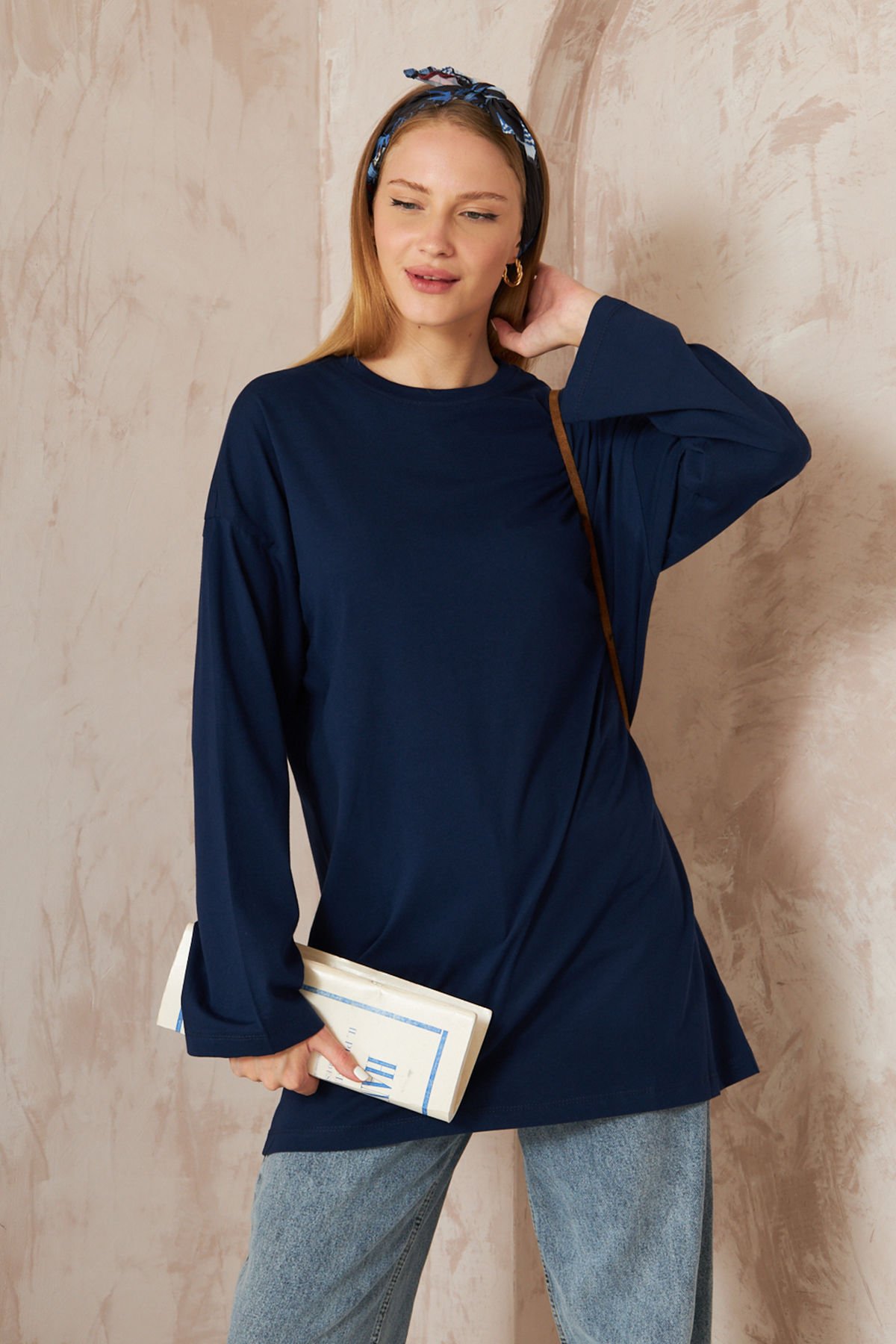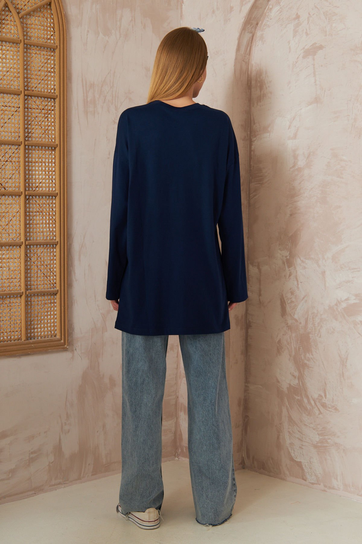 Oversize Uzun Kol T-shırt 4-6632 - LACİVERT