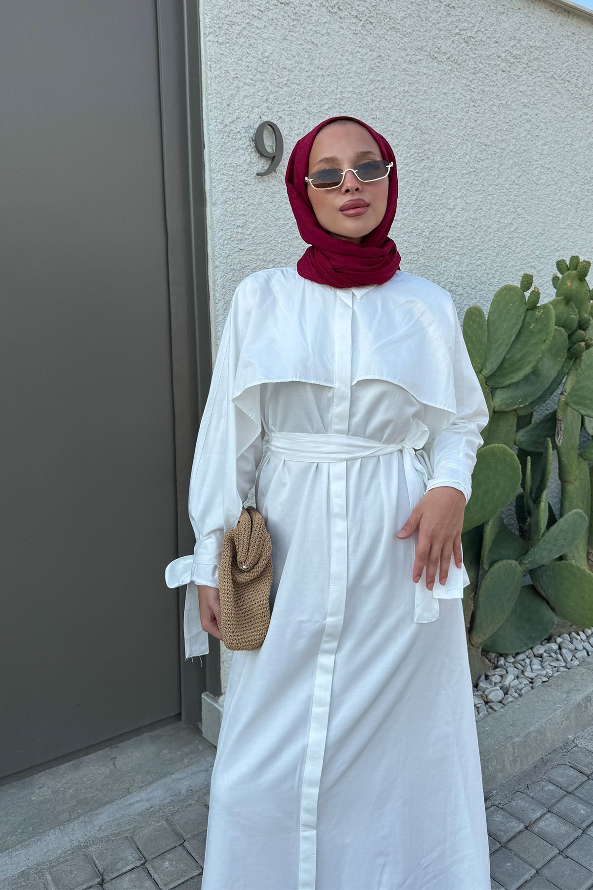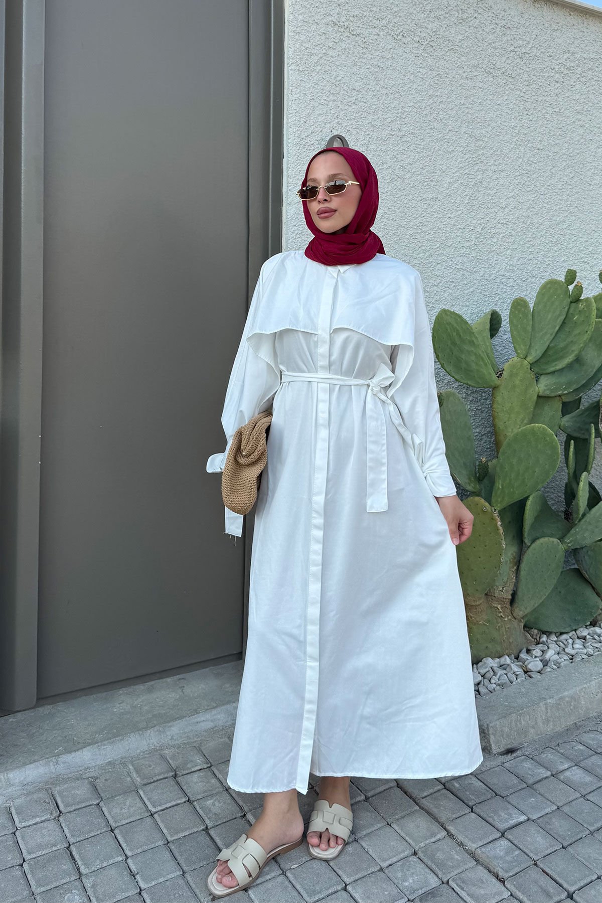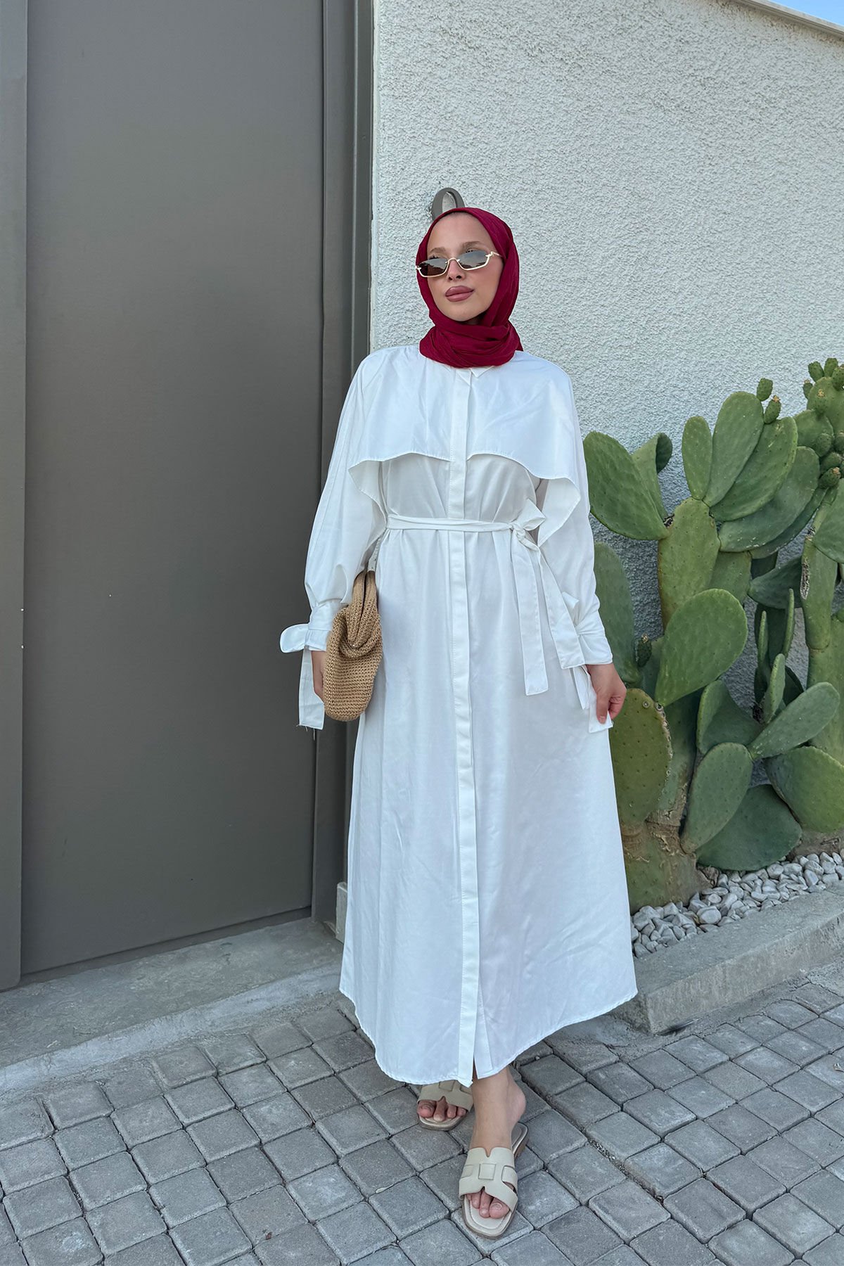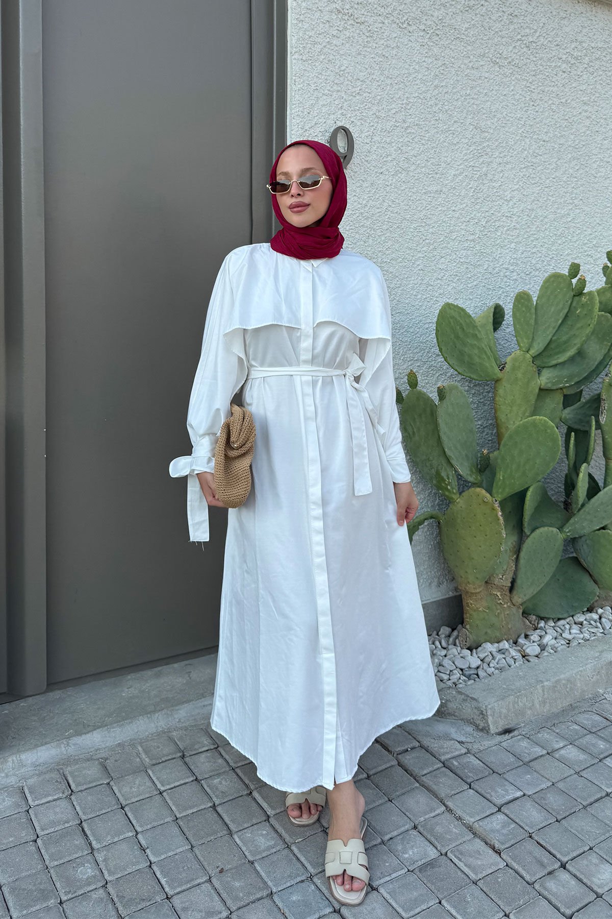 PELERİN DETAYLI ELBİSE 31-3363 - BEYAZ