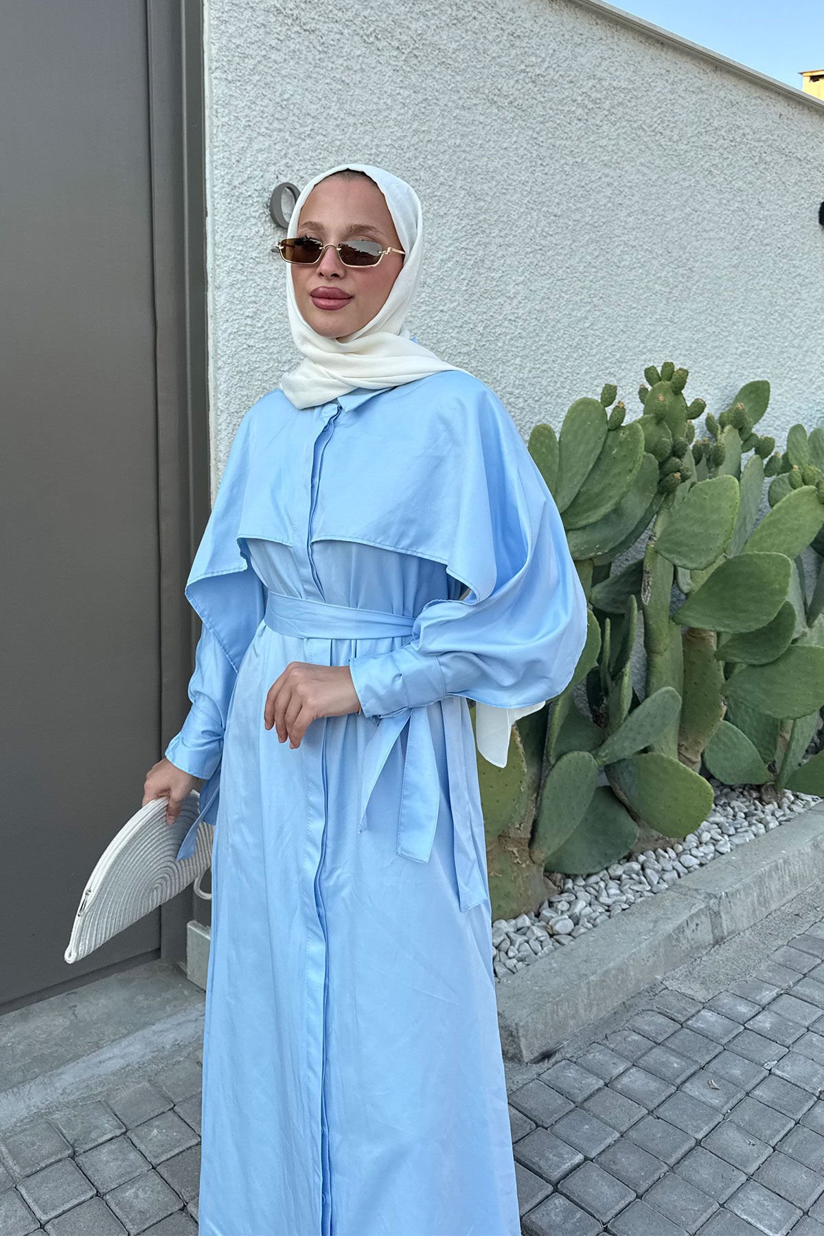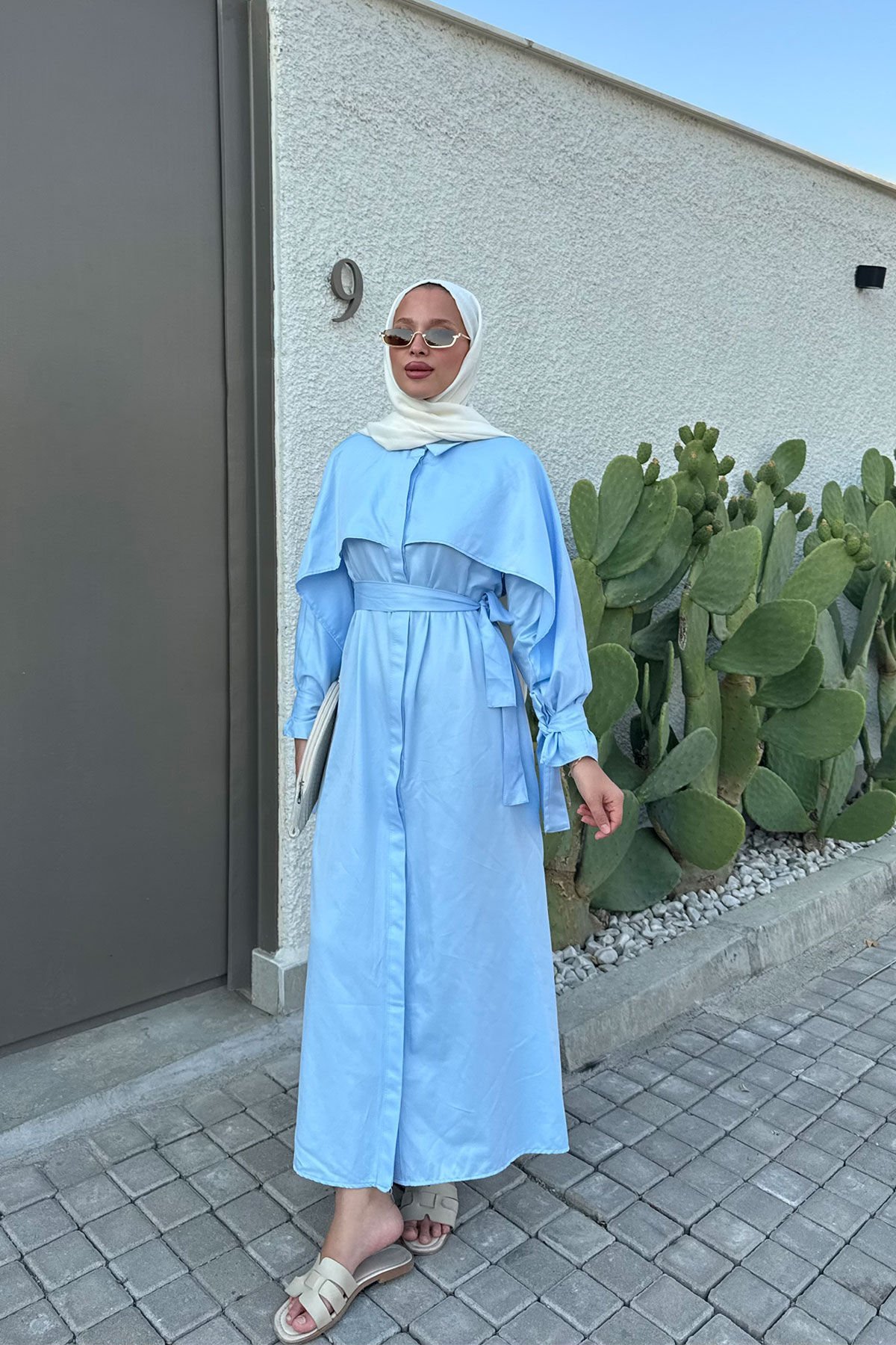 PELERİN DETAYLI ELBİSE 31-3363 - MAVİ