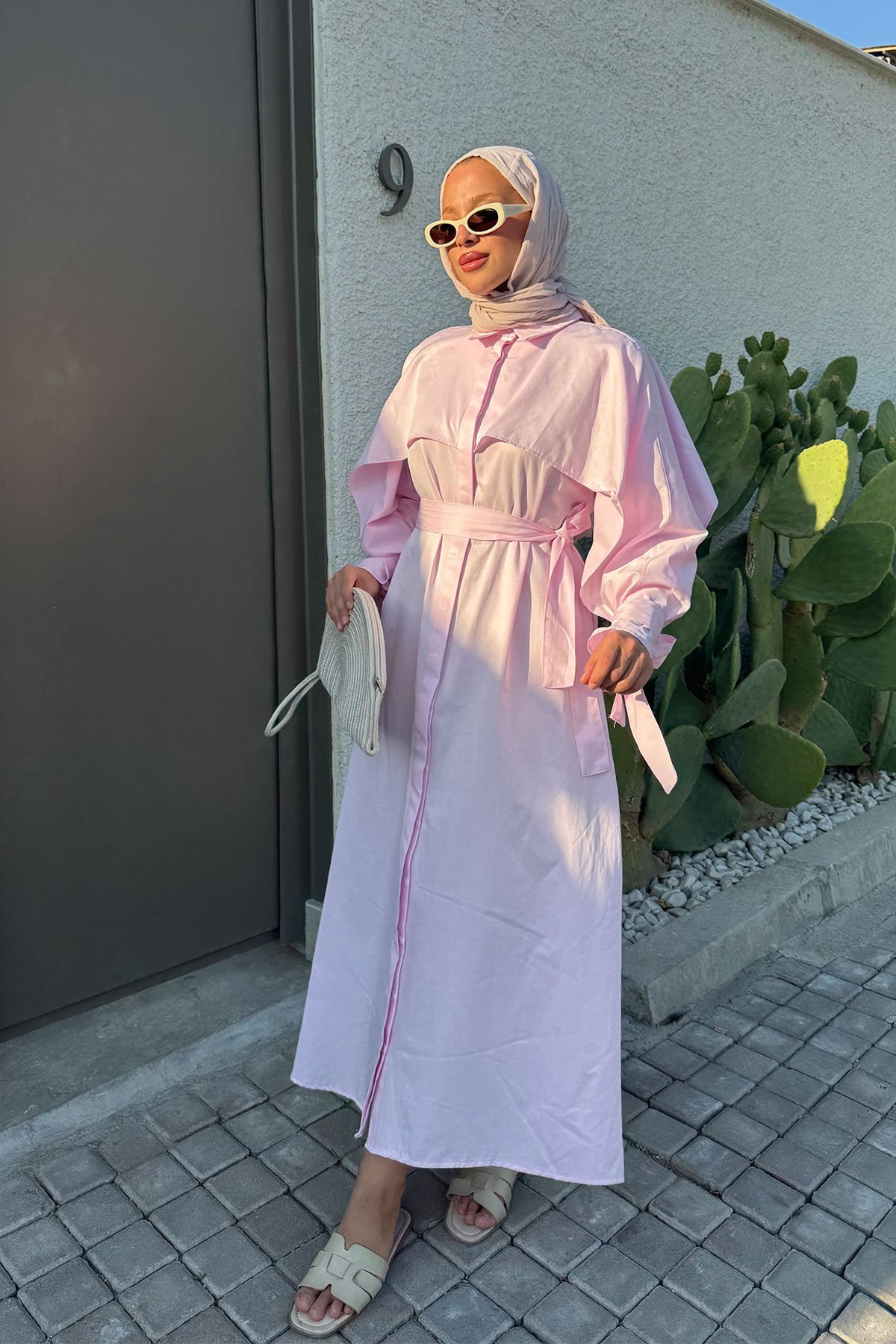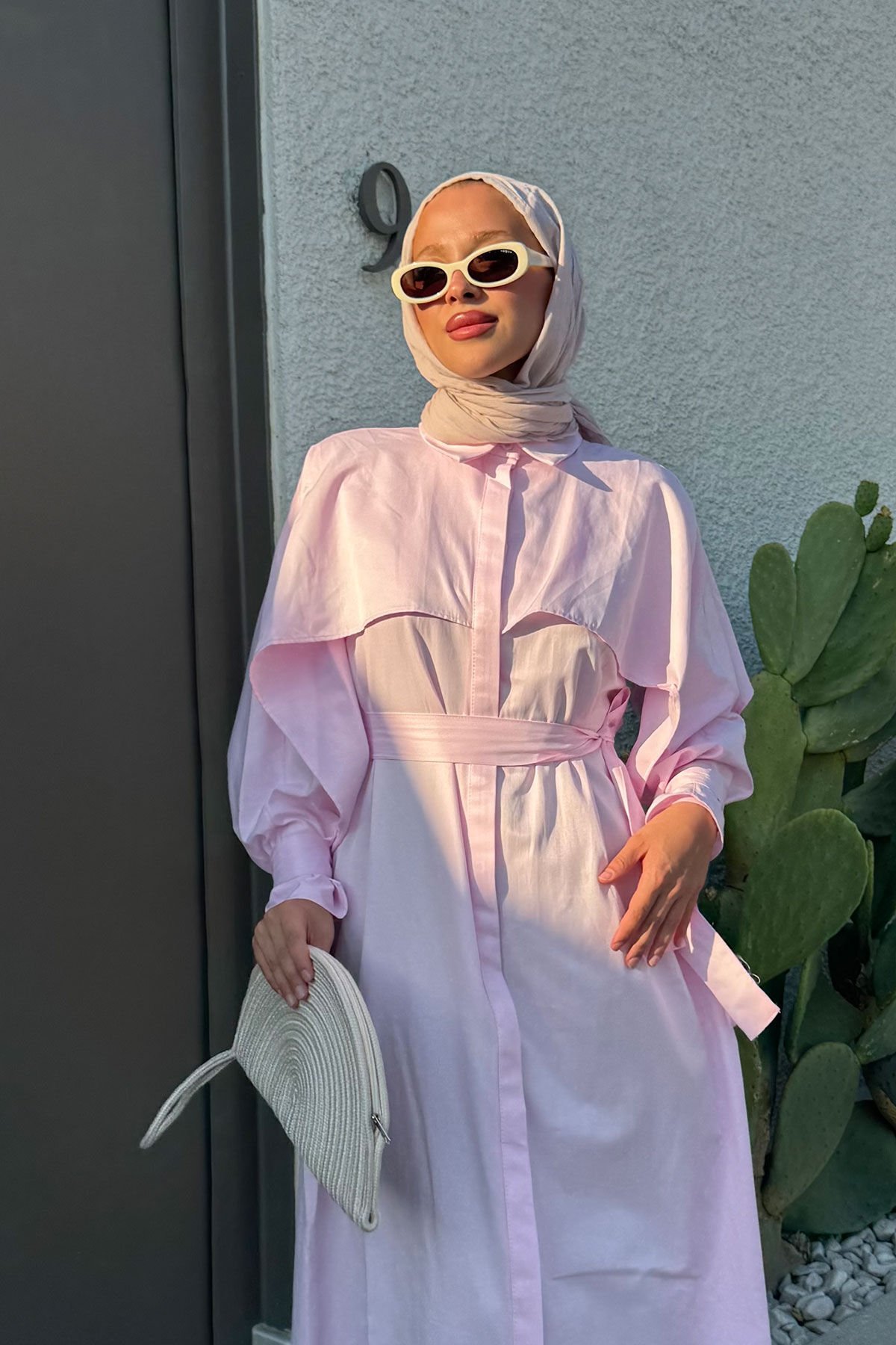 PELERİN DETAYLI ELBİSE 31-3363 - PUDRA