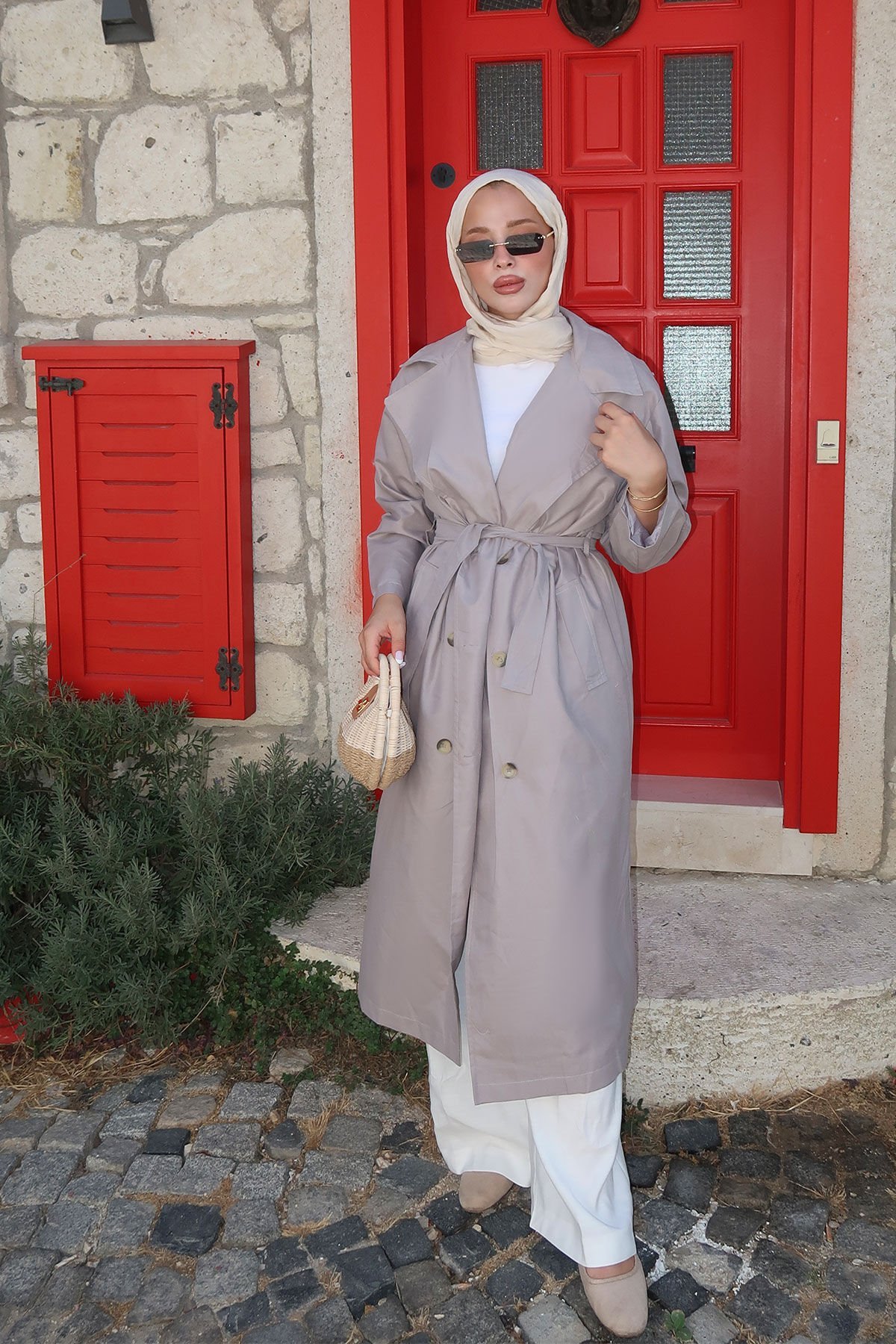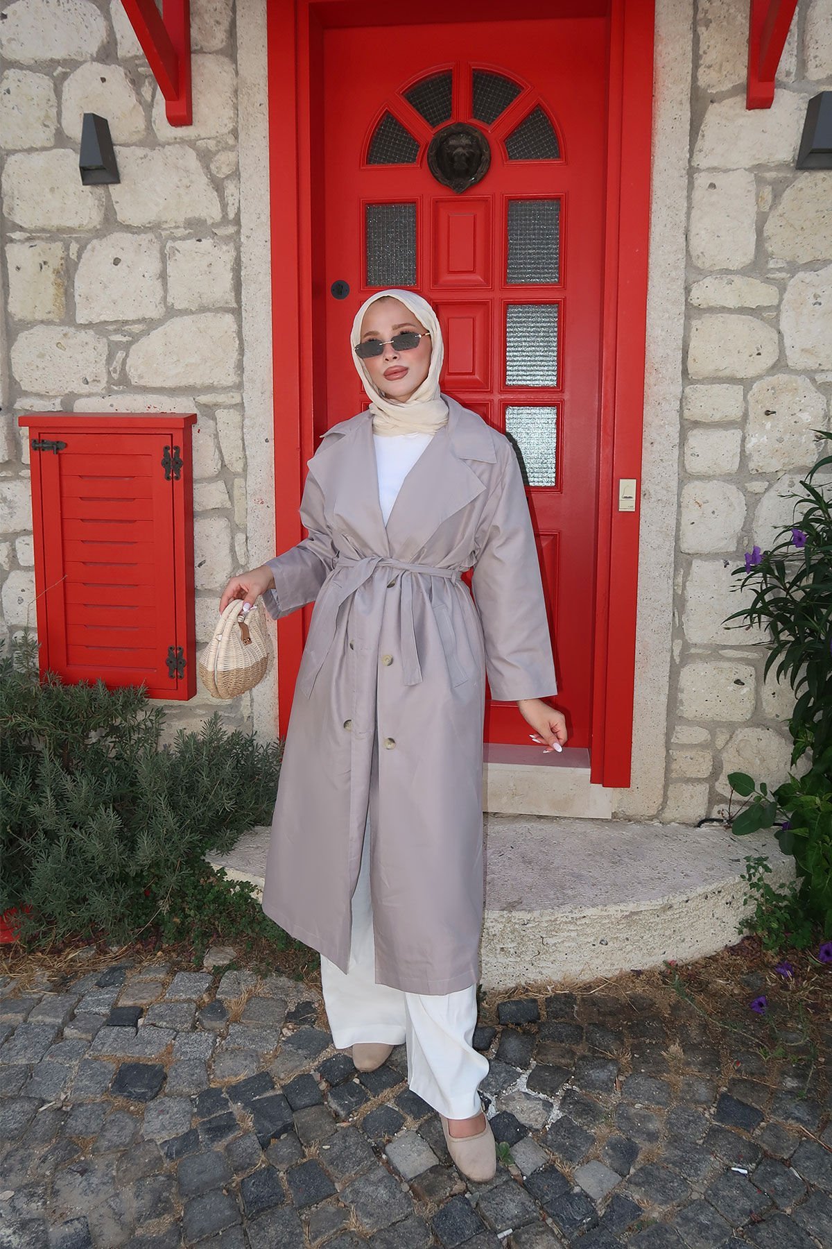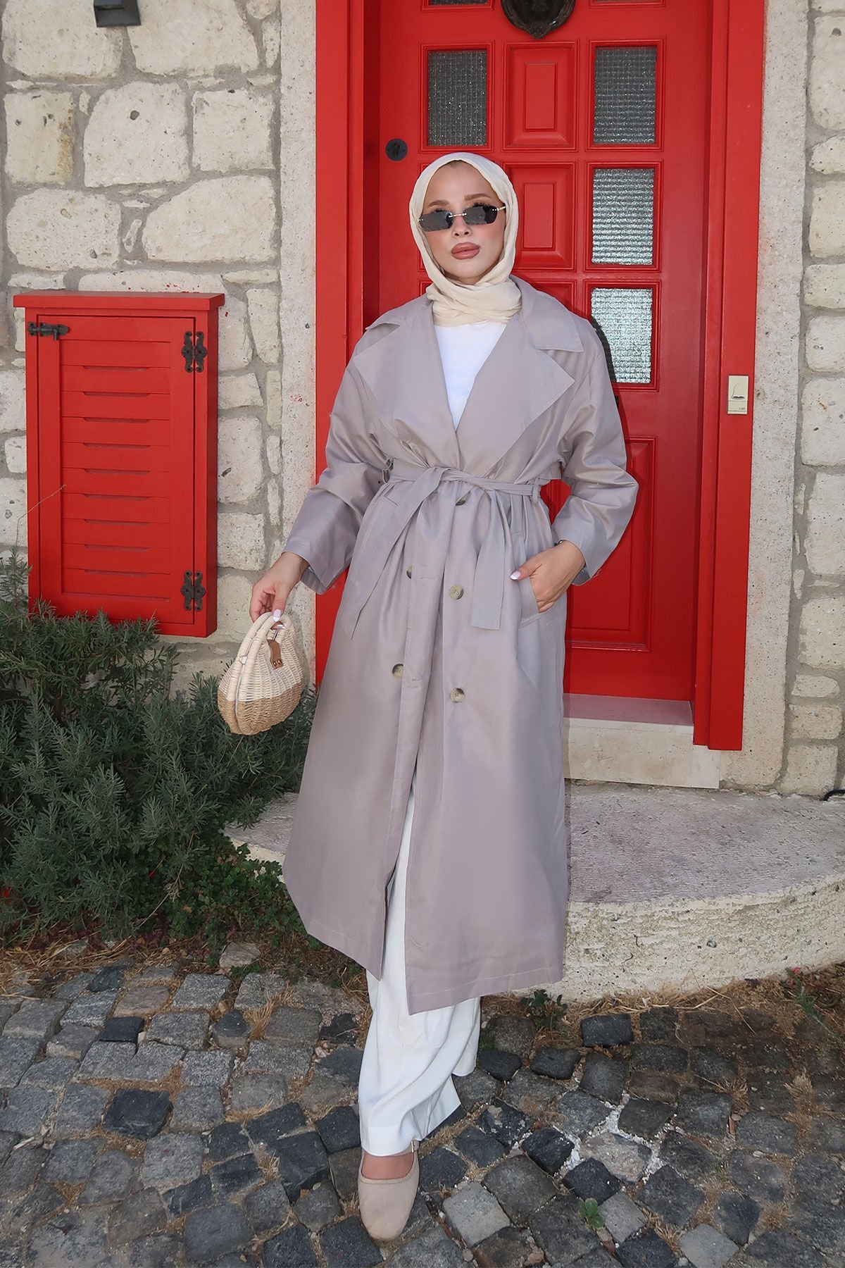 Pelerinli Astarlı Oversize Trençkot 4-6696 - GRI